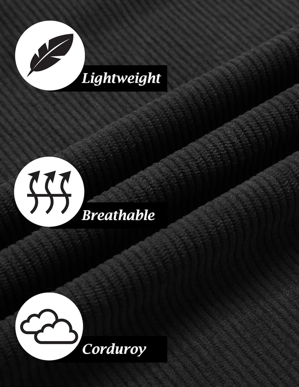 Corduroy Fabric — A perfect blend of comfort and style. This soft and breathable lightweight material will keep you feeling cozy all day long.