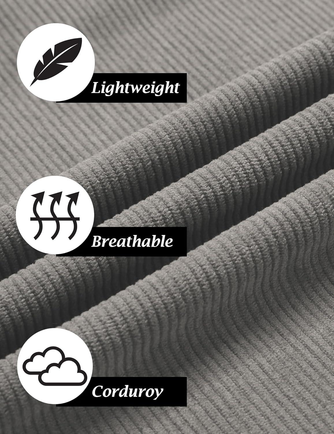 Corduroy Fabric — A perfect blend of comfort and style. This soft and breathable lightweight material will keep you feeling cozy all day long.