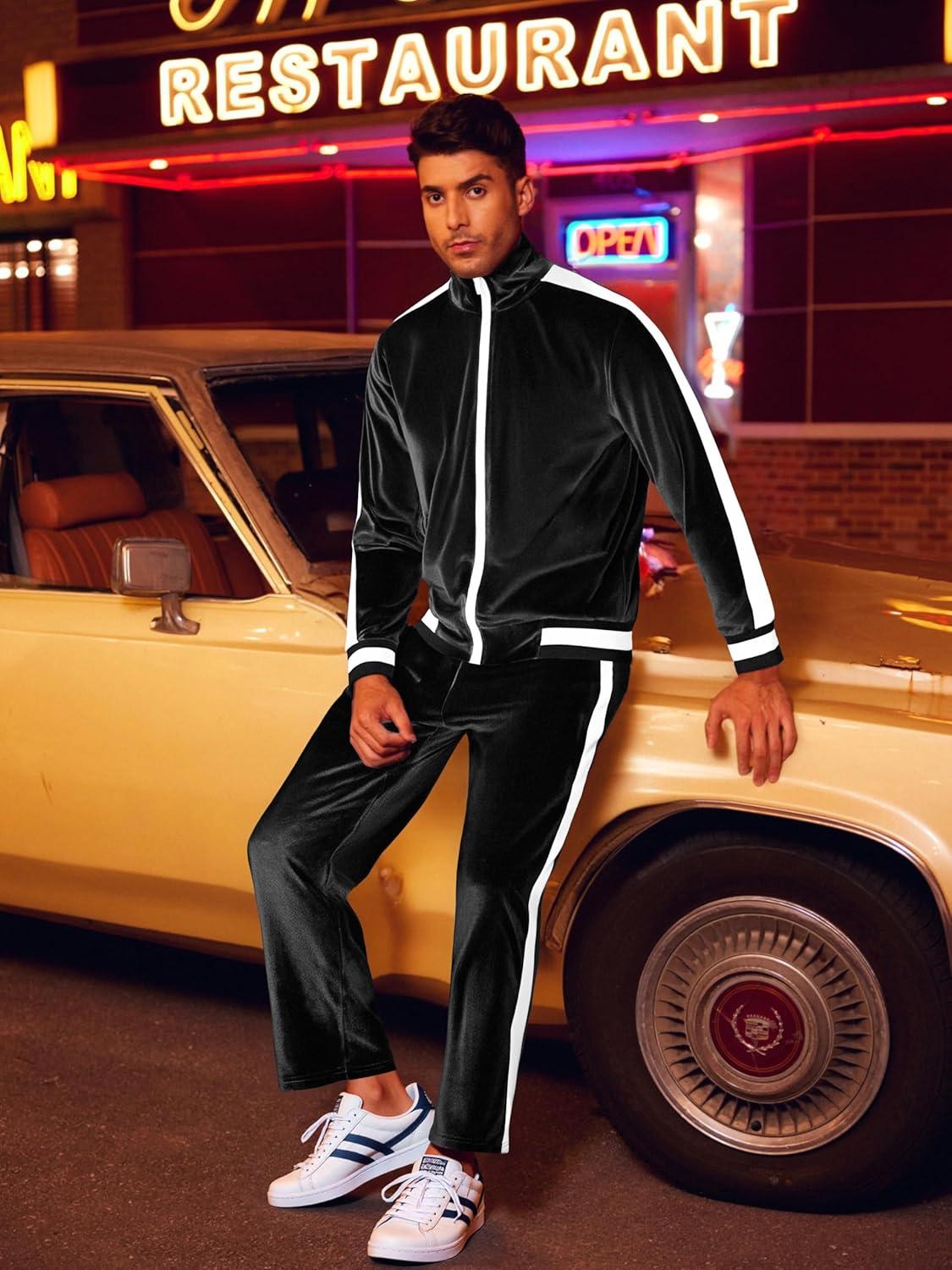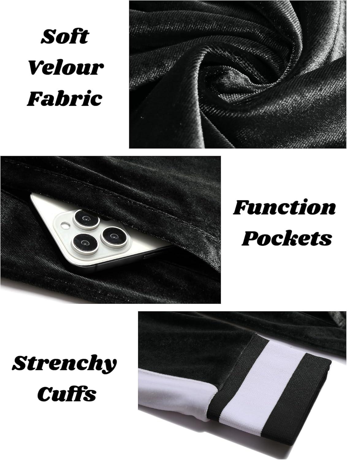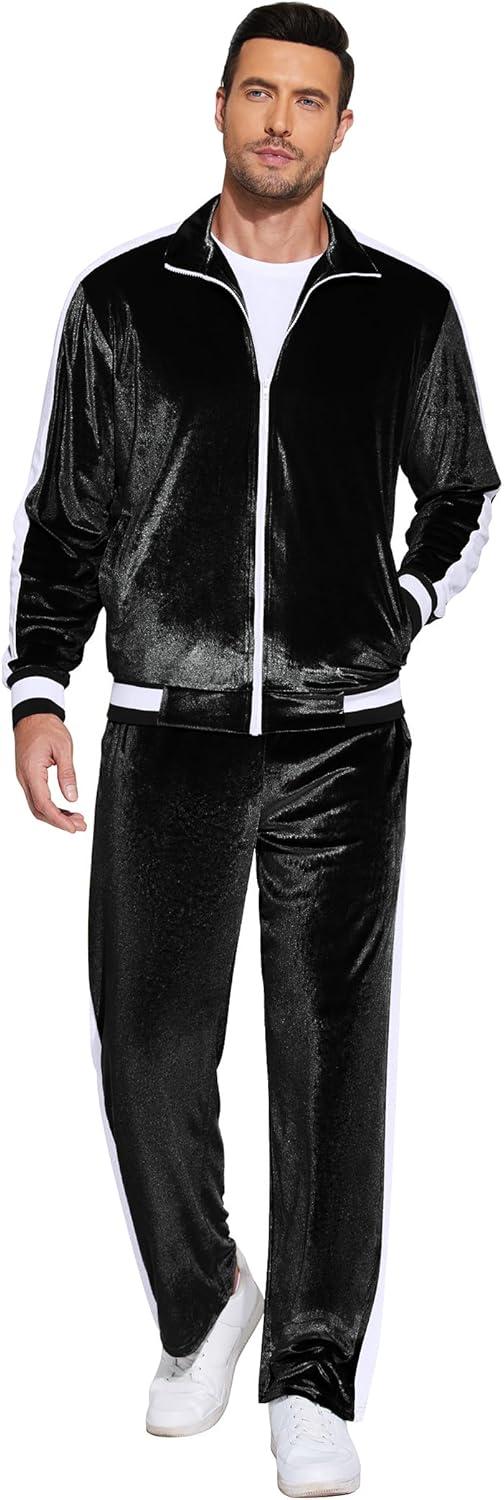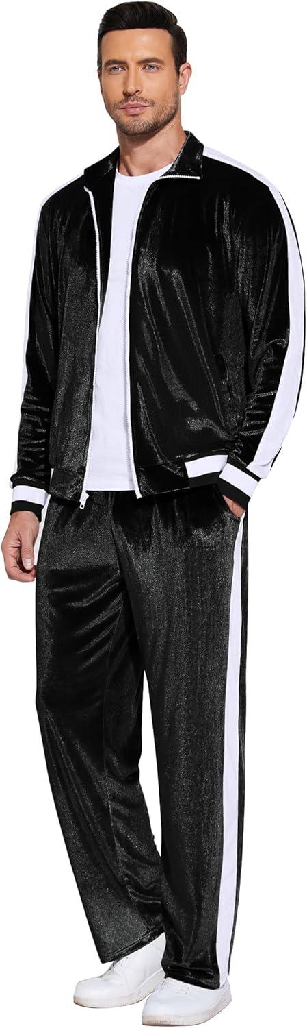 COOFANDY Mens Tracksuit 2 Piece Set Velour Sweatsuit Jogging Suits Full Zip Jacket Pants Outfits(Black)