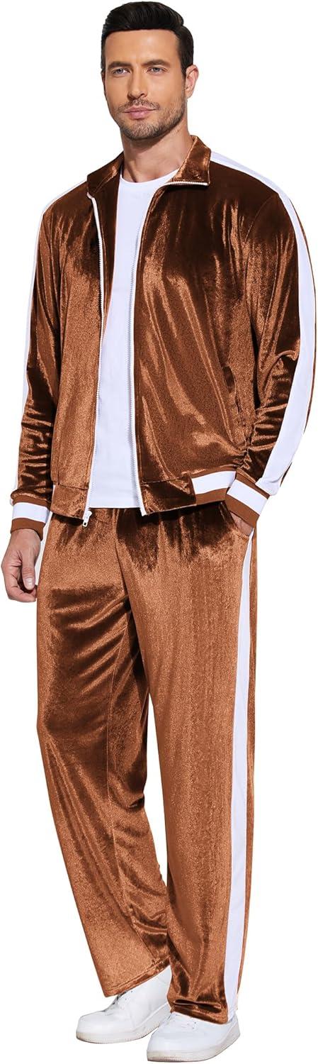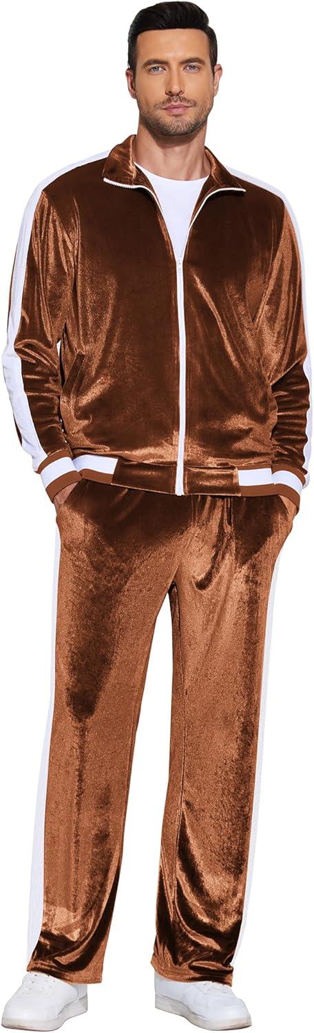 COOFANDY Mens Tracksuit 2 Piece Set Velour Sweatsuit Jogging Suits Full Zip Jacket Pants Outfits(Brown)