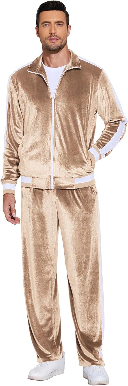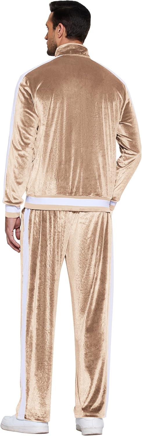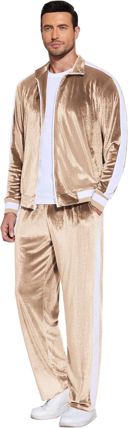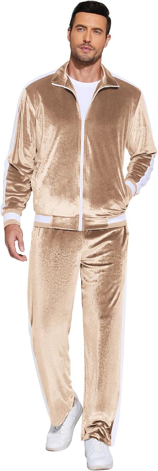 COOFANDY Mens Tracksuit 2 Piece Set Velour Sweatsuit Jogging Suits Full Zip Jacket Pants Outfits(Light Khaki)