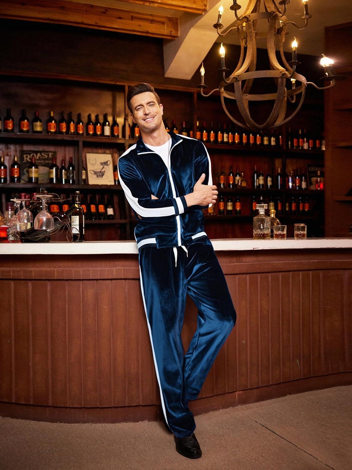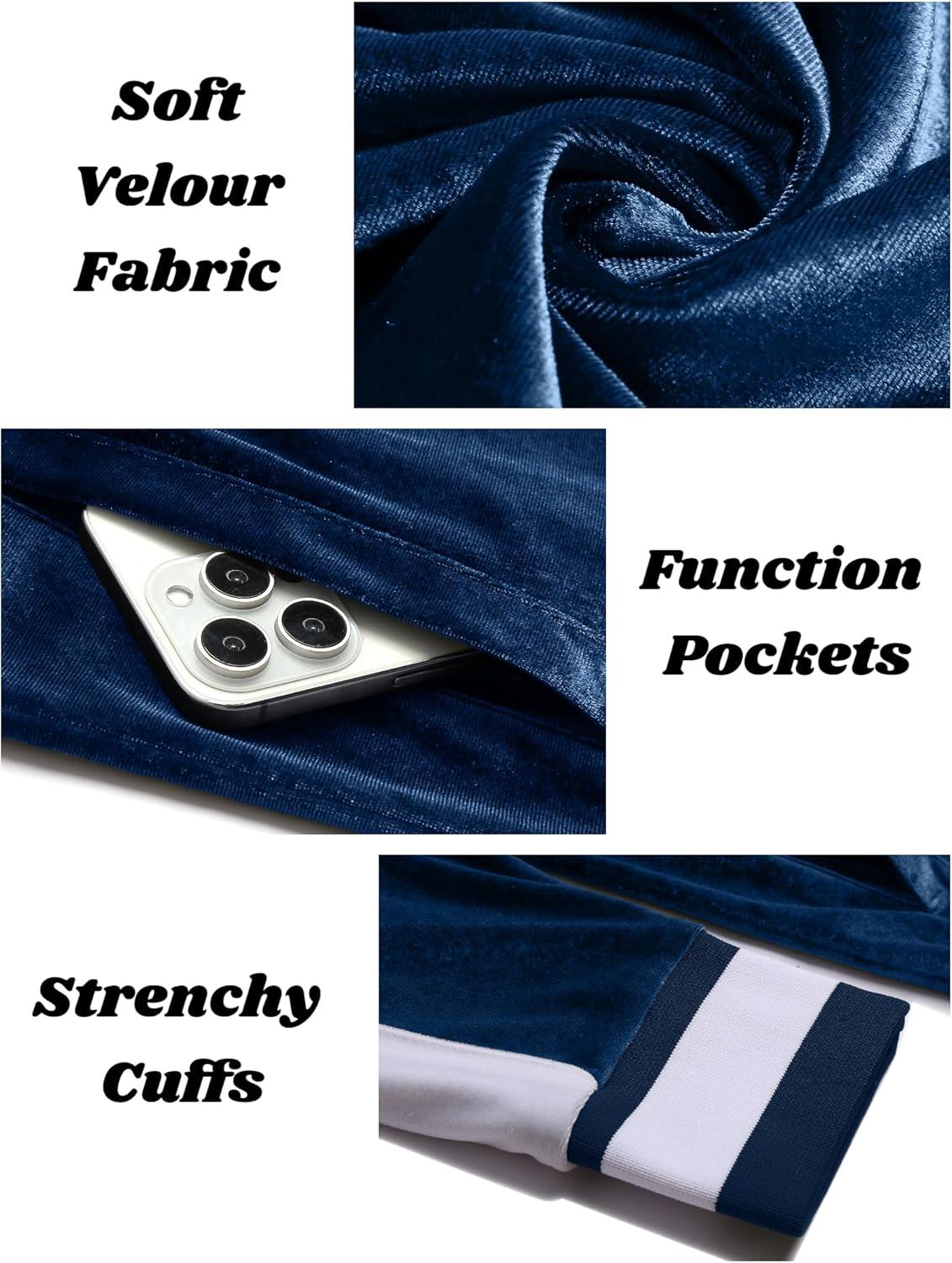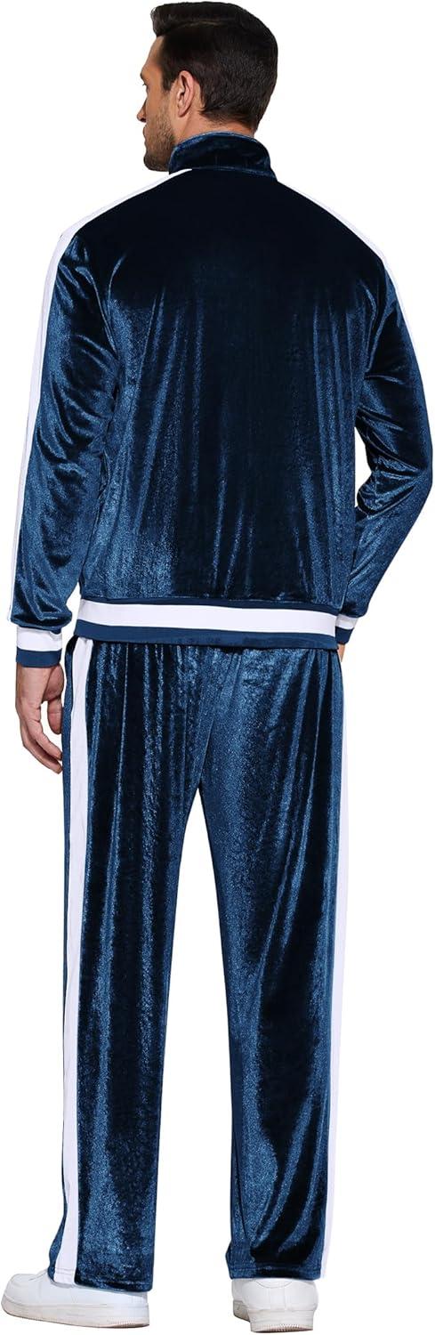 COOFANDY Mens Tracksuit 2 Piece Set Velour Sweatsuit Jogging Suits Full Zip Jacket Pants Outfits(Navy Blue)