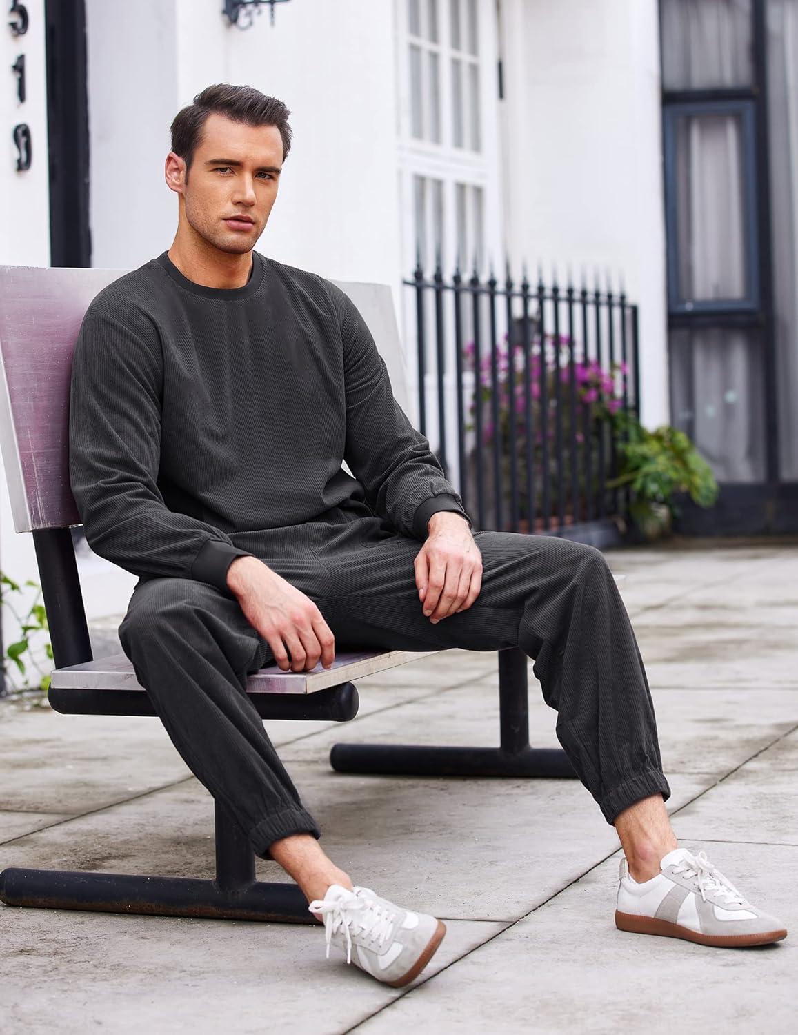 COOFANDY Men's Tracksuit 2 Piece Sweatsuit Set Long Sleeve Pullover Athletic Suit For Sports Casual Fitness Jogging(Dark Grey)