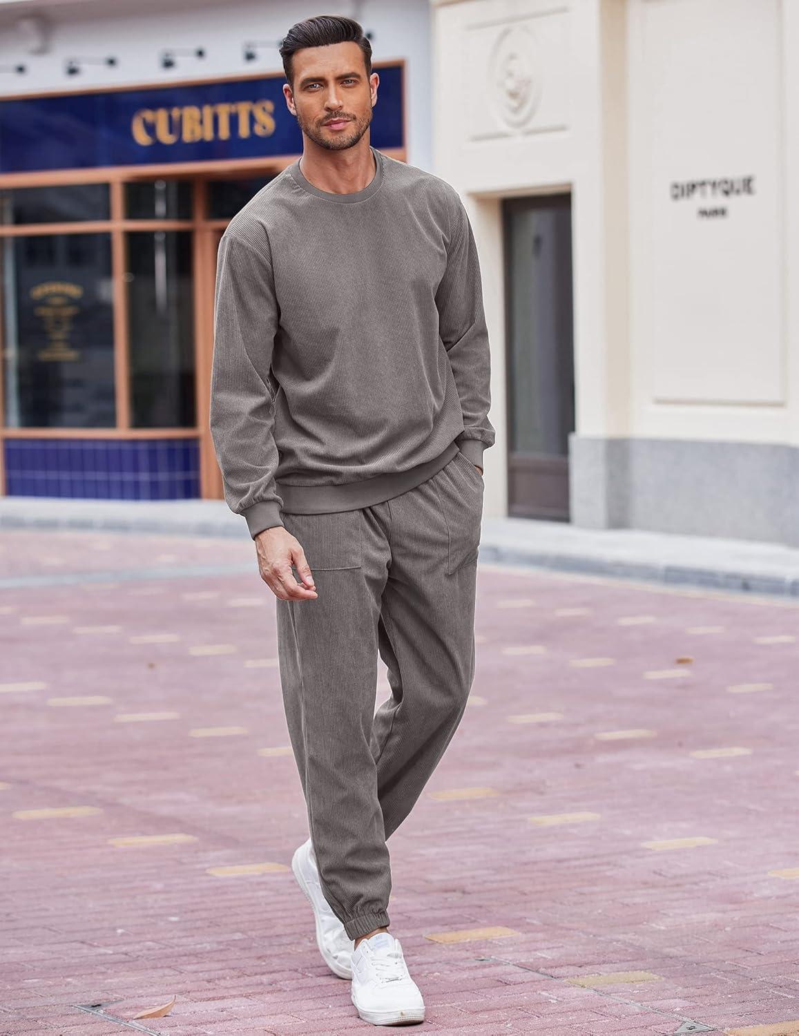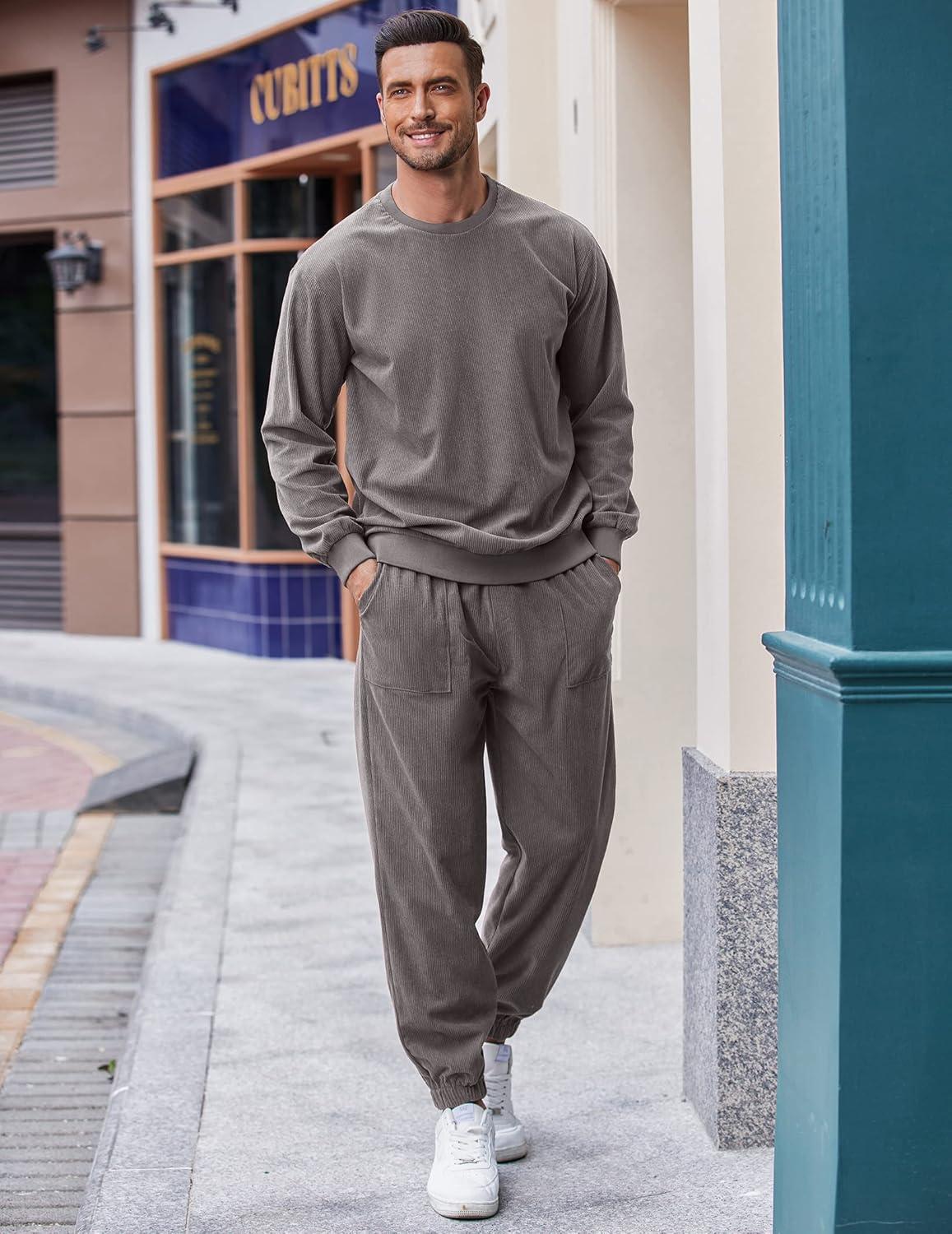 COOFANDY Men's Tracksuit 2 Piece Sweatsuit Set Long Sleeve Pullover Athletic Suit For Sports Casual Fitness Jogging(Grey)
