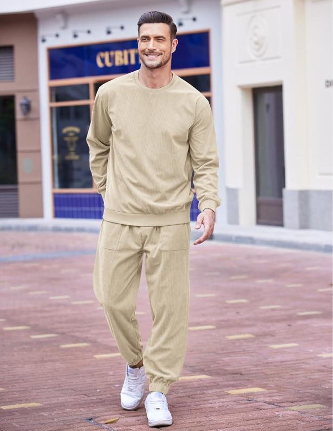 COOFANDY Men's Tracksuit 2 Piece Sweatsuit Set Long Sleeve Pullover Athletic Suit For Sports Casual Fitness Jogging(Moon Grey)