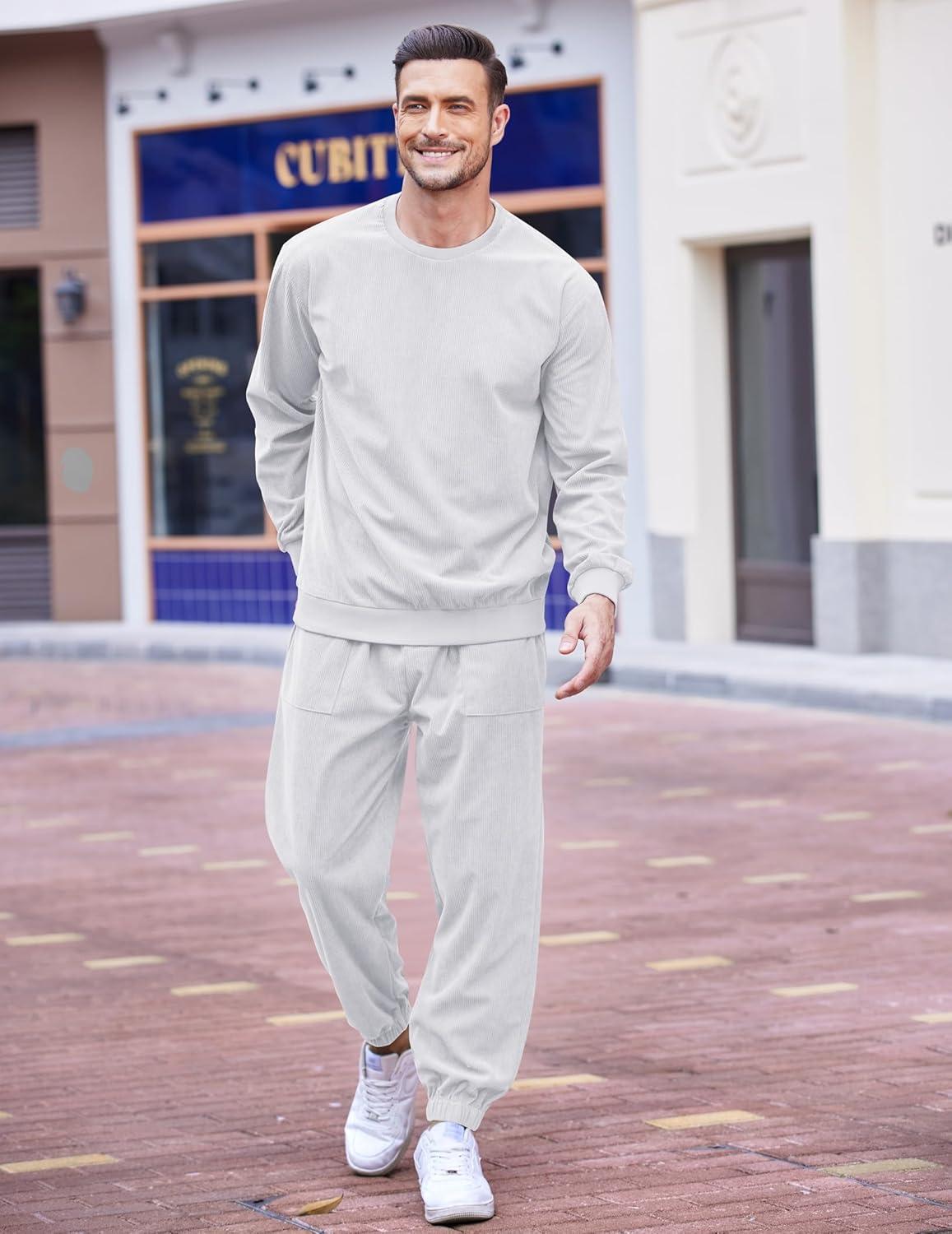 COOFANDY Men's Tracksuit 2 Piece Sweatsuit Set Long Sleeve Pullover Athletic Suit For Sports Casual Fitness Jogging(White)