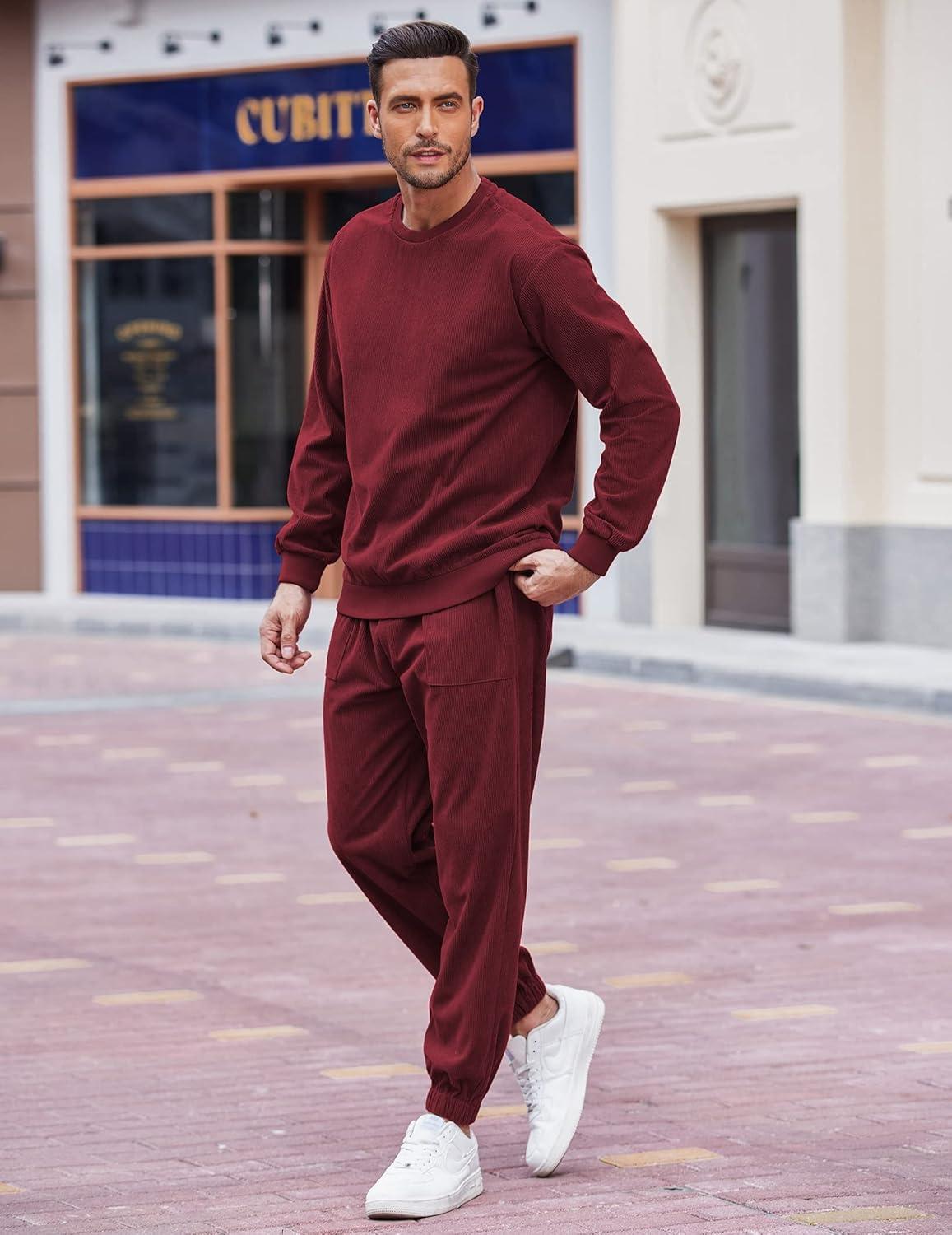 COOFANDY Men's Tracksuit 2 Piece Sweatsuit Set Long Sleeve Pullover Athletic Suit For Sports Casual Fitness Jogging(Wine Red)