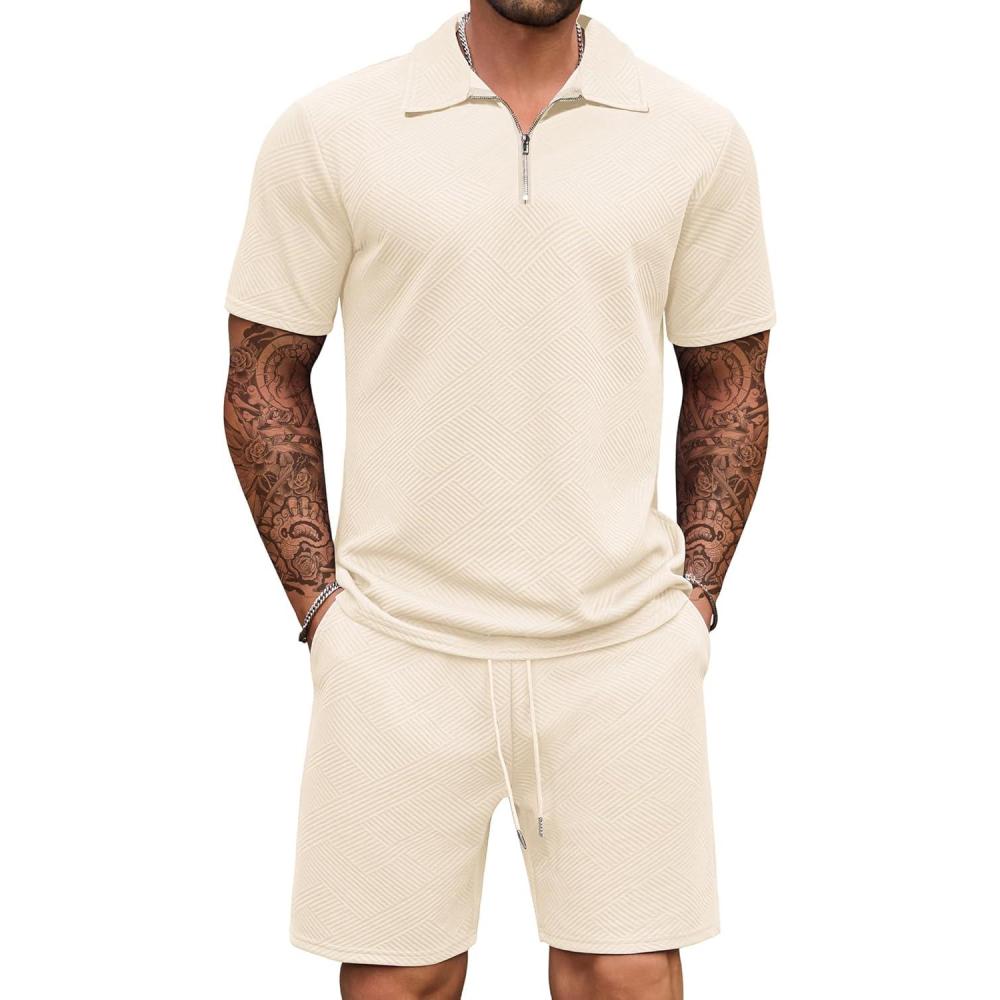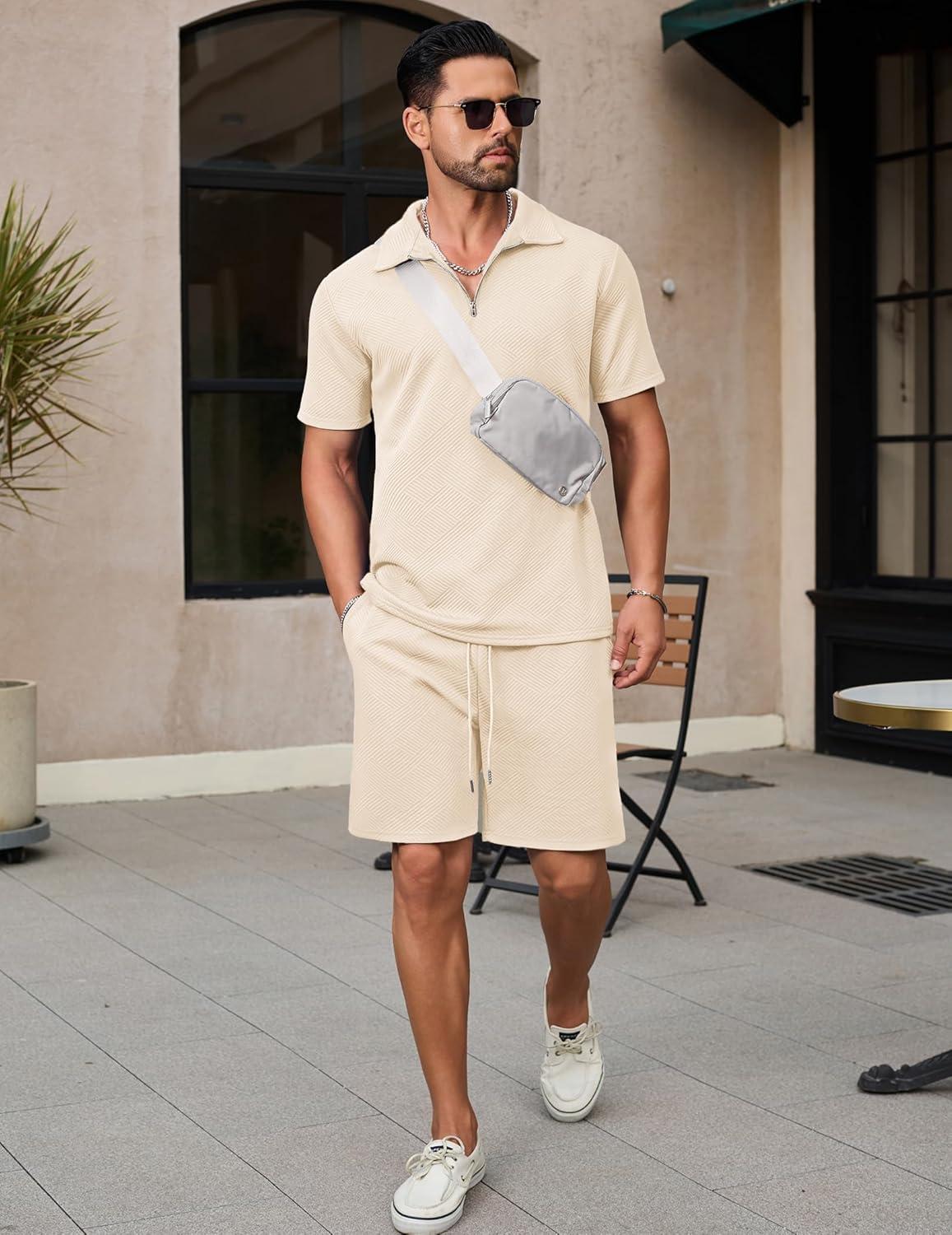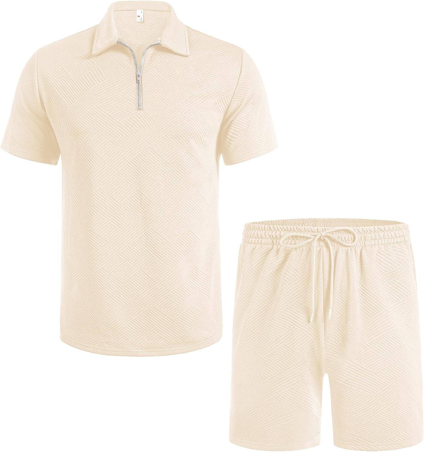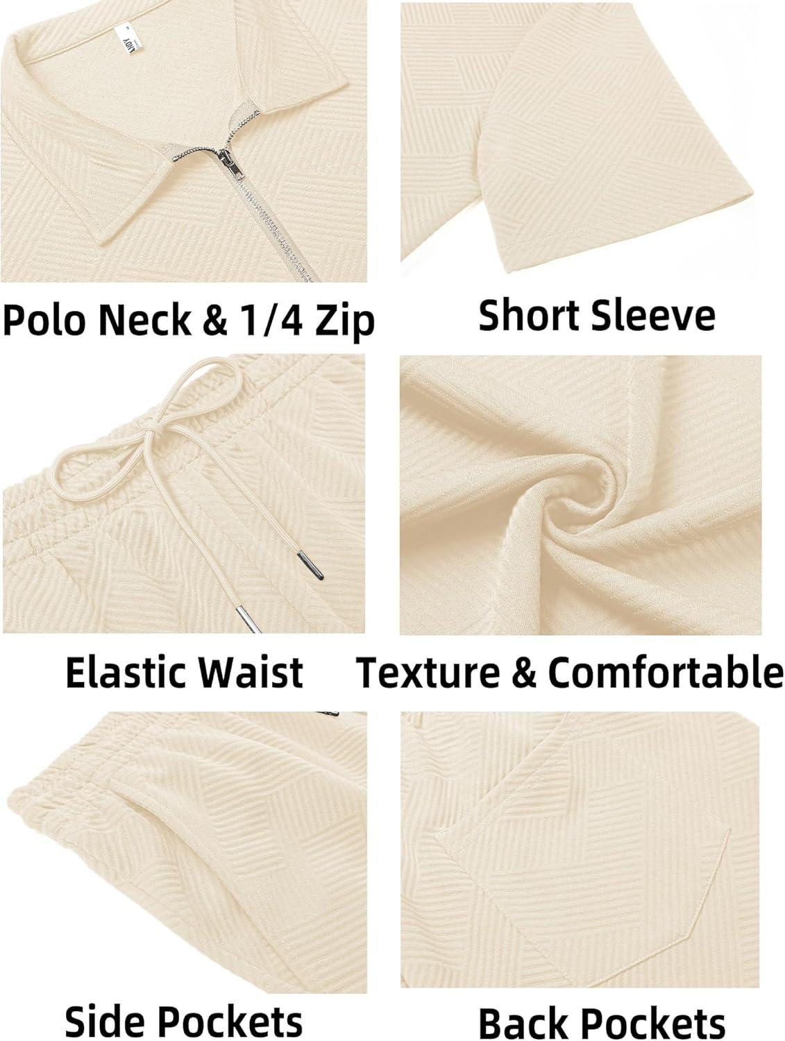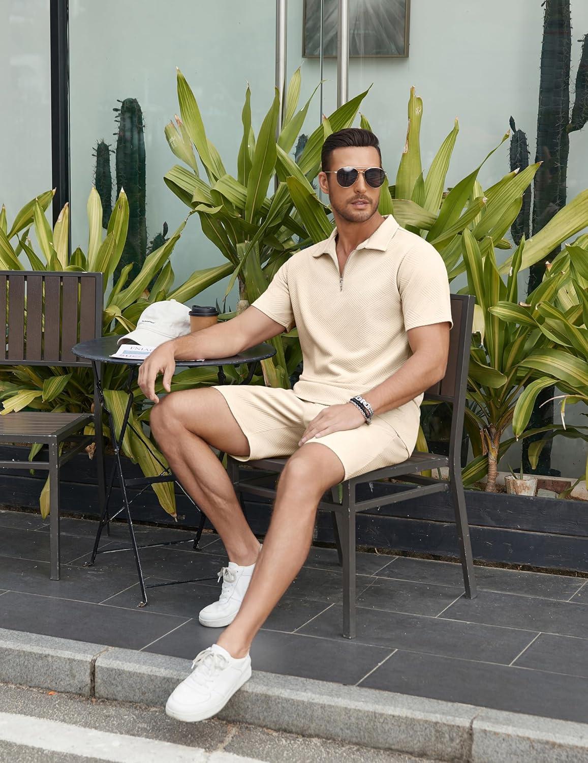 COOFANDY Mens Tracksuit Casual 2 Piece Quarter Zip Polo Shirt and Shorts Set Athletic Jogging Sports Outfits(Beige)
