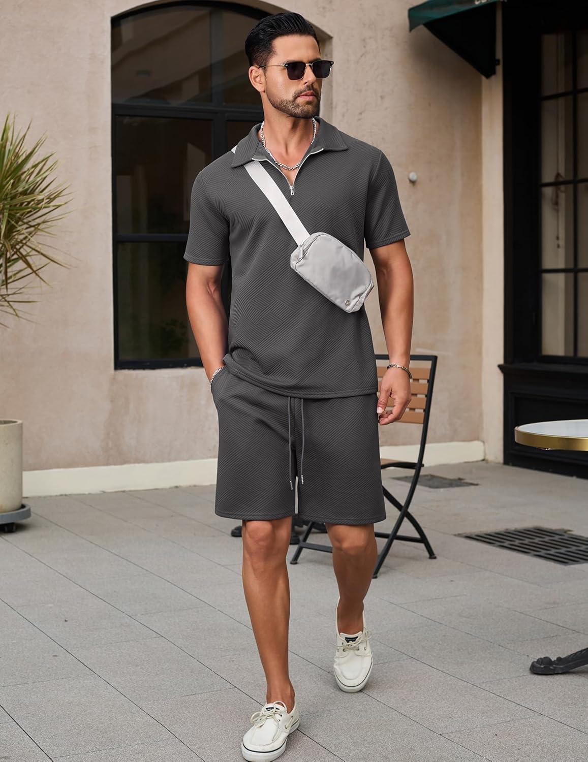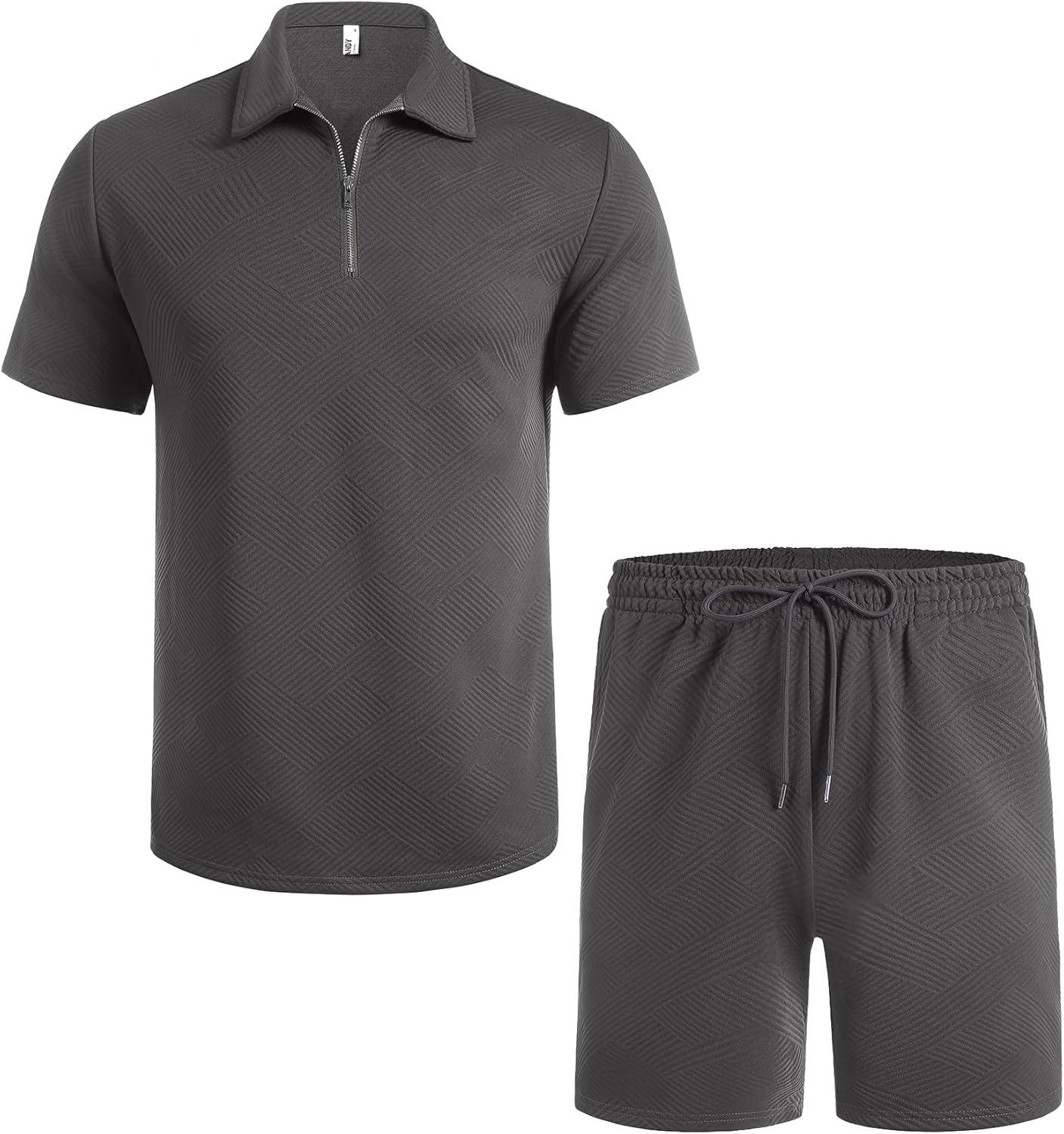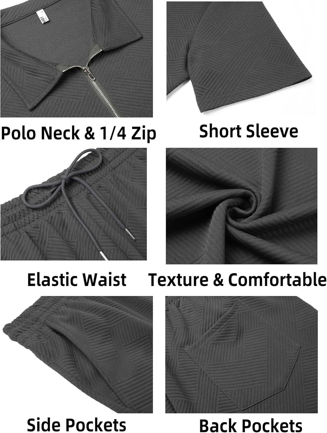 COOFANDY Mens Tracksuit Casual 2 Piece Quarter Zip Polo Shirt and Shorts Set Athletic Jogging Sports Outfits(Dark Grey)