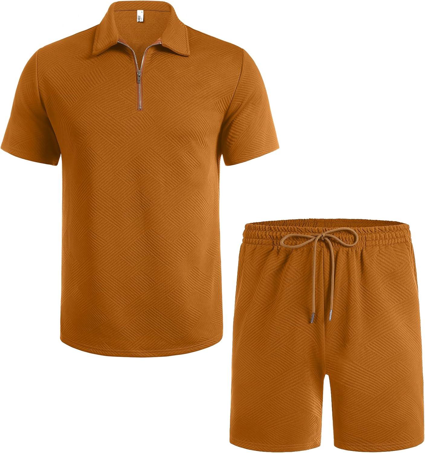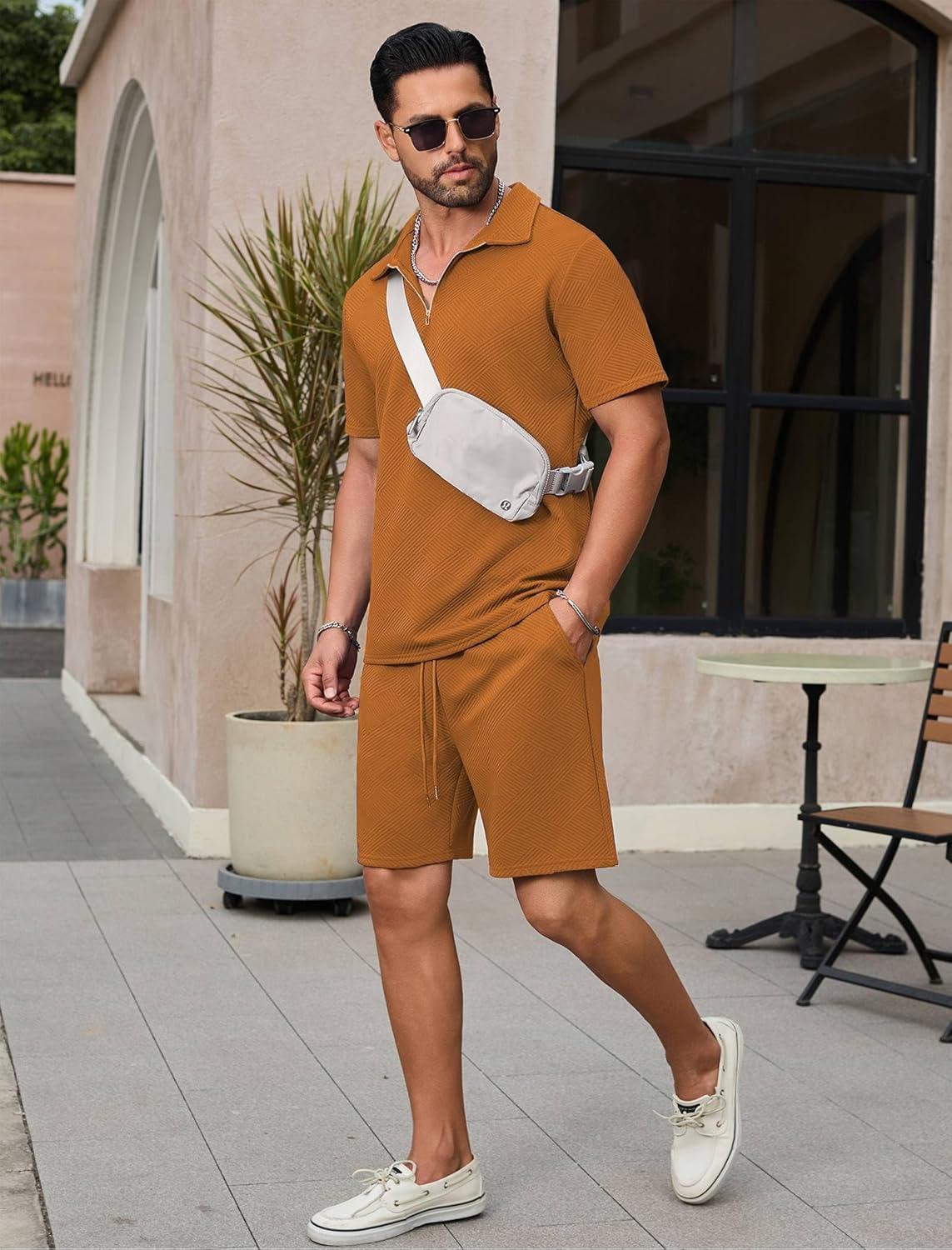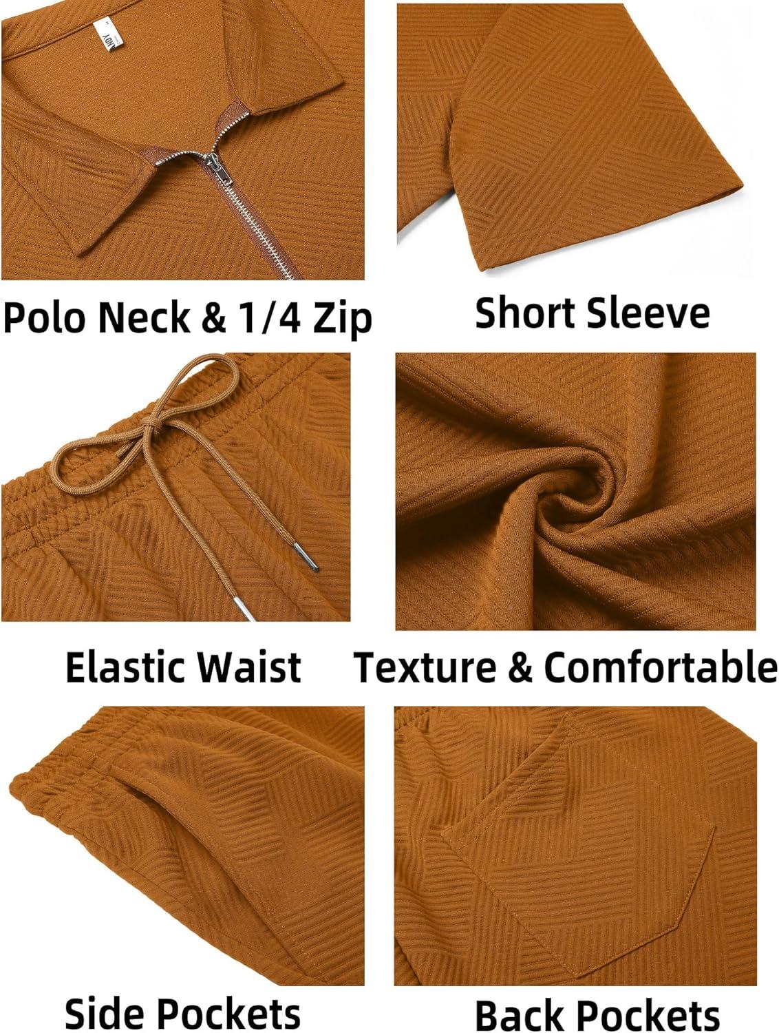 COOFANDY Mens Tracksuit Casual 2 Piece Quarter Zip Polo Shirt and Shorts Set Athletic Jogging Sports Outfits(Light Brown)