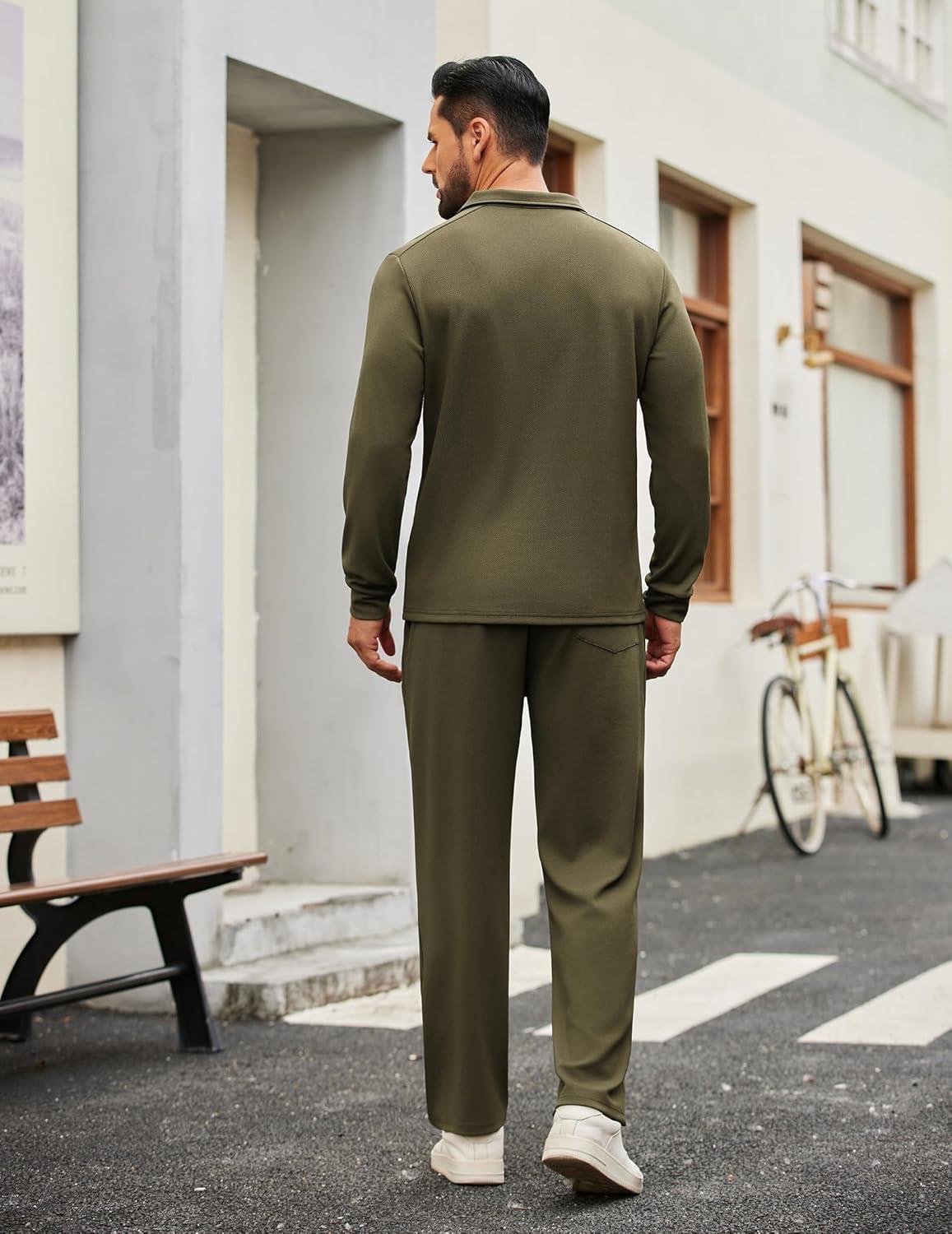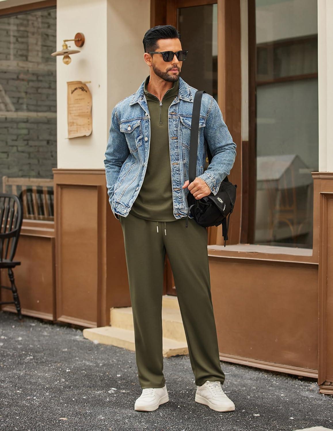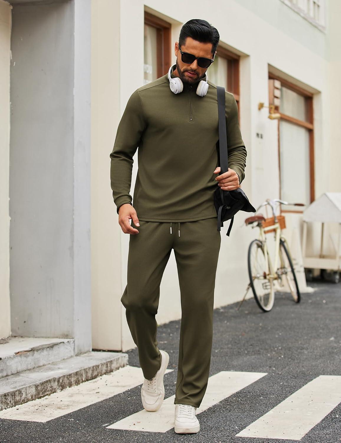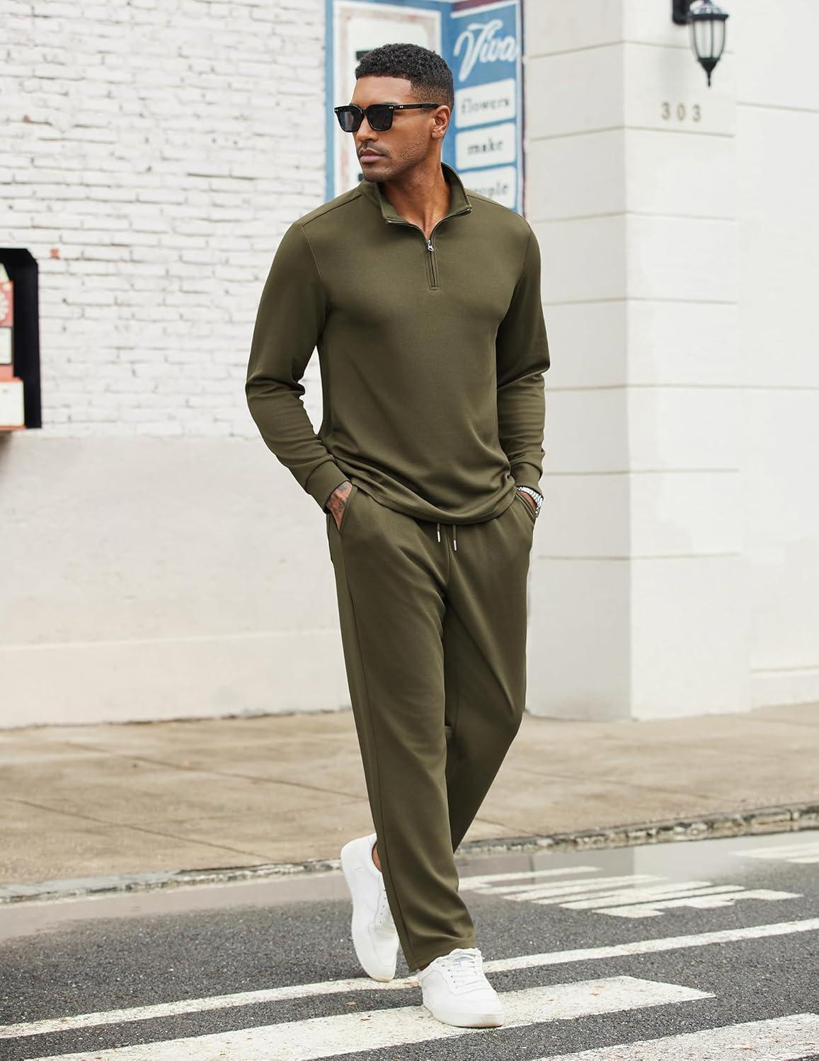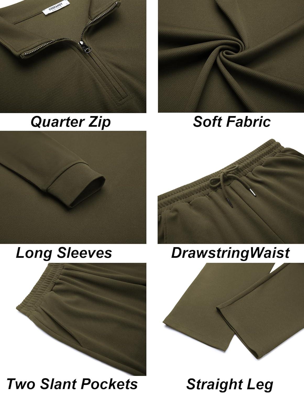 COOFANDY Men's Tracksuits 2 Piece Casual Athletic Sweatsuit Quarter Zip Pullover Long Sleeve Running Sport Outfits(Army Green)