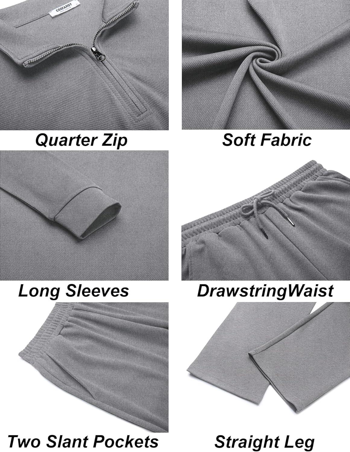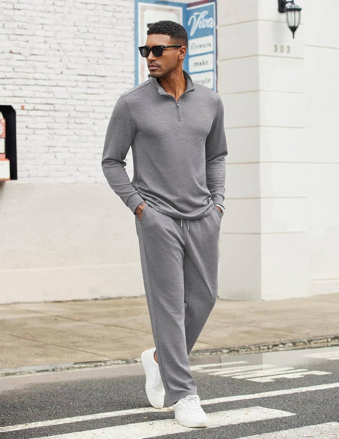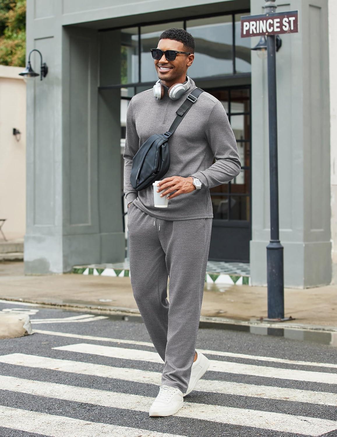 COOFANDY Men's Tracksuits 2 Piece Casual Athletic Sweatsuit Quarter Zip Pullover Long Sleeve Running Sport Outfits(Light Grey)