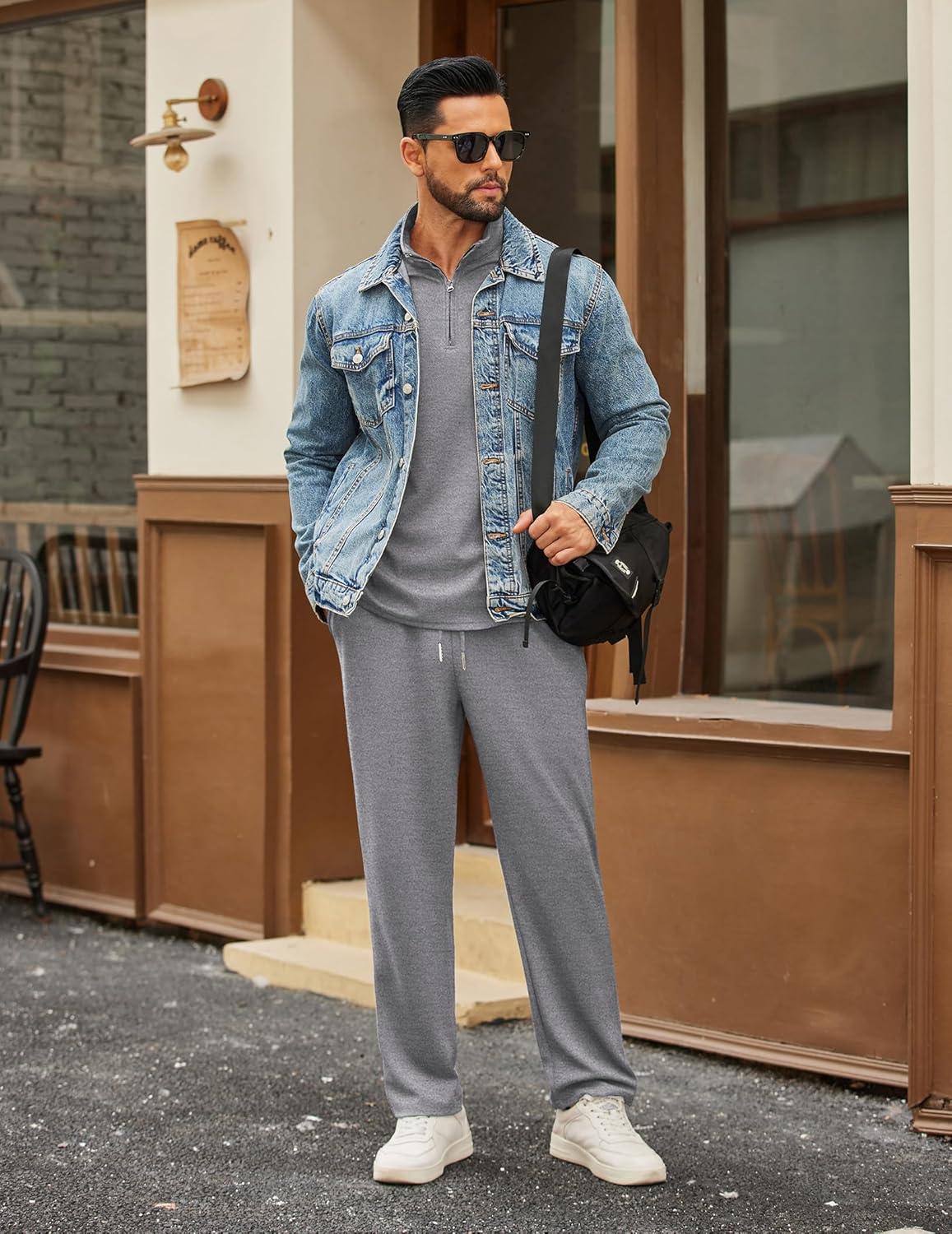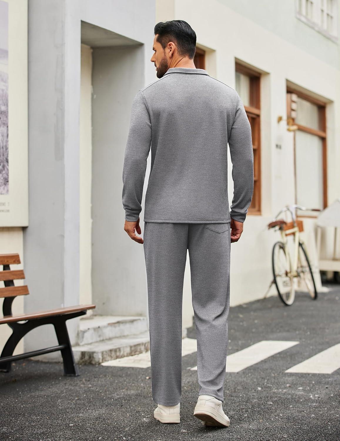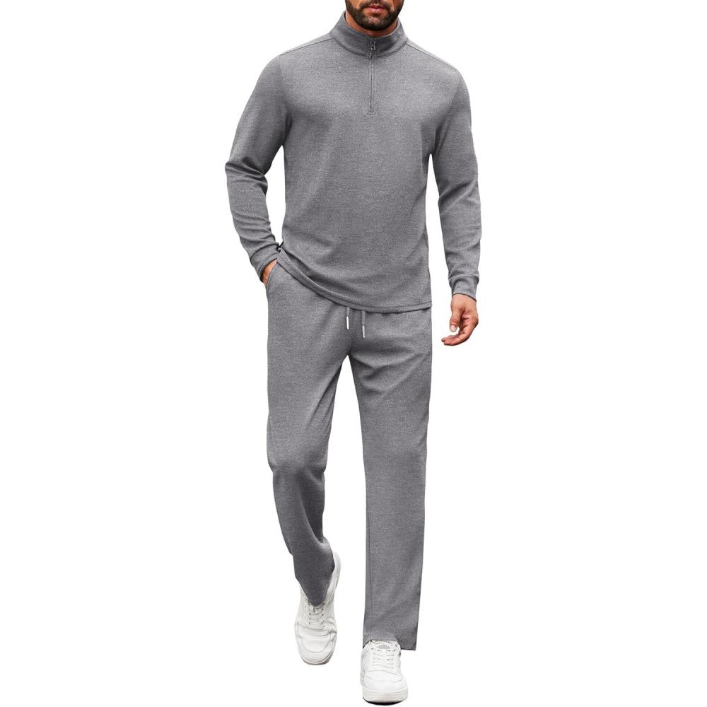 COOFANDY Men's Tracksuits 2 Piece Casual Athletic Sweatsuit Quarter Zip Pullover Long Sleeve Running Sport Outfits(Light Grey)
