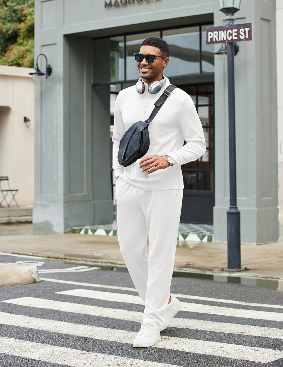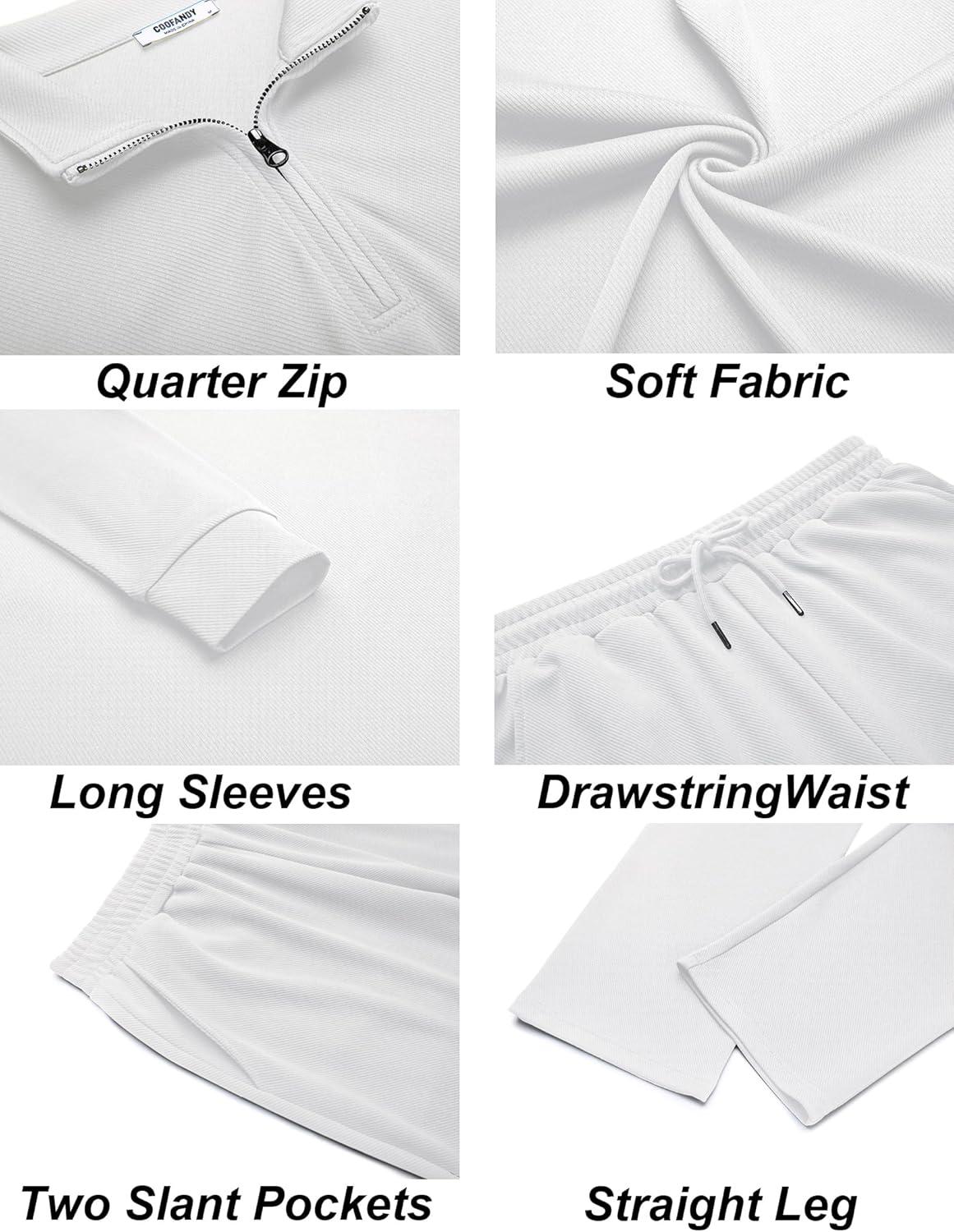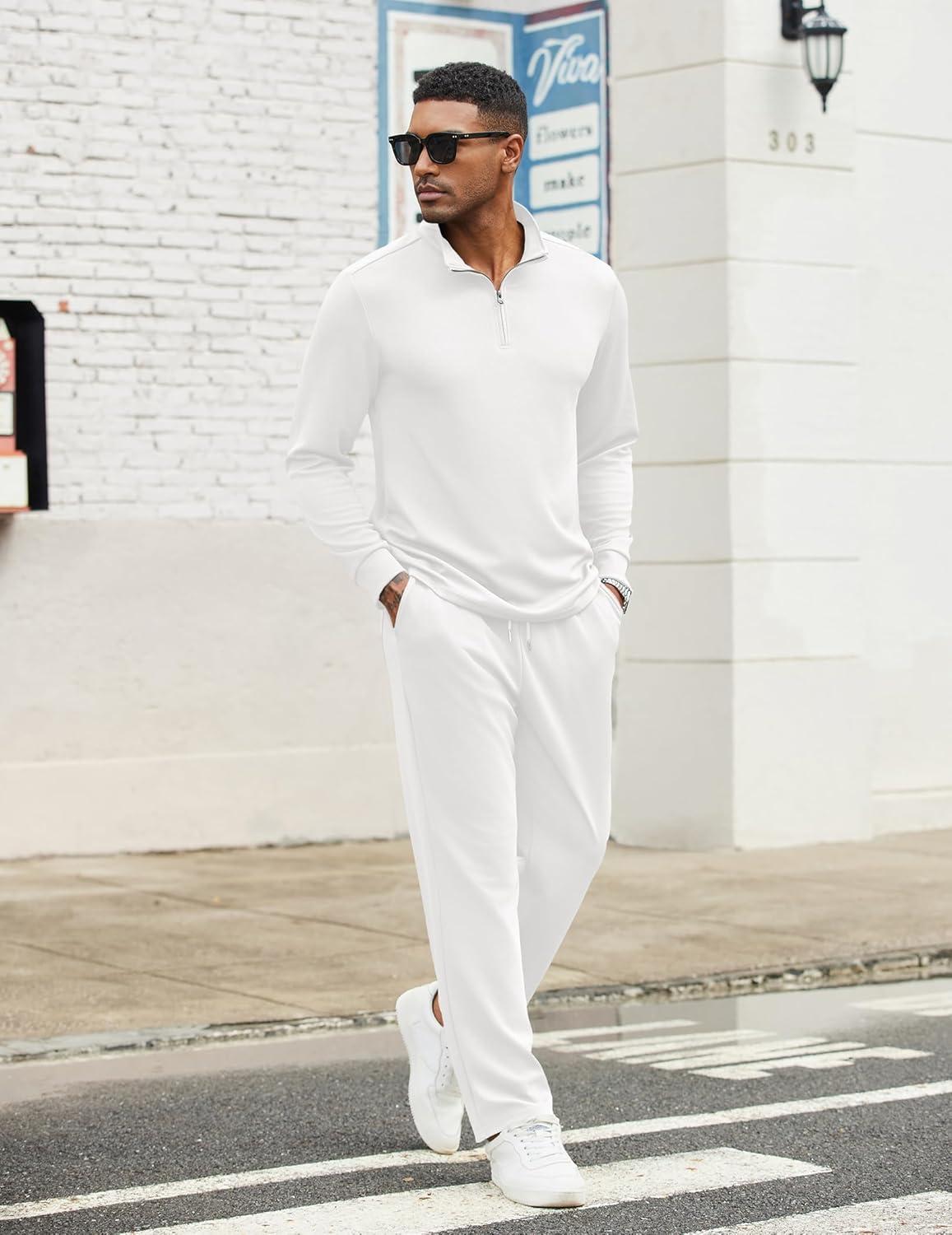 COOFANDY Men's Tracksuits 2 Piece Casual Athletic Sweatsuit Quarter Zip Pullover Long Sleeve Running Sport Outfits(White)
