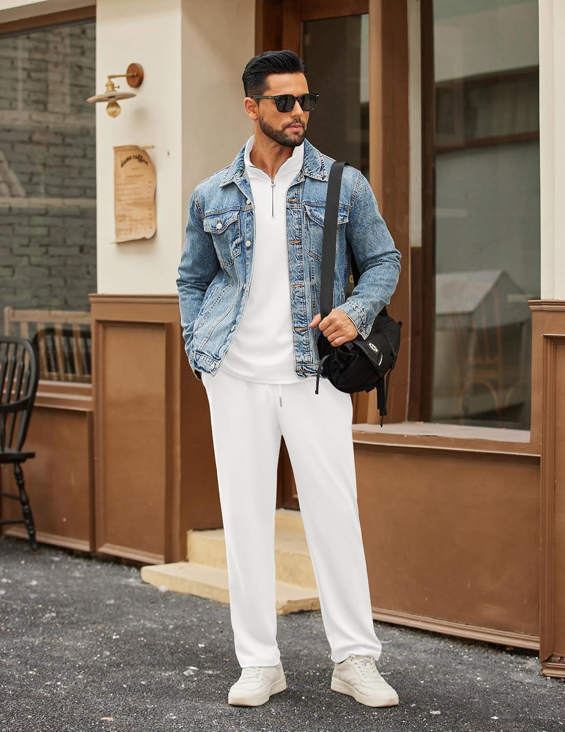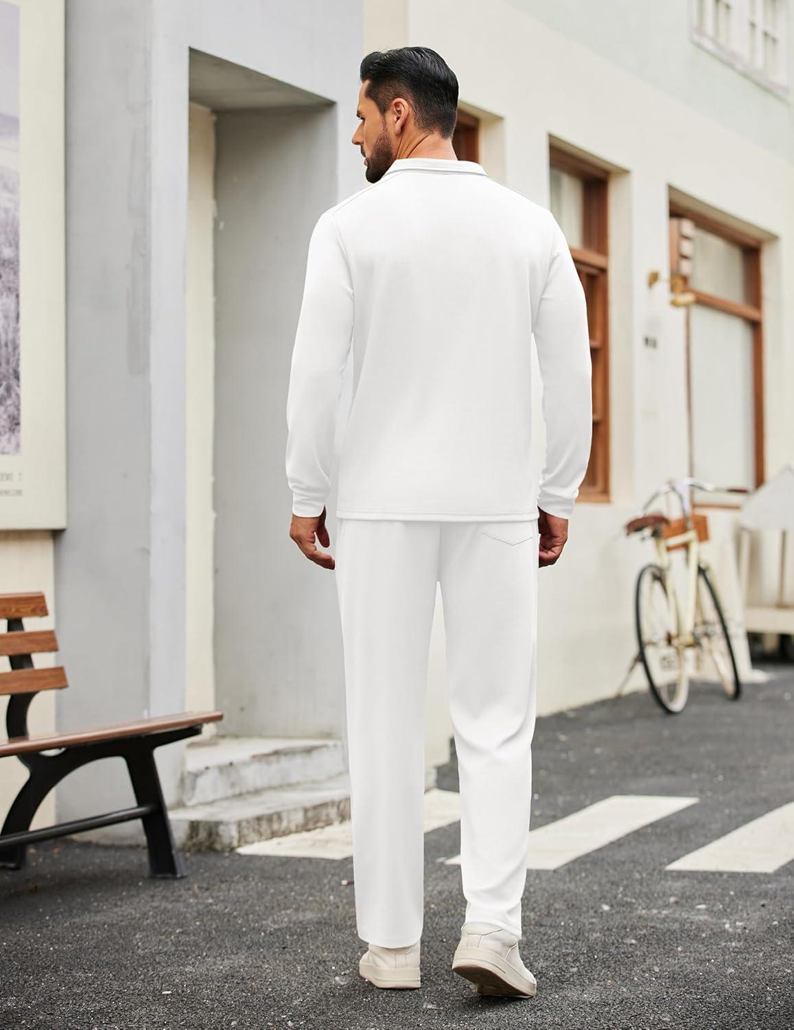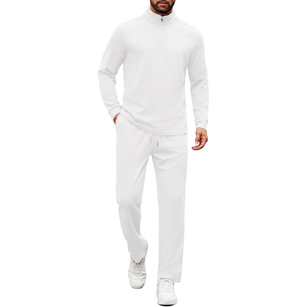 COOFANDY Men's Tracksuits 2 Piece Casual Athletic Sweatsuit Quarter Zip Pullover Long Sleeve Running Sport Outfits(White)