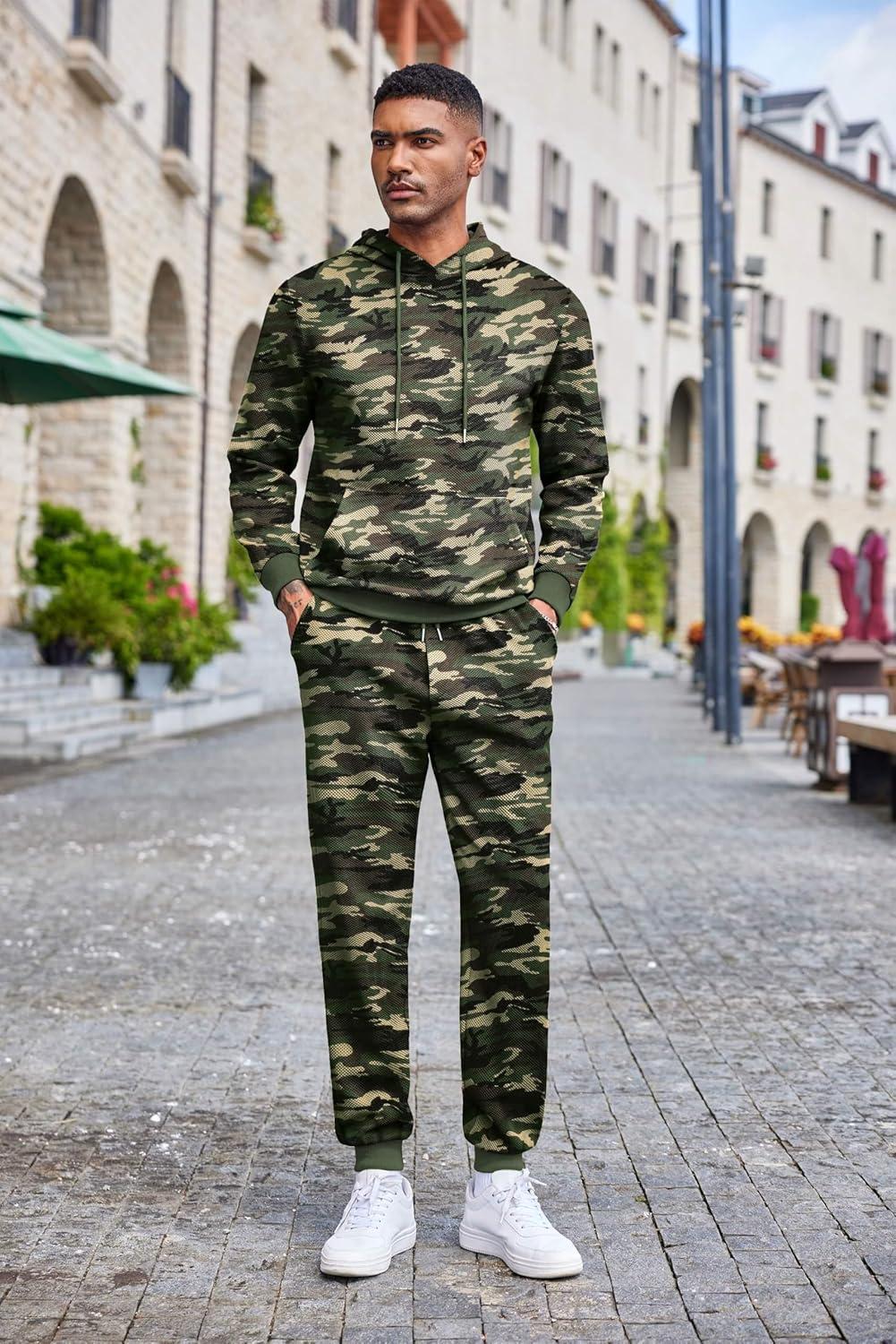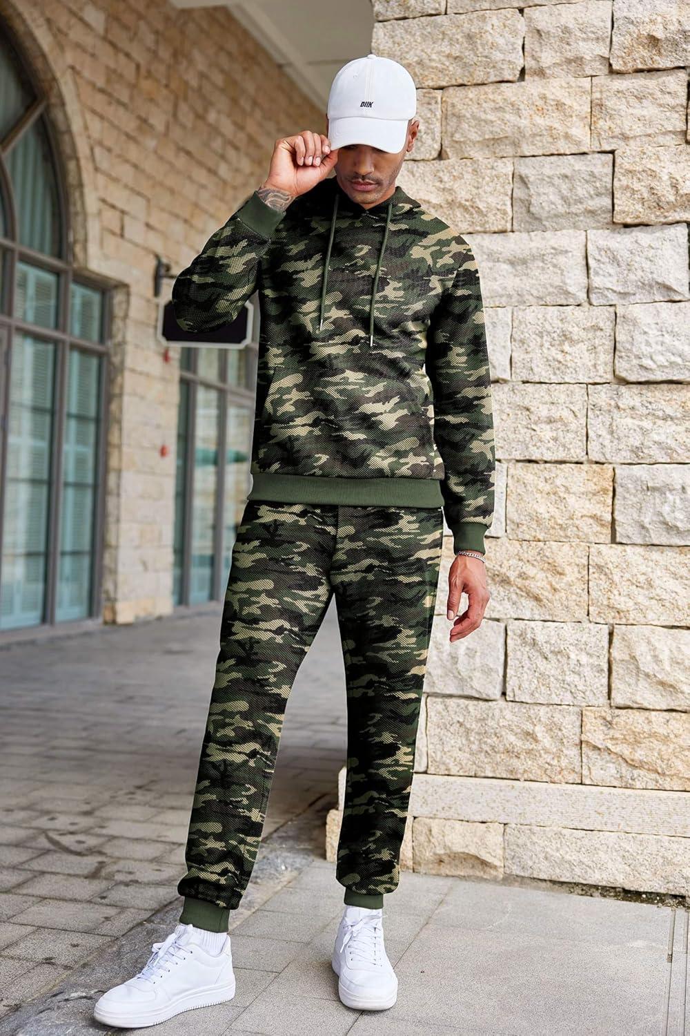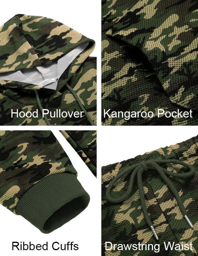 COOFANDY Men's Tracksuits 2 Pieces Waffle Hoodies Sweatsuit Sets Sports Jogging Suit Set(Army Green Camo)
