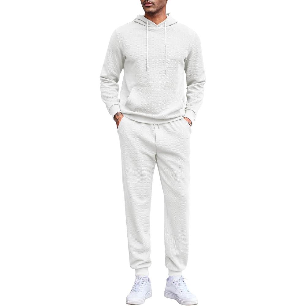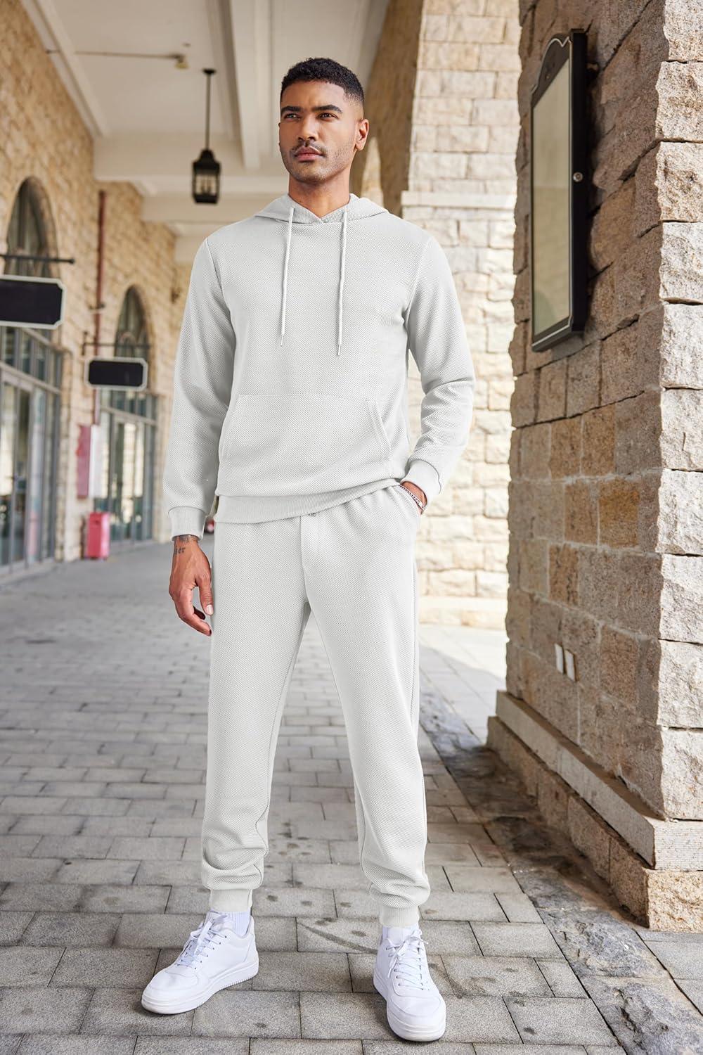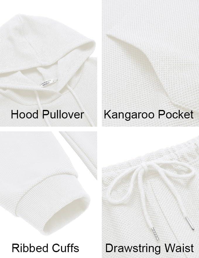 COOFANDY Men's Tracksuits 2 Pieces Waffle Hoodies Sweatsuit Sets Sports Jogging Suit Set(Whhite)
