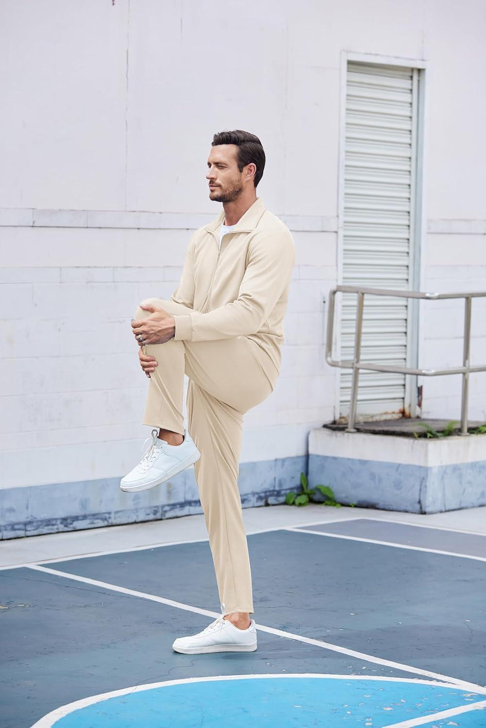 COOFANDY Men’s Tracksuits Casual Sweatsuit 2 Piece Full Zip Athletic Jogging Suit Sets Sport Sweat Suit(Cream)