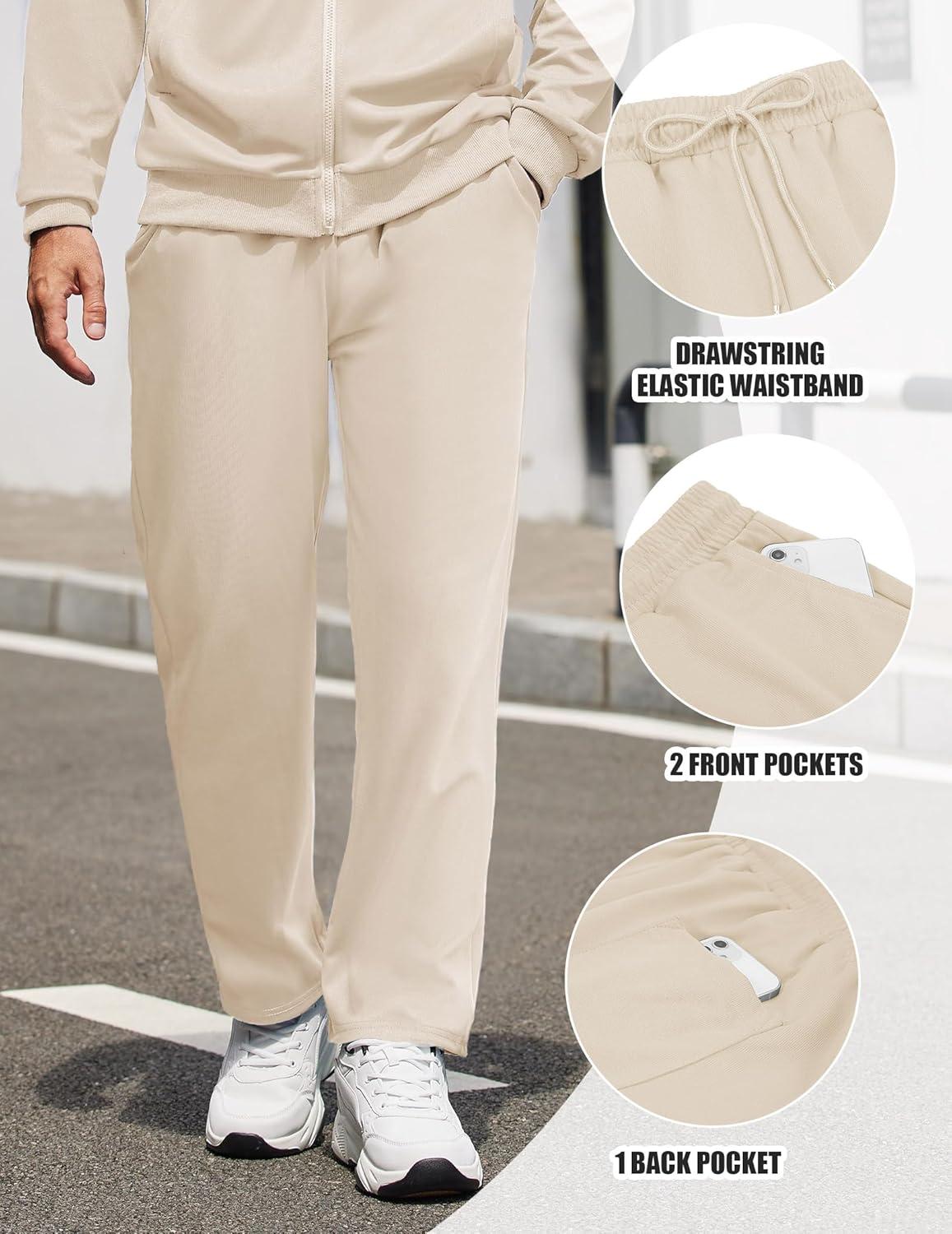 COOFANDY Men's Tracksuits Casual Sweatsuit 2 Piece Full Zip Athletic Jogging Suit Sets Sport Sweat Suit(Cream)