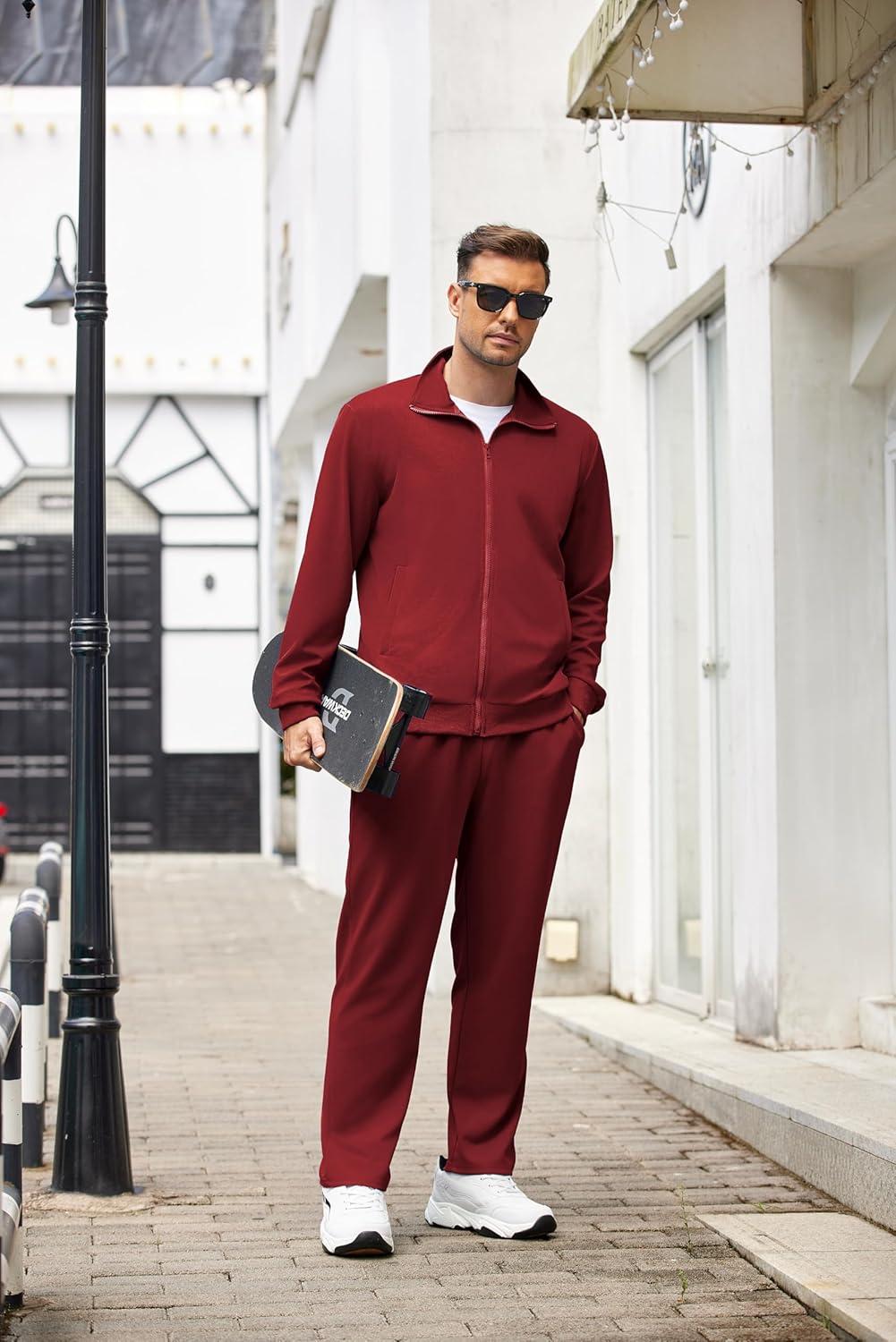 COOFANDY Men’s Tracksuits Casual Sweatsuit 2 Piece Full Zip Athletic Jogging Suit Sets Sport Sweat Suit(Wine Red)