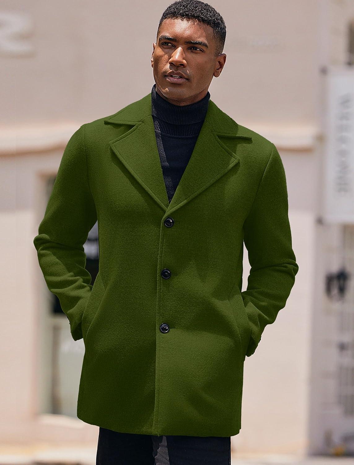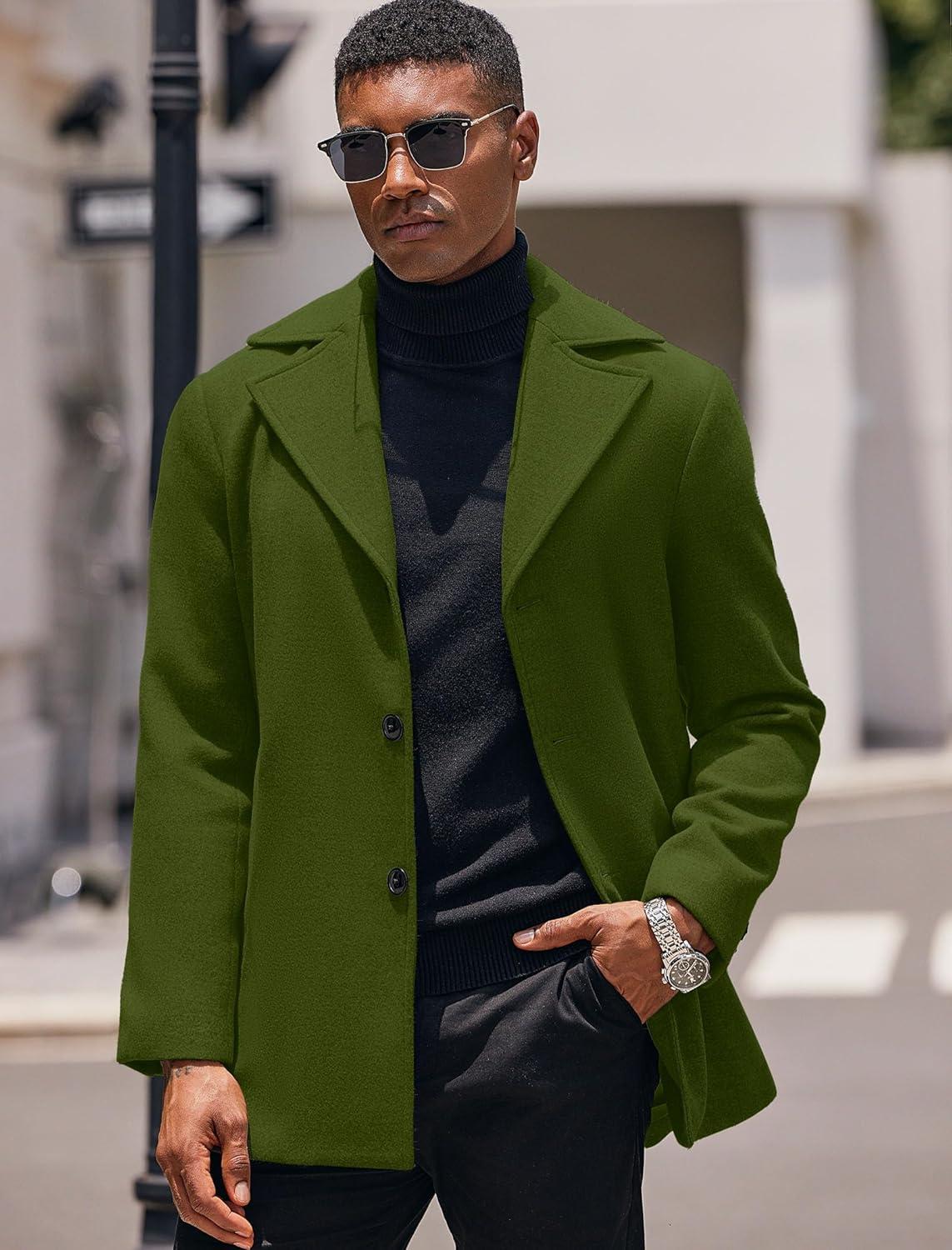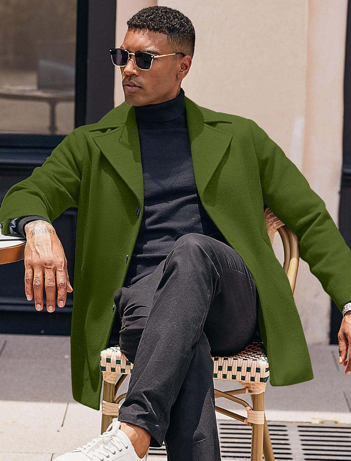 COOFANDY Mens Trench Coat Notched Collar Single Breasted Peacoat Winter Overcoat With Pockets(Army Green)