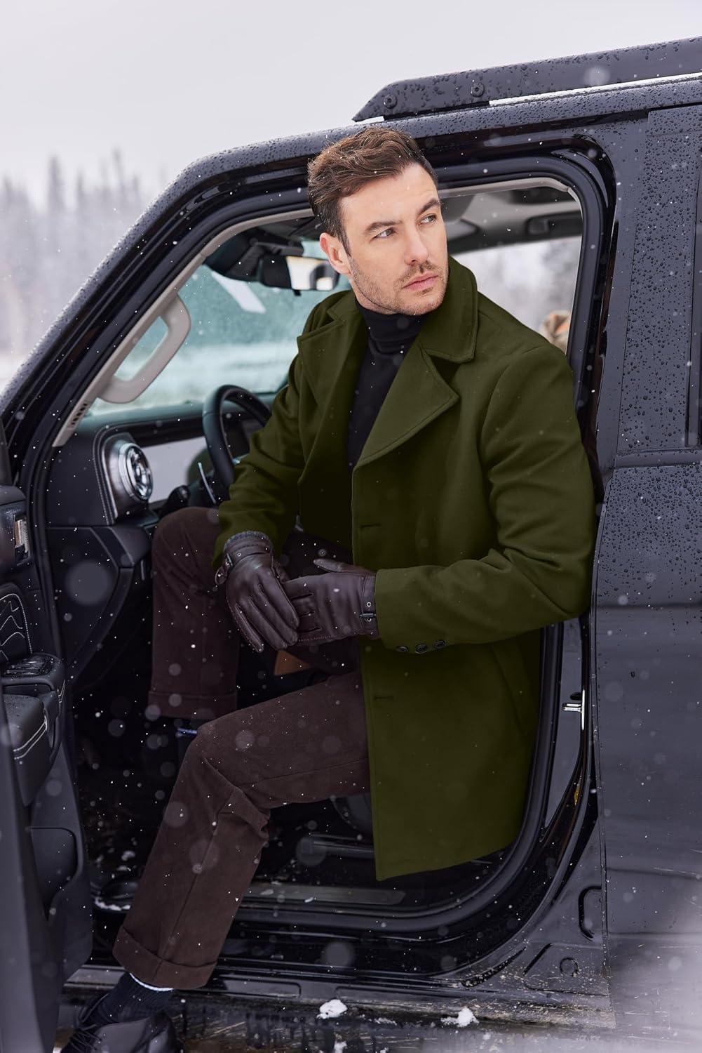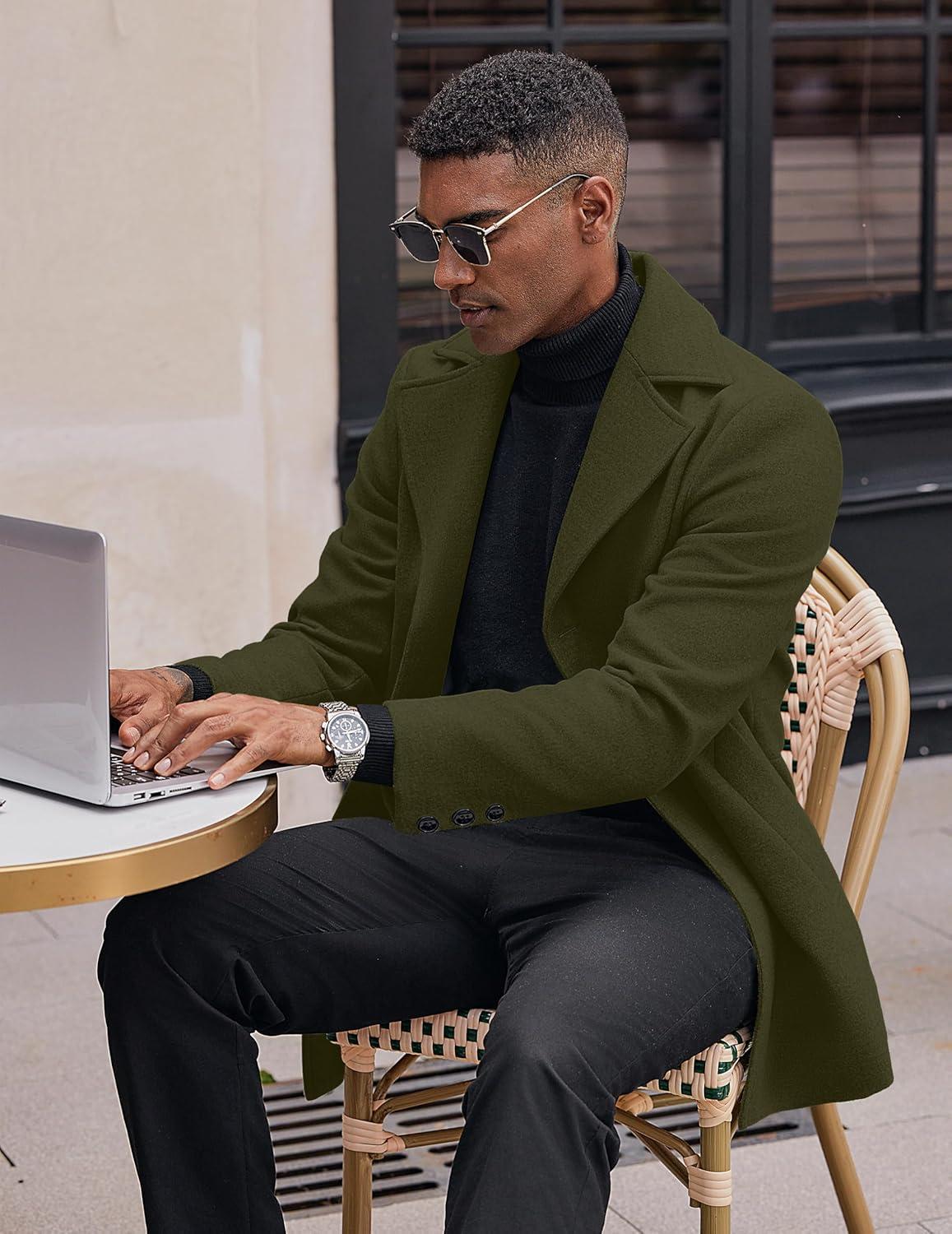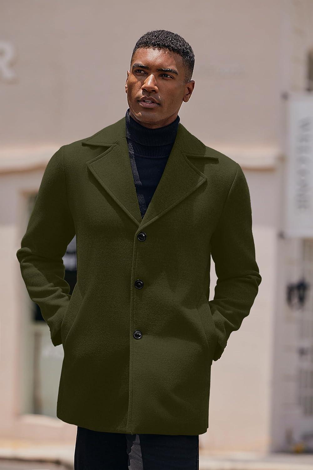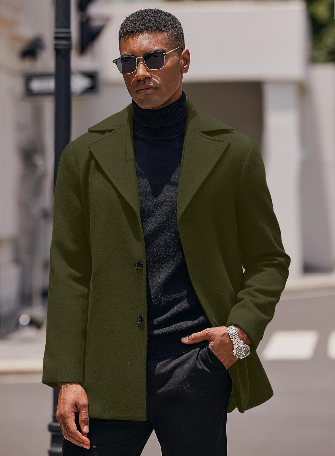 COOFANDY Mens Trench Coat Notched Collar Single Breasted Peacoat Winter Overcoat With Pockets(Olive Green)