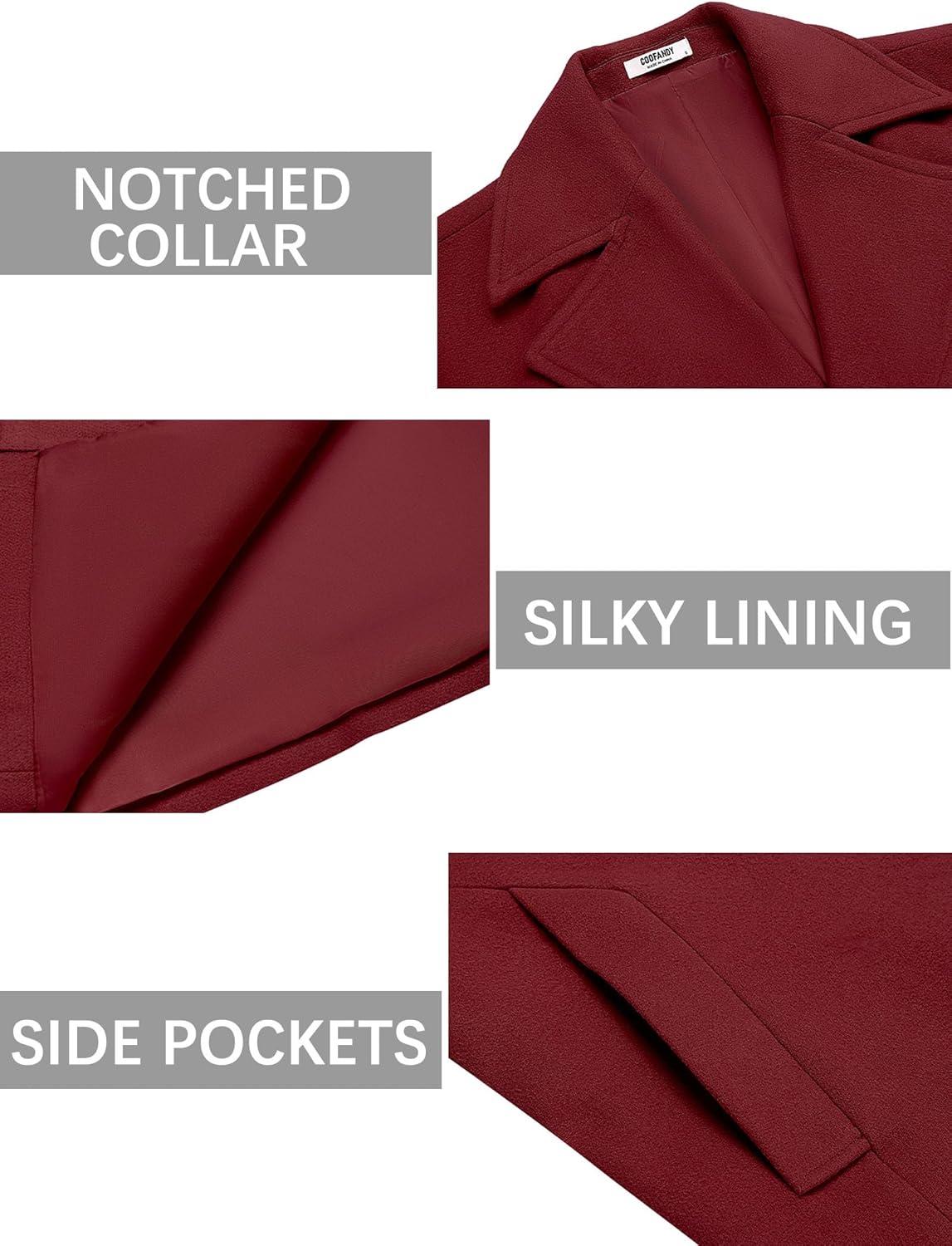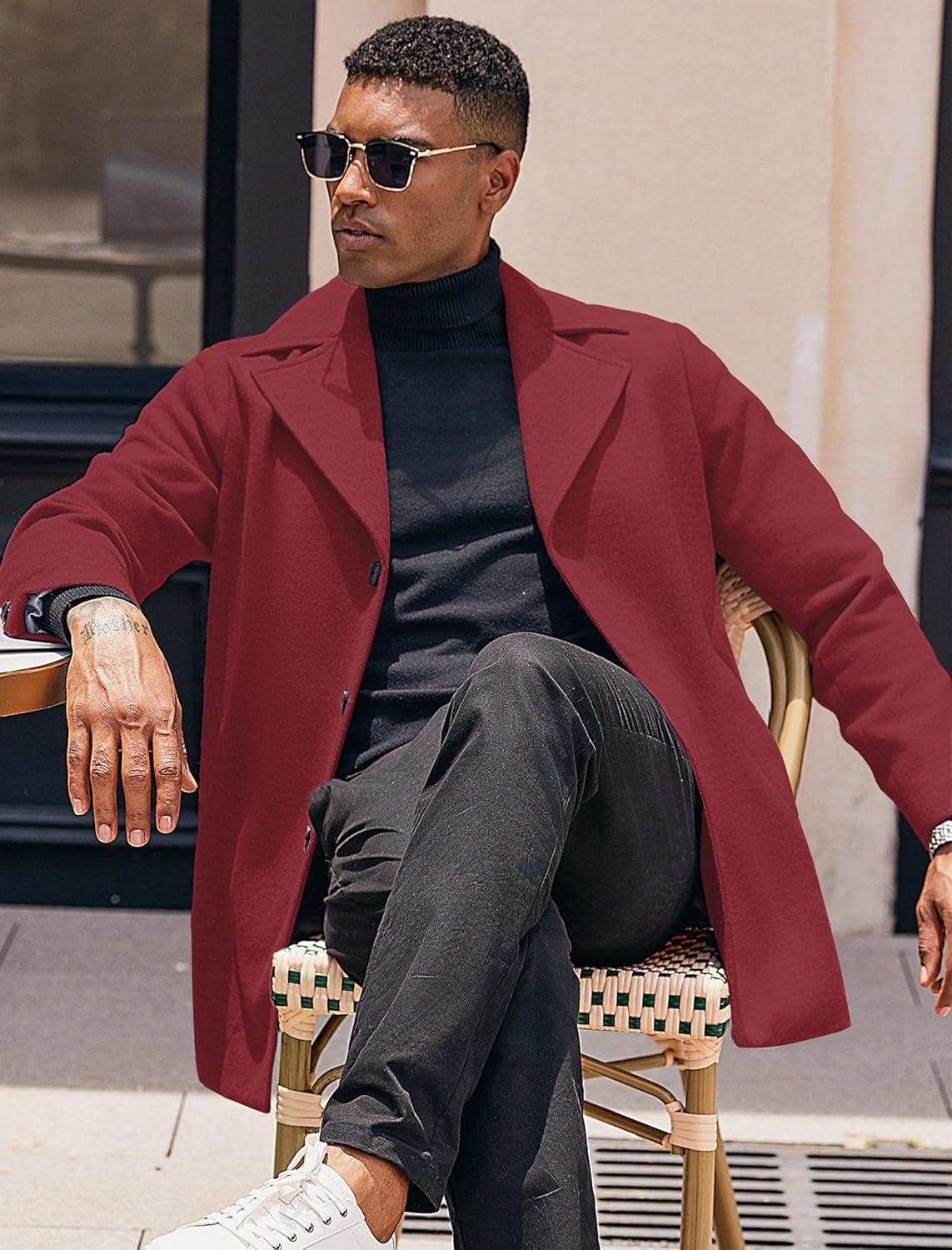 COOFANDY Mens Trench Coat Notched Collar Single Breasted Peacoat Winter Overcoat With Pockets(Wine Red)