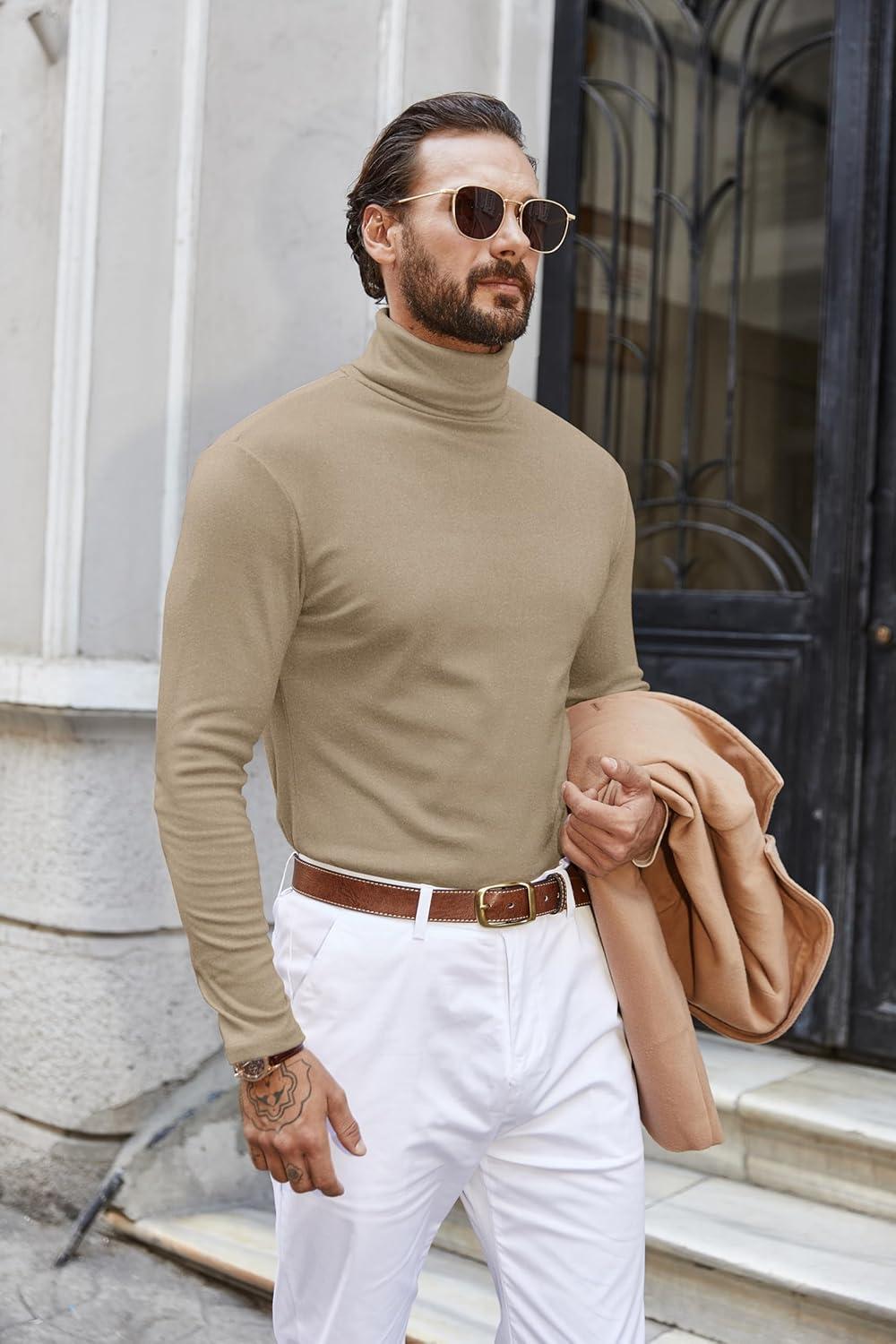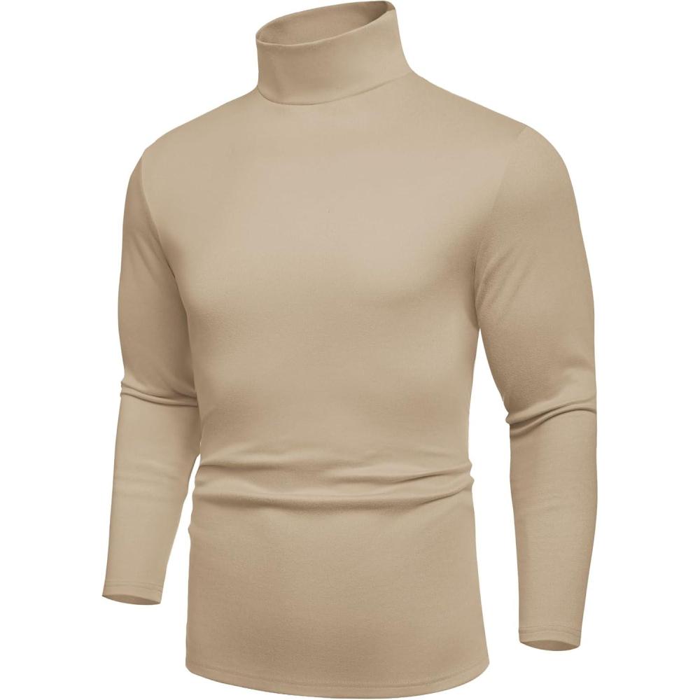 COOFANDY Men's Turtle Neck Shirts High Neck Mock Neck T Shirts Long Sleeve Slim Fit Sweater Casual Thermal Pullover(Khaki)