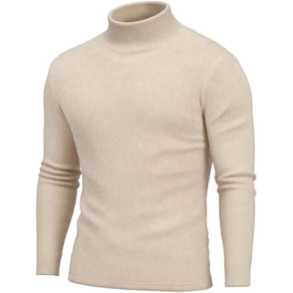COOFANDY Men's Turtleneck Sweater Long Sleeve Casual Ribbed Knitted High Neck Pullover Sweaters(Light Brown)