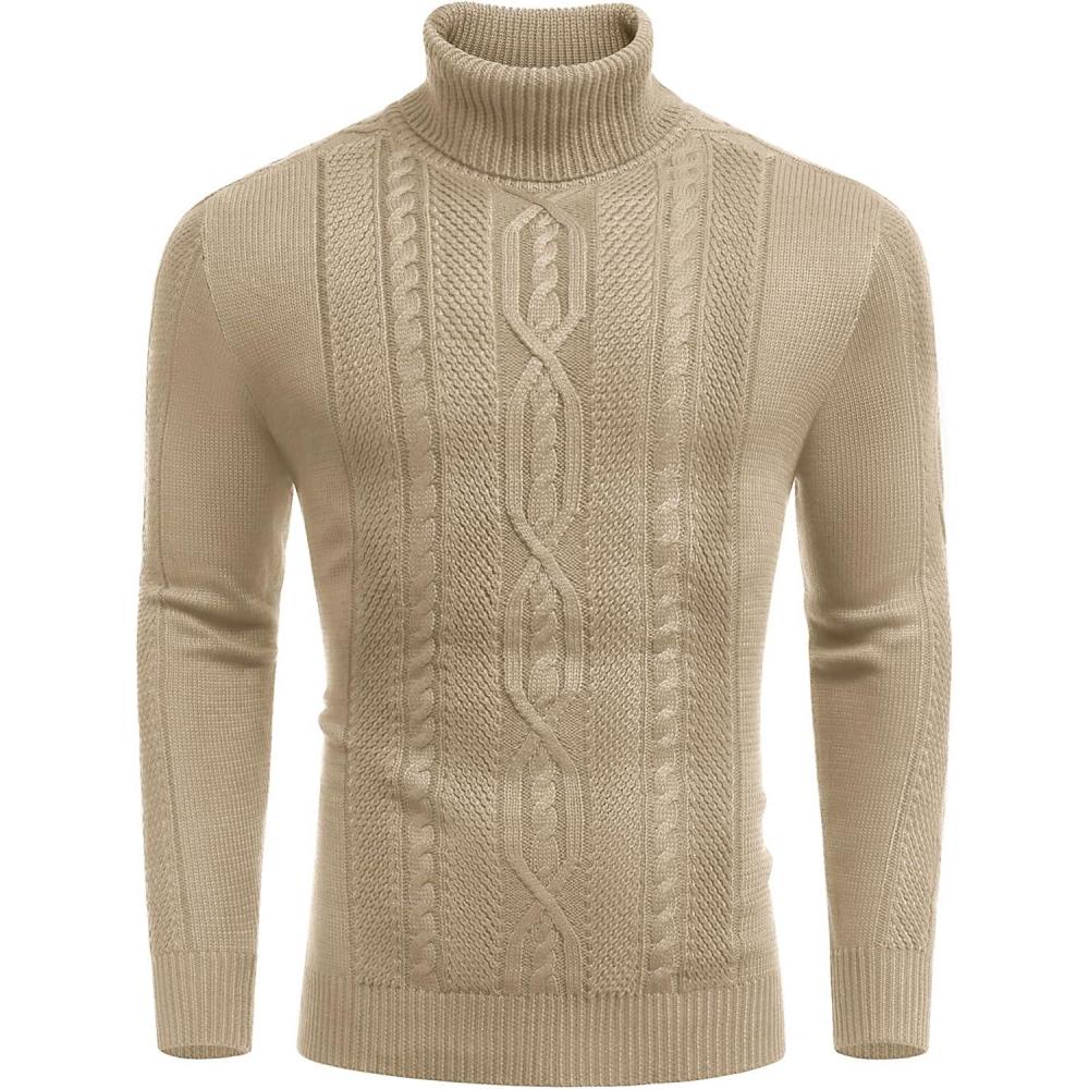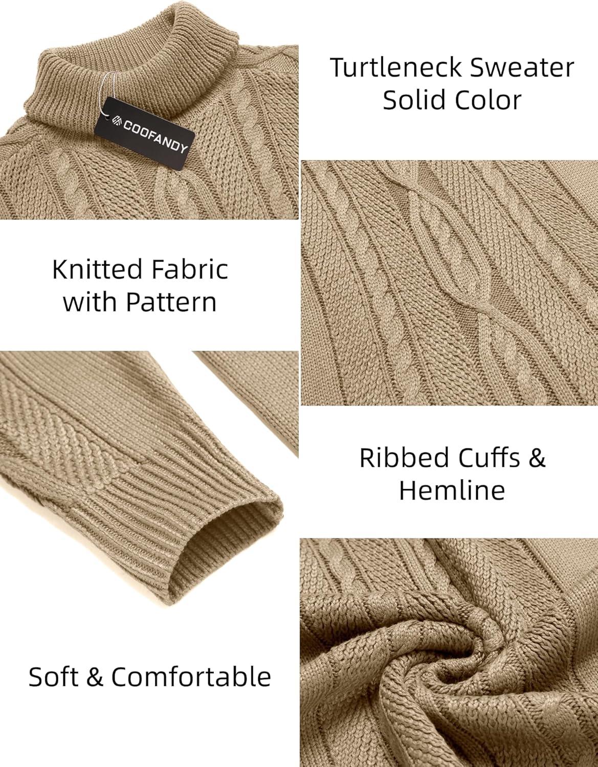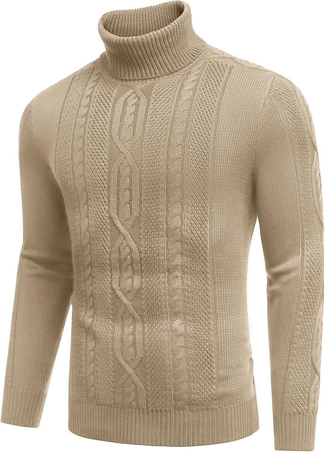 COOFANDY Men's Turtleneck Sweater Slim Fit Casual Warm Twisted Knitted Pullover Sweaters(01_khaki)