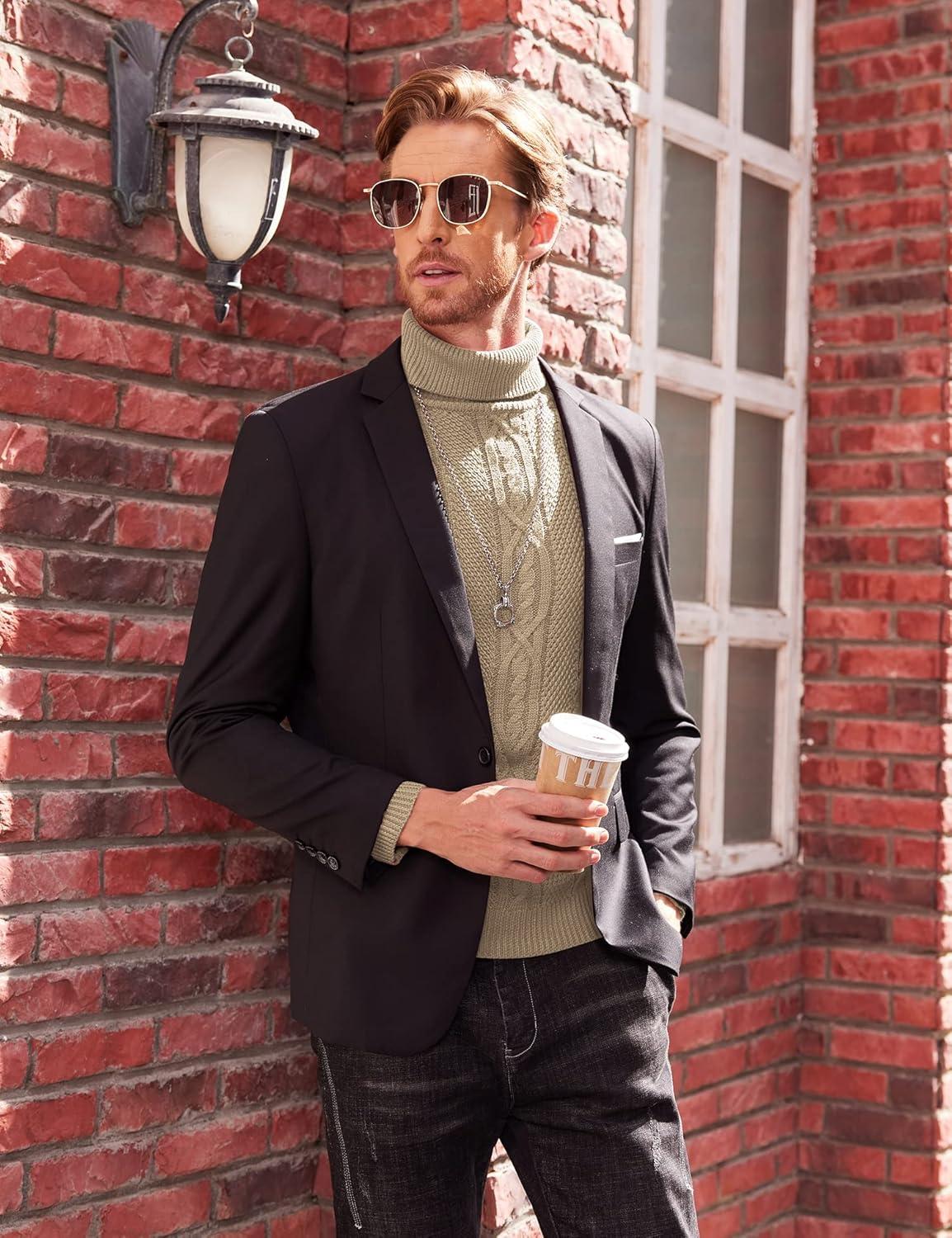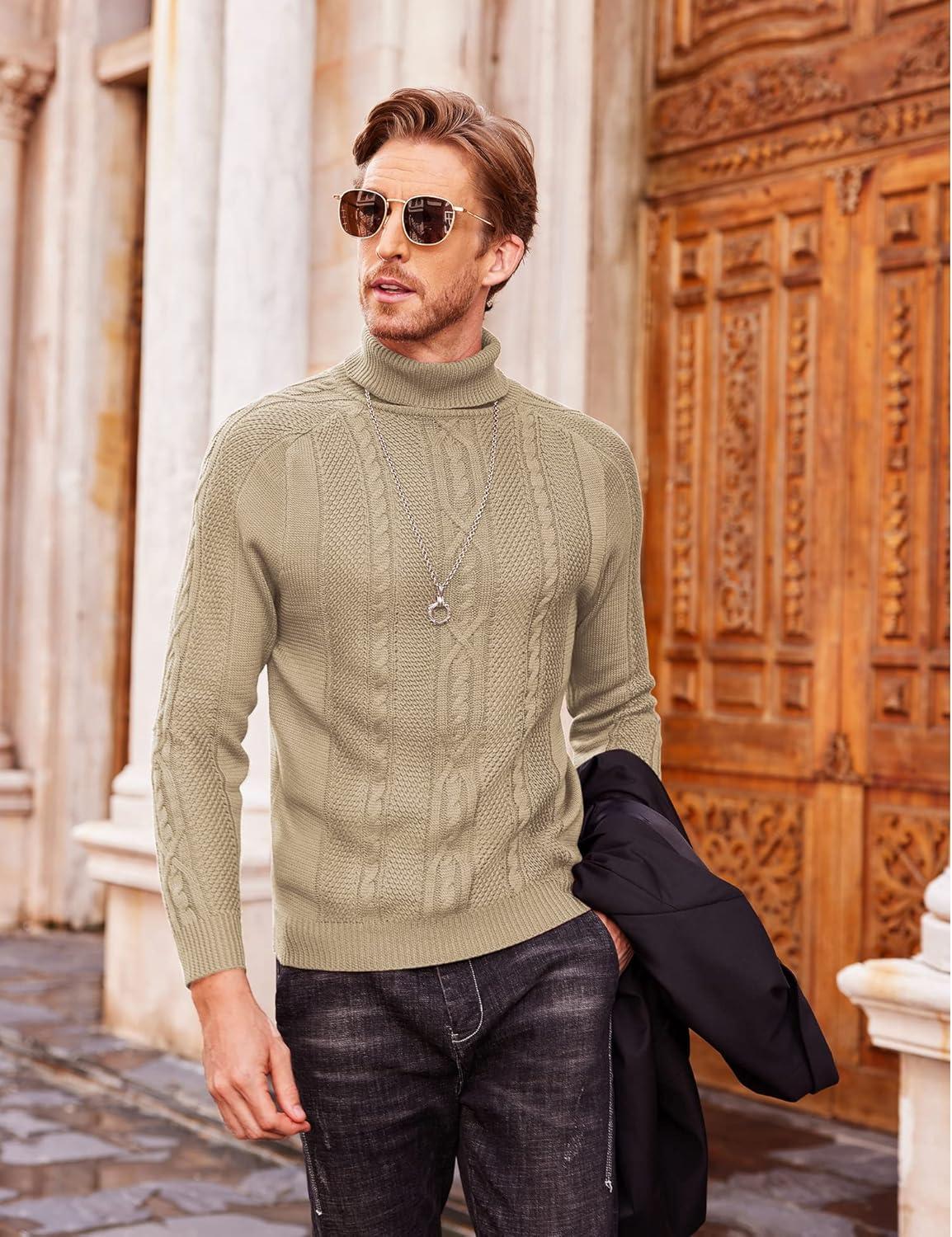 COOFANDY Men’s Turtleneck Sweater Slim Fit Casual Warm Twisted Knitted Pullover Sweaters(01_khaki)