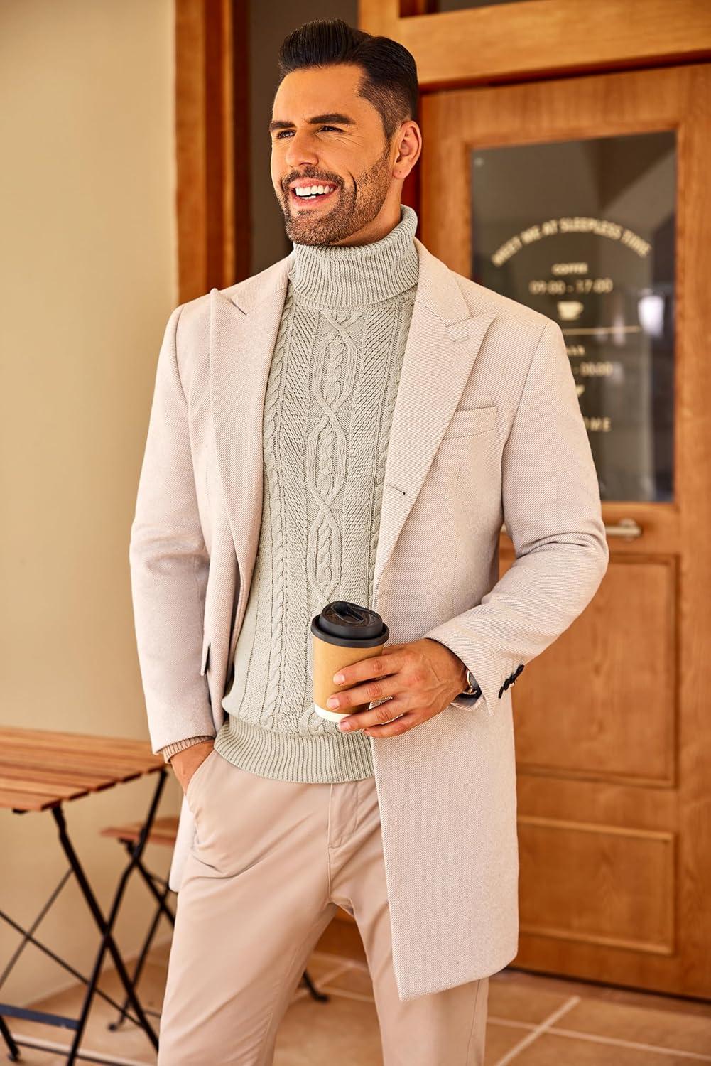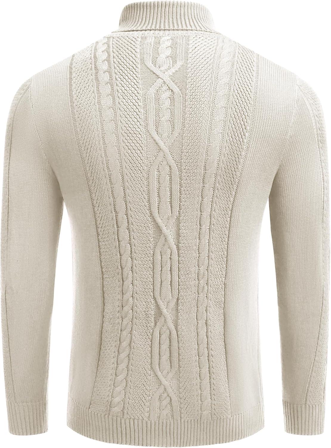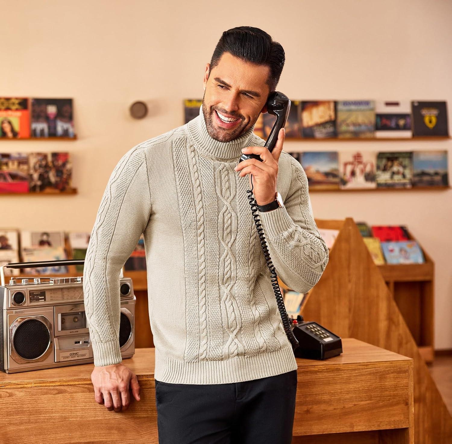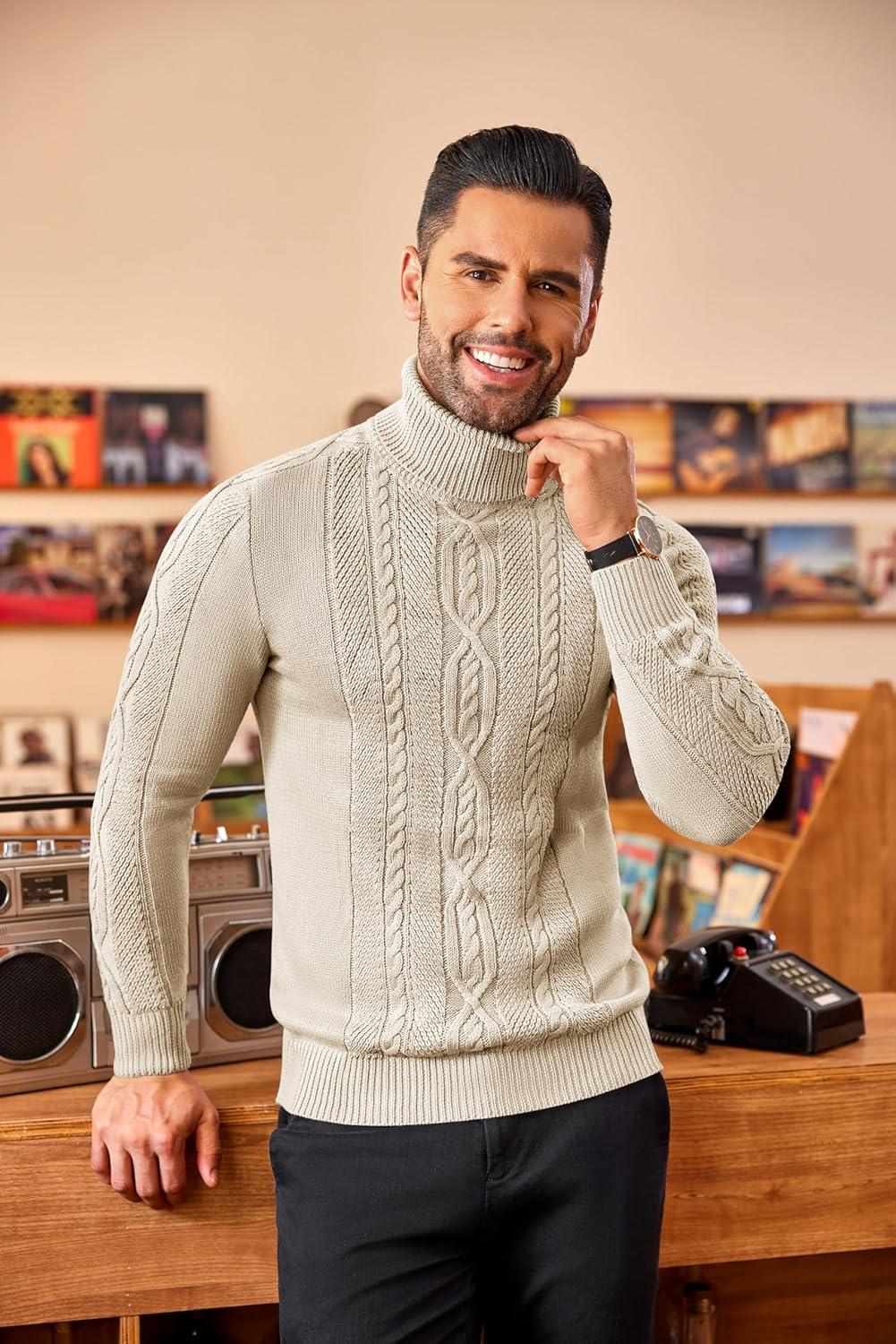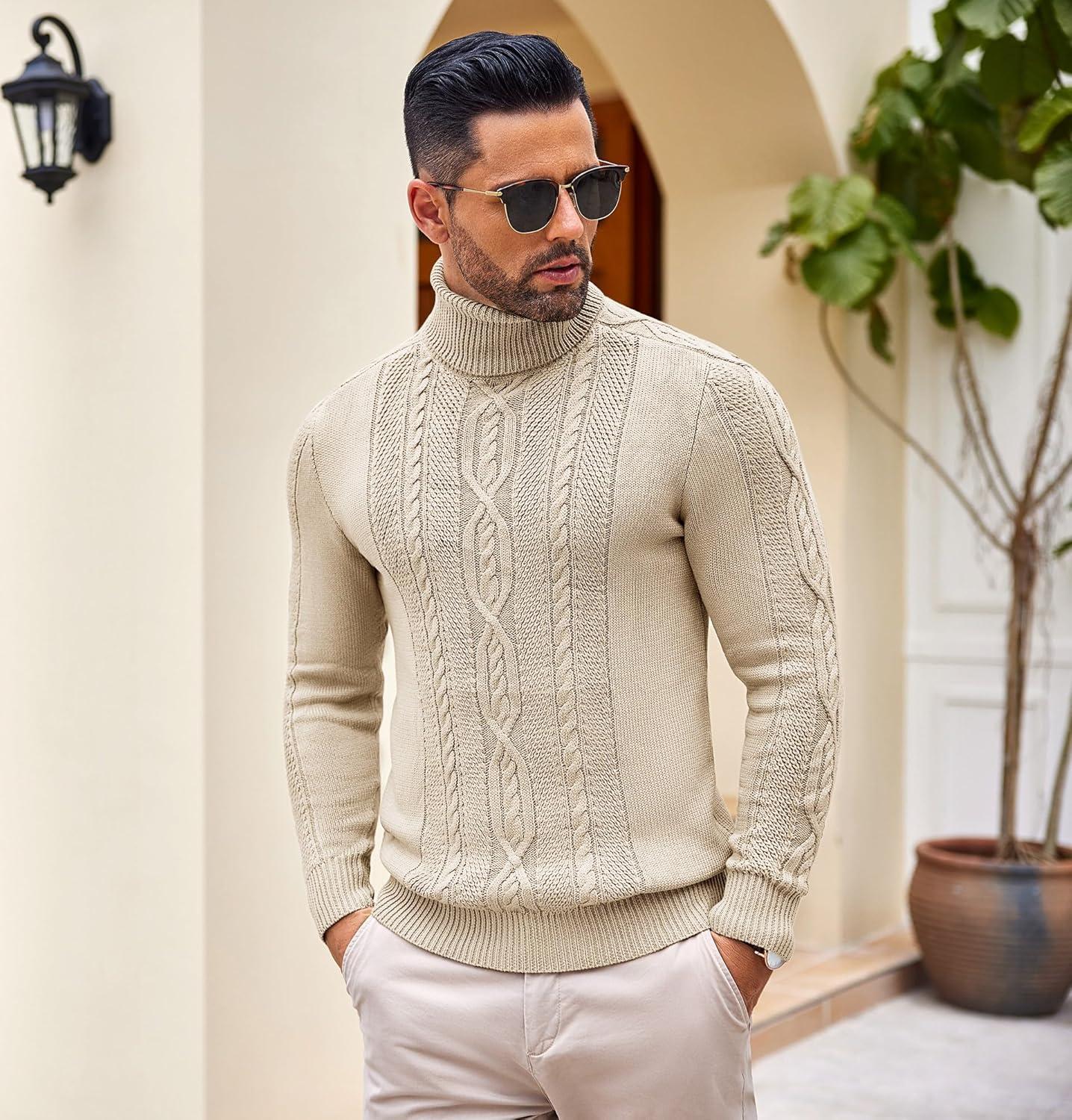COOFANDY Men's Turtleneck Sweater Slim Fit Casual Warm Twisted Knitted Pullover Sweaters(Beige)