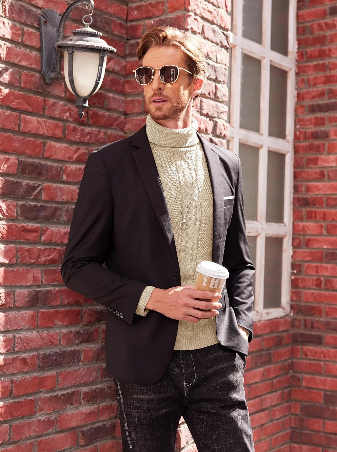 COOFANDY Men’s Turtleneck Sweater Slim Fit Casual Warm Twisted Knitted Pullover Sweaters(Black)
