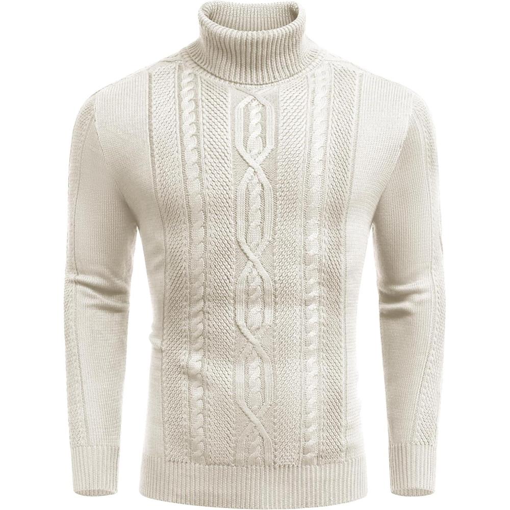 COOFANDY Men’s Turtleneck Sweater Slim Fit Casual Warm Twisted Knitted Pullover Sweaters(Beige)
