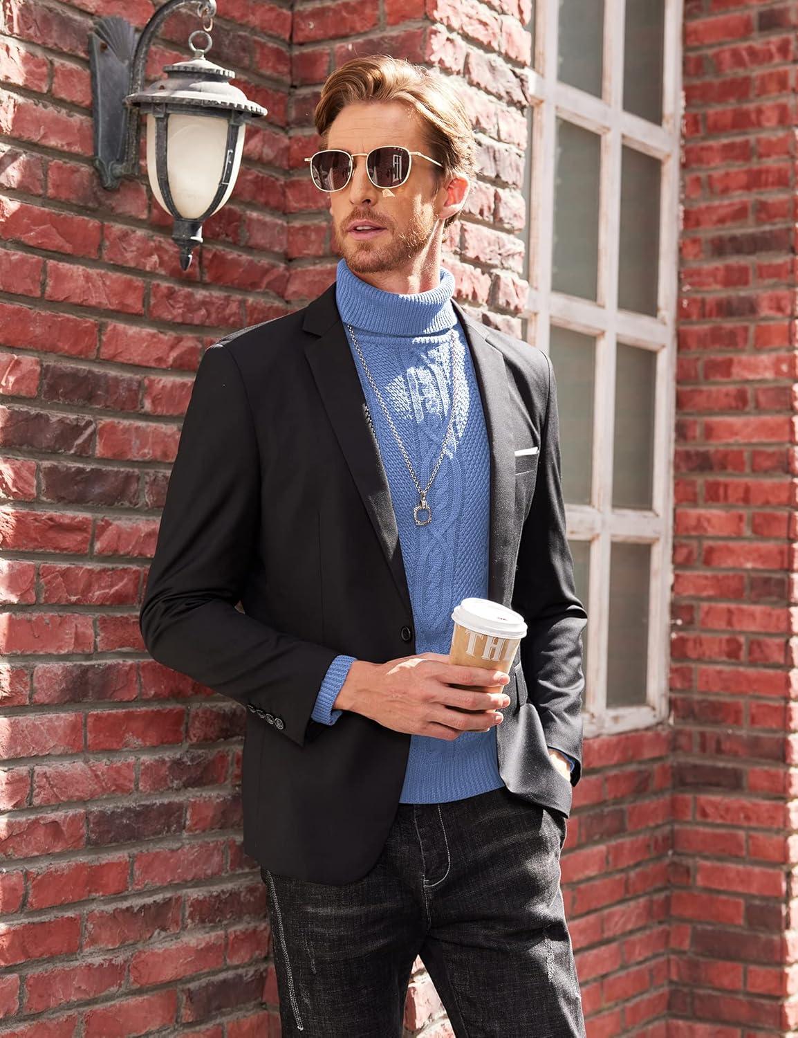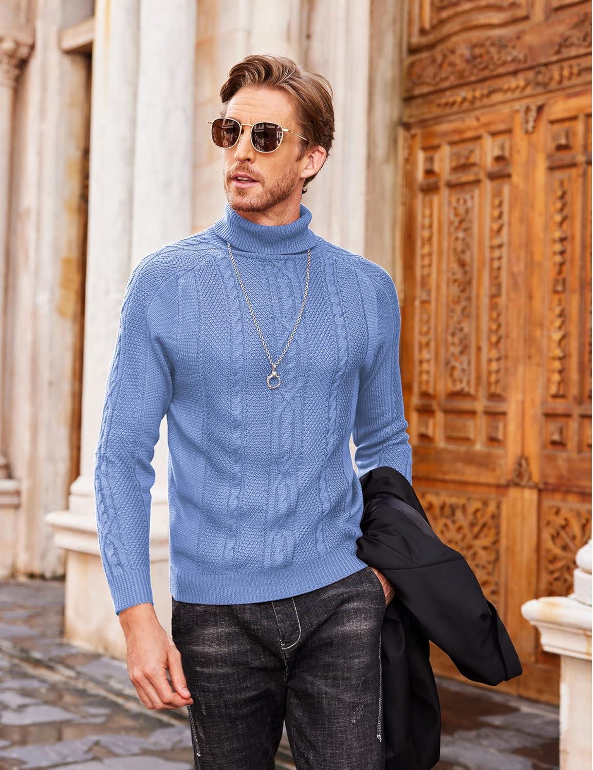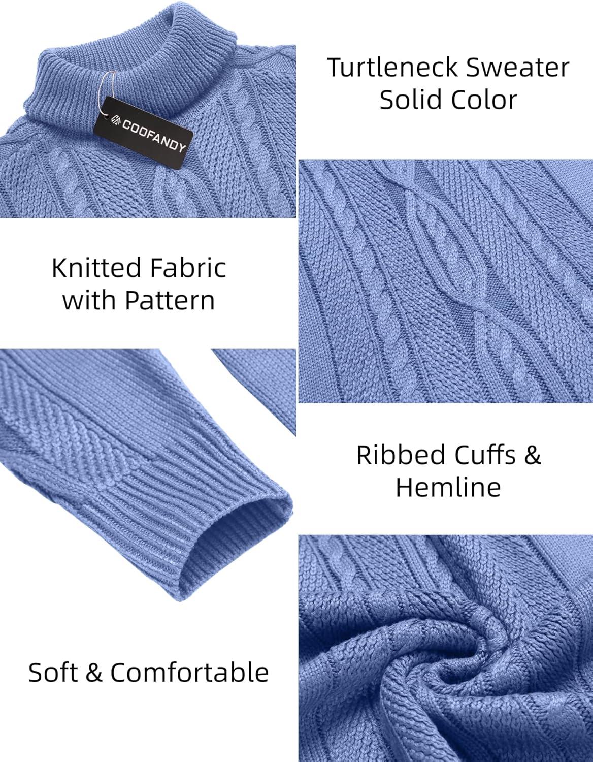 Save up to 40% on COOFANDY Men’s Turtleneck Sweater Slim Fit Casual Warm Twisted Knitted Pullover Sweaters(Blue) styles during our end-of-season sale.