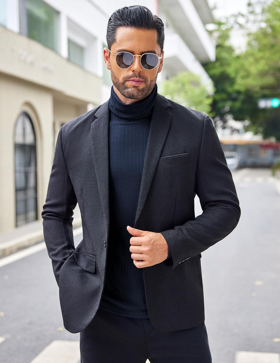 COOFANDY Men’s Turtleneck Sweater Slim Fit Lightweight Basic Ribbed Sweaters(01-black)