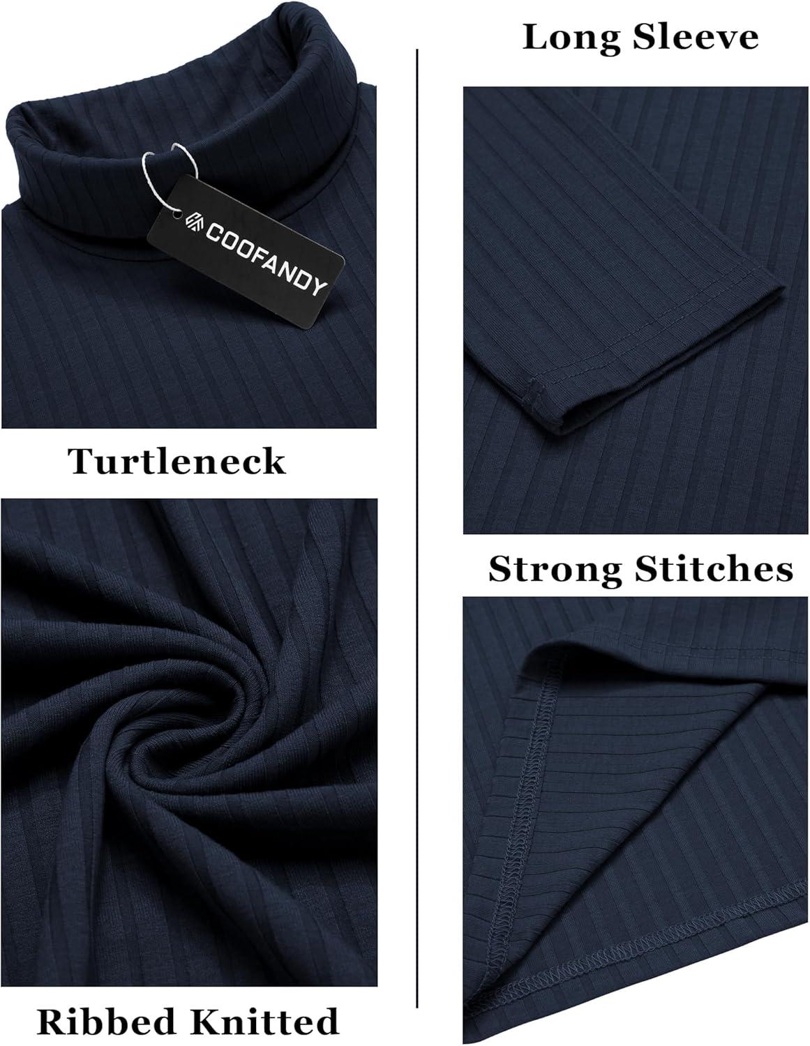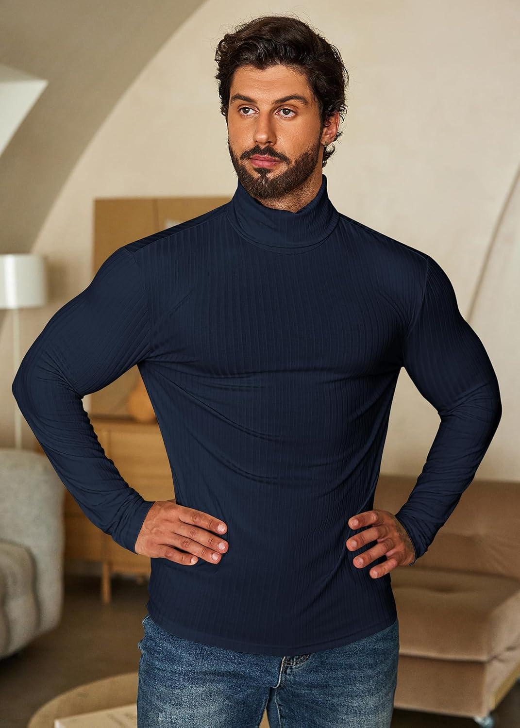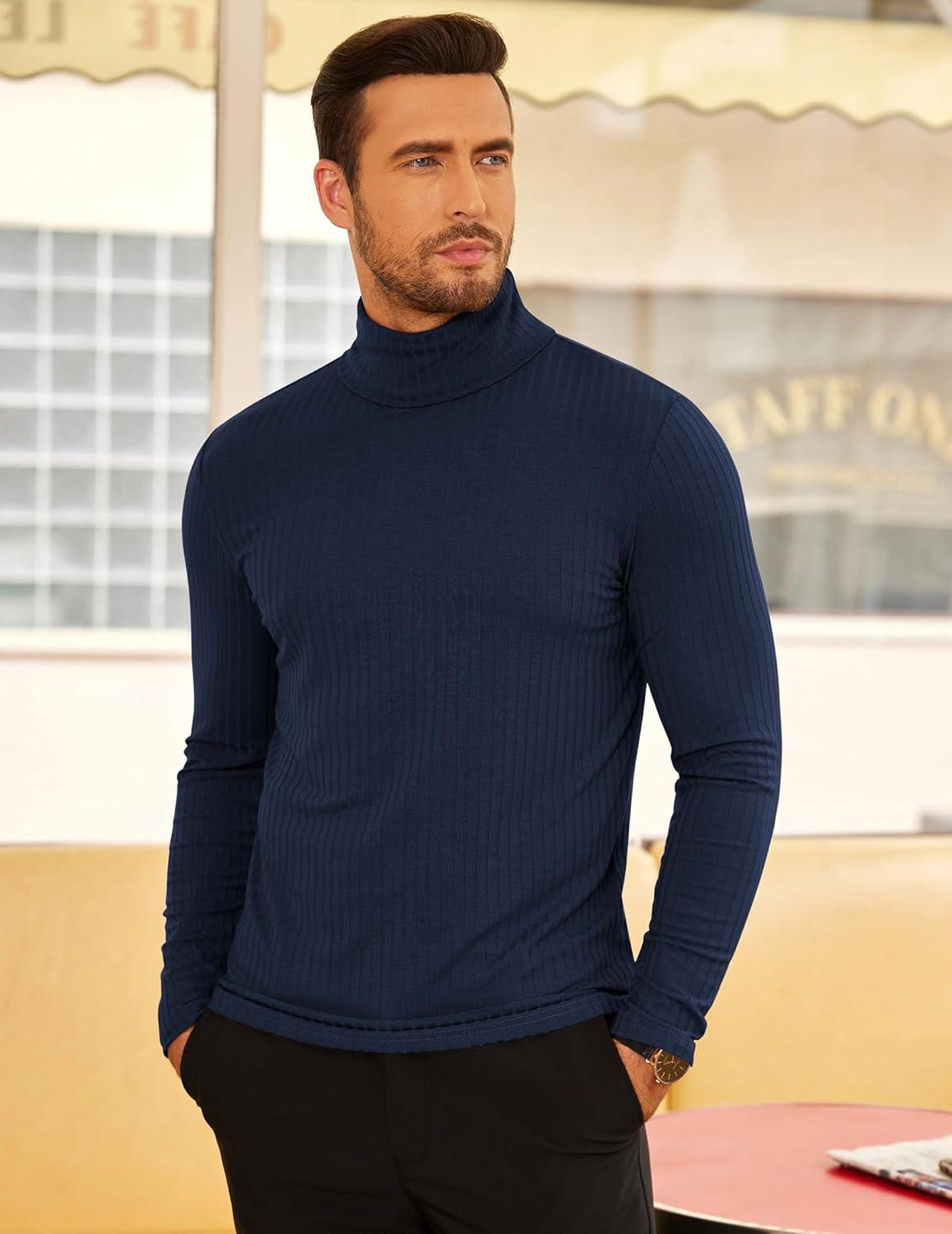 COOFANDY Men’s Turtleneck Sweater Slim Fit Lightweight Basic Ribbed Sweaters(Dark Blue)