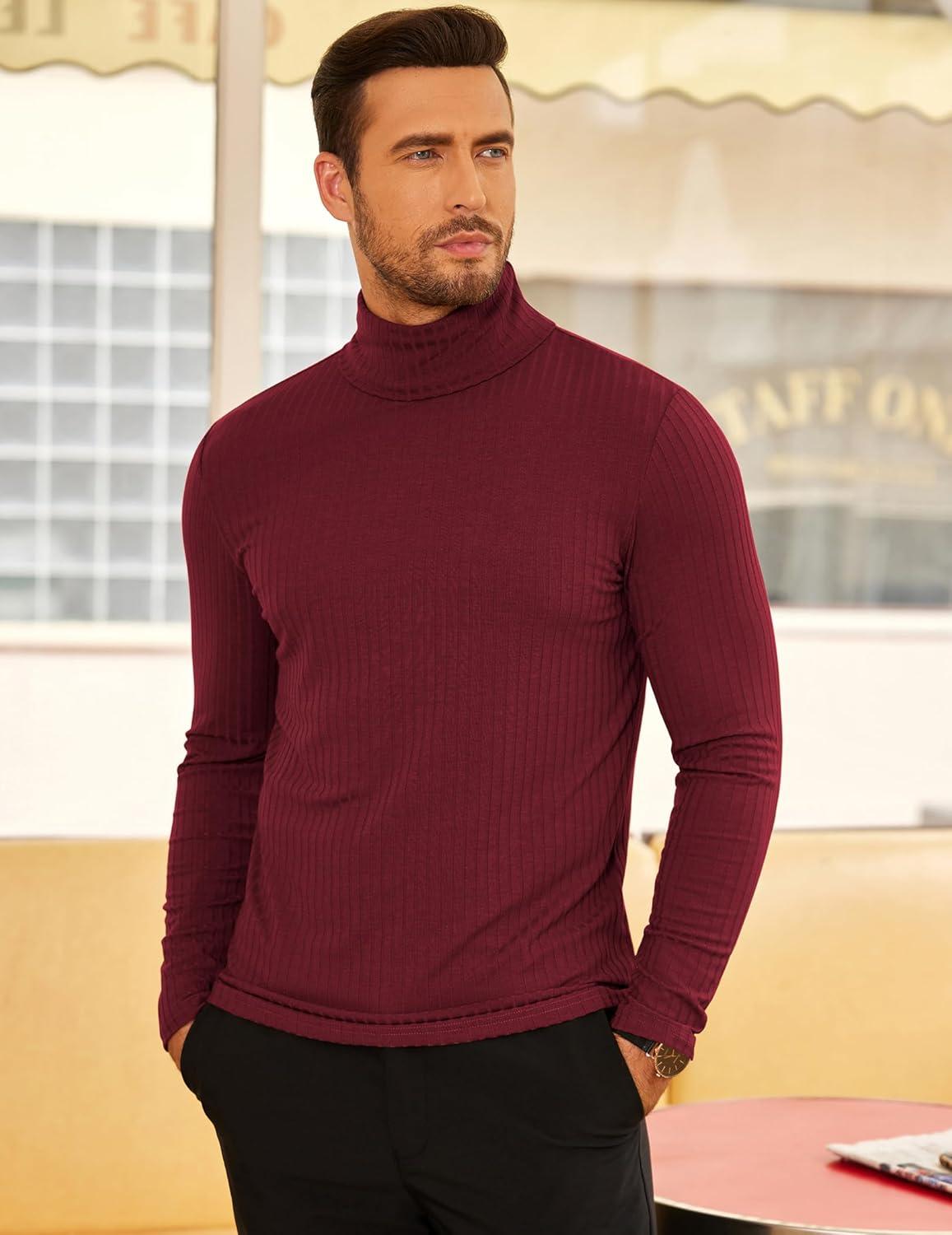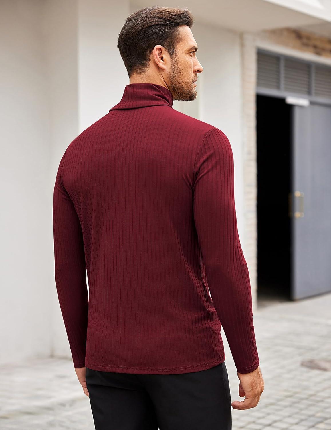 COOFANDY Men’s Turtleneck Sweater Slim Fit Lightweight Basic Ribbed Sweaters(Wine Red)