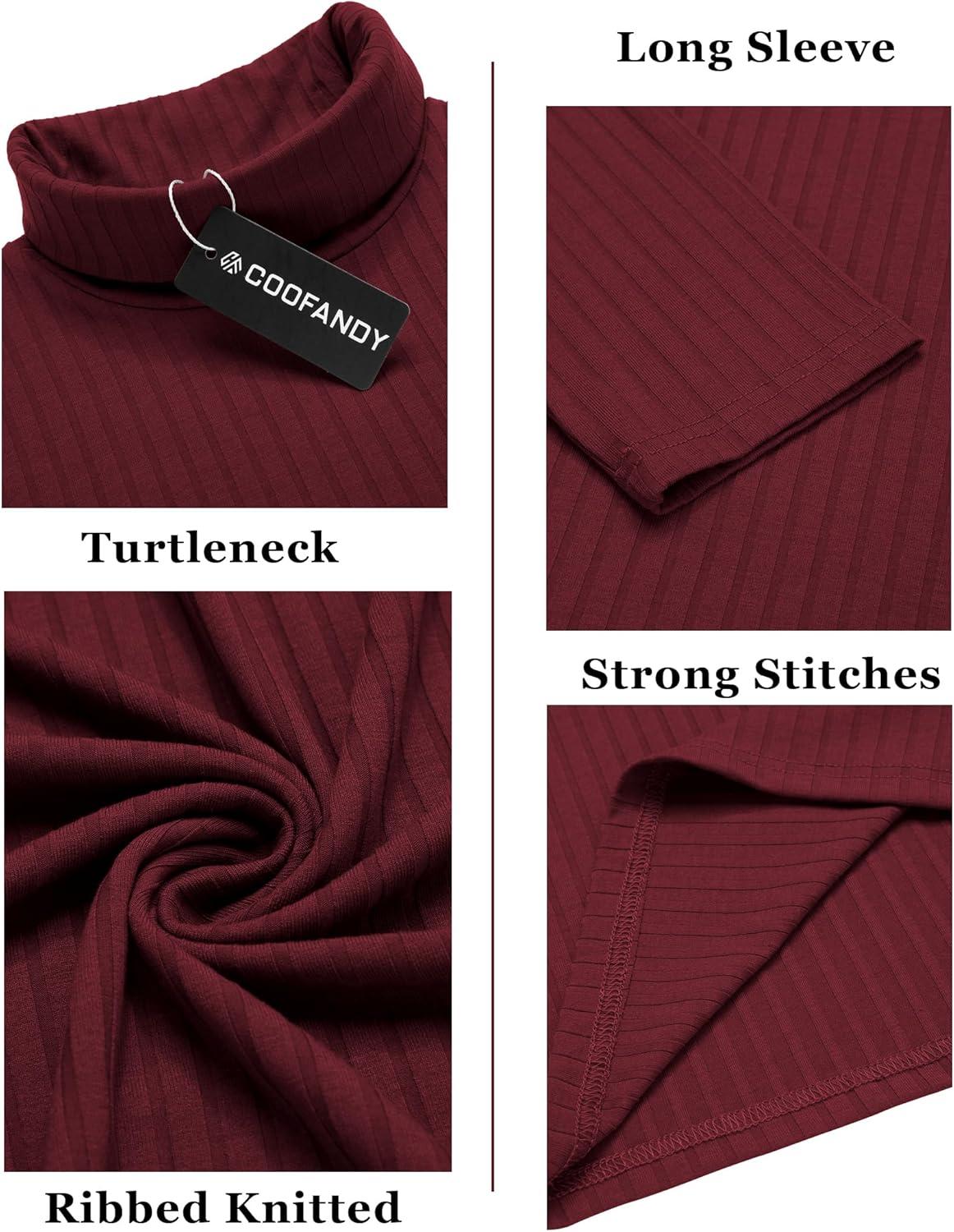COOFANDY Men's Turtleneck Sweater Slim Fit Lightweight Basic Ribbed Sweaters(Wine Red)