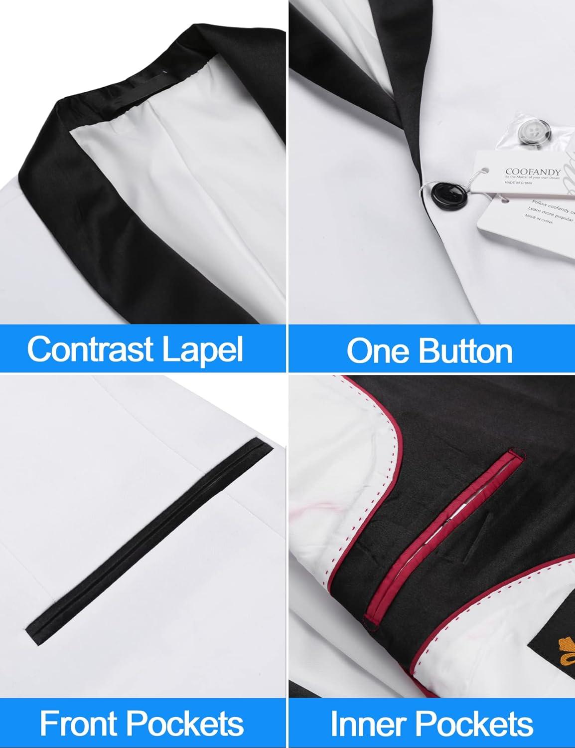 COOFANDY Men's Tuxedo Jacket One Button Dress Suit Blazer Jacket for Wedding Dinner Prom Party(01_white)