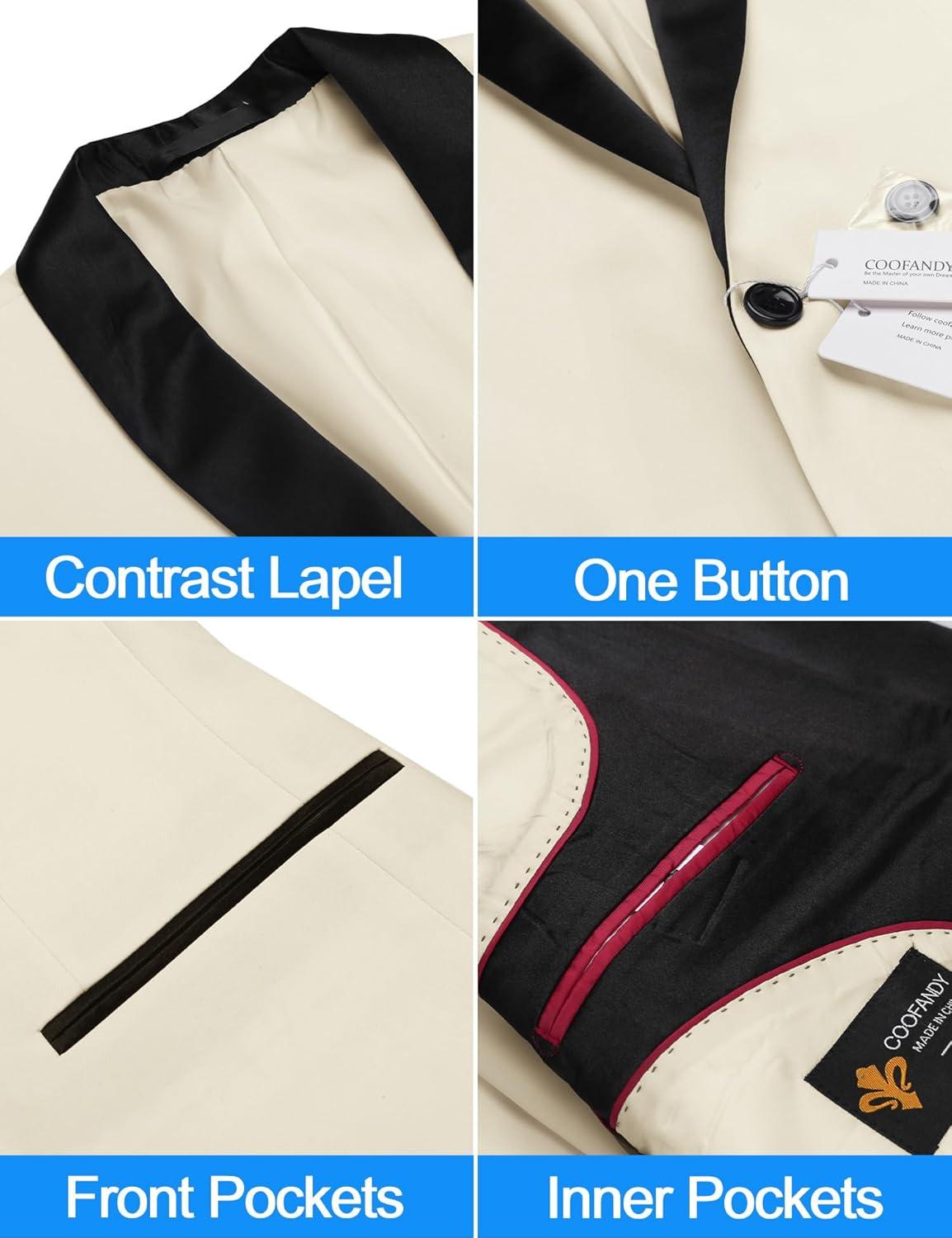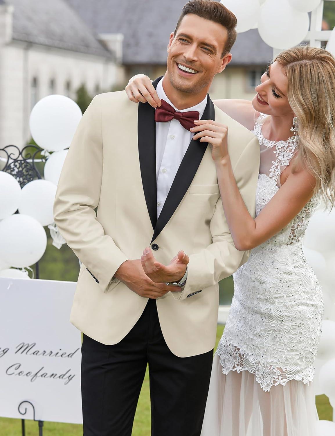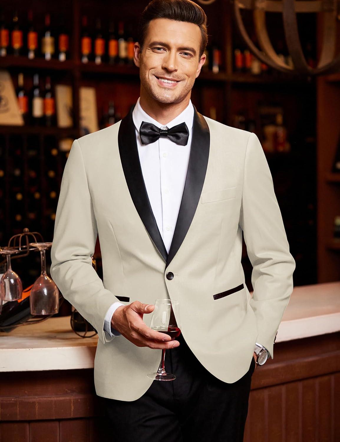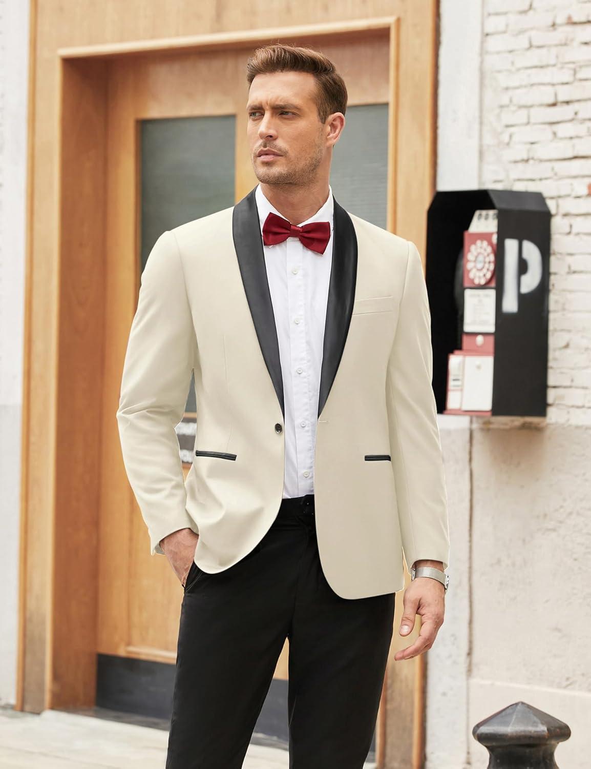 COOFANDY Men’s Tuxedo Jacket One Button Dress Suit Blazer Jacket for Wedding Dinner Prom Party(01_white)