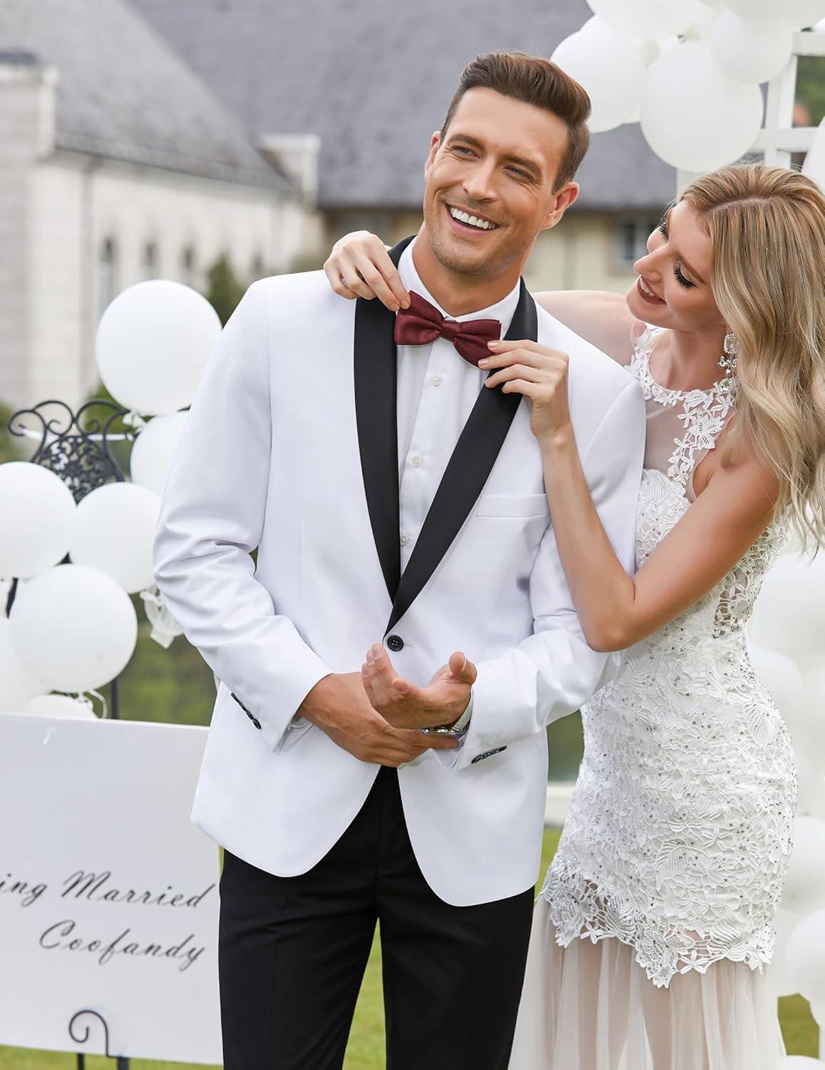 COOFANDY Men’s Tuxedo Jacket One Button Dress Suit Blazer Jacket for Wedding Dinner Prom Party(White(jacquard))