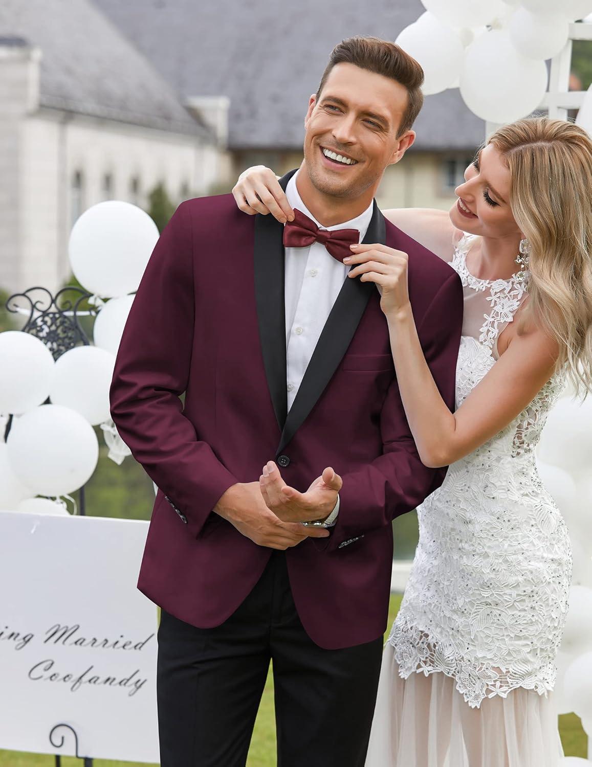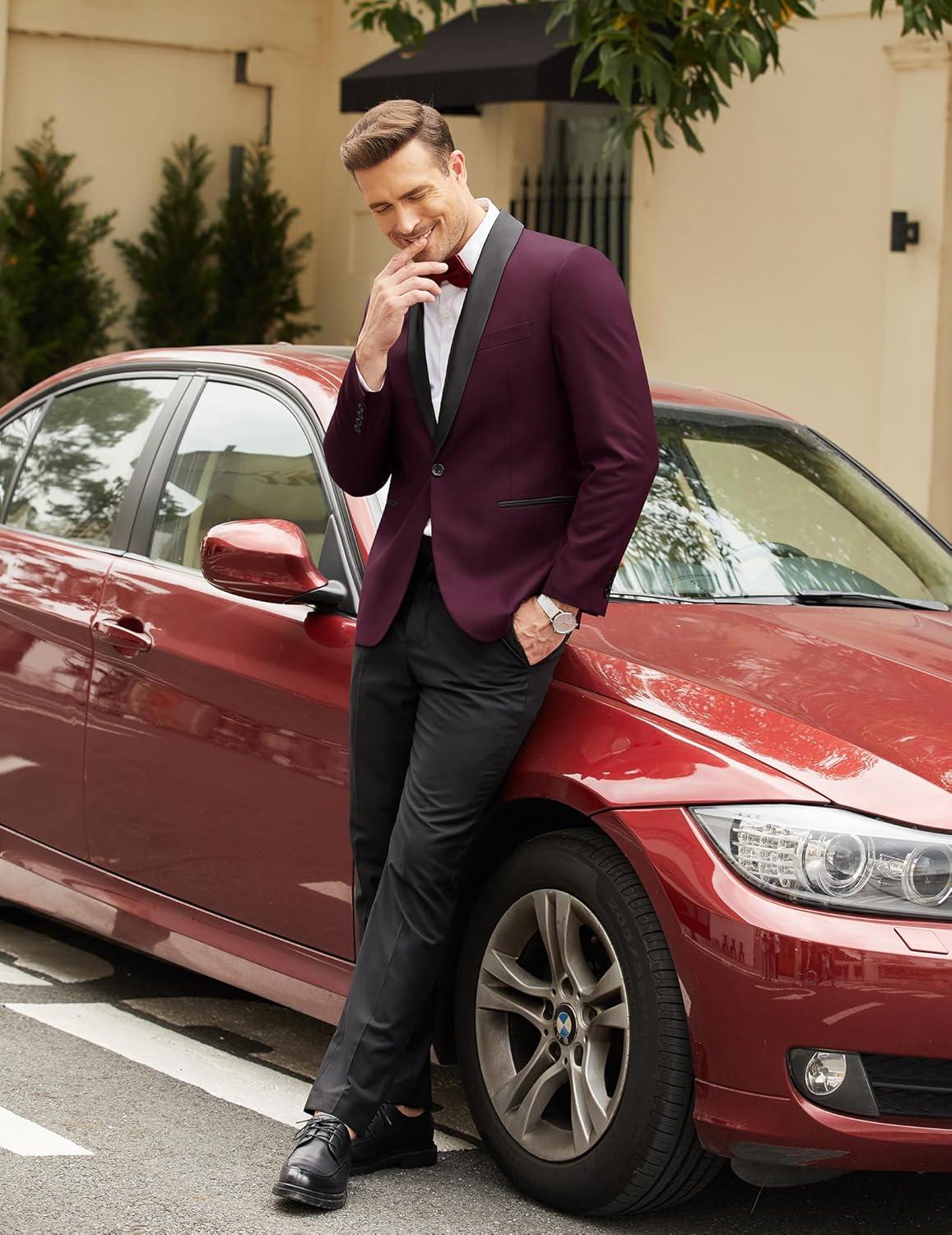 COOFANDY Men’s Tuxedo Jacket One Button Dress Suit Blazer Jacket for Wedding Dinner Prom Party(Wine Red)