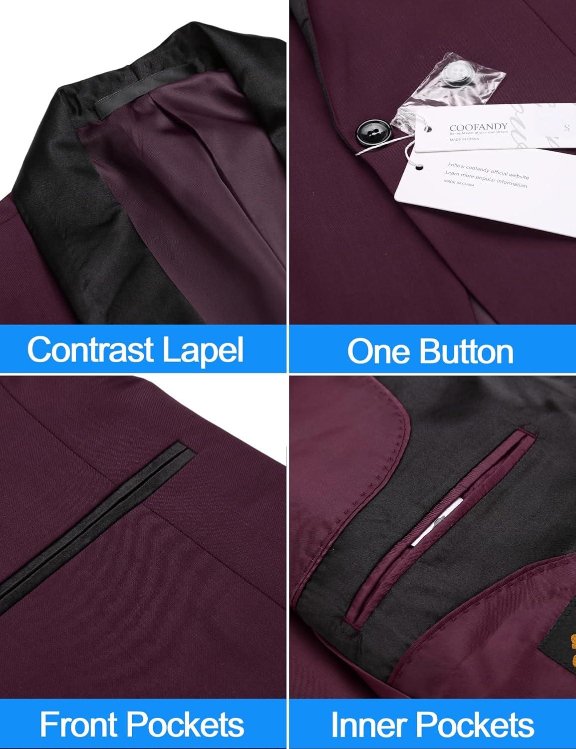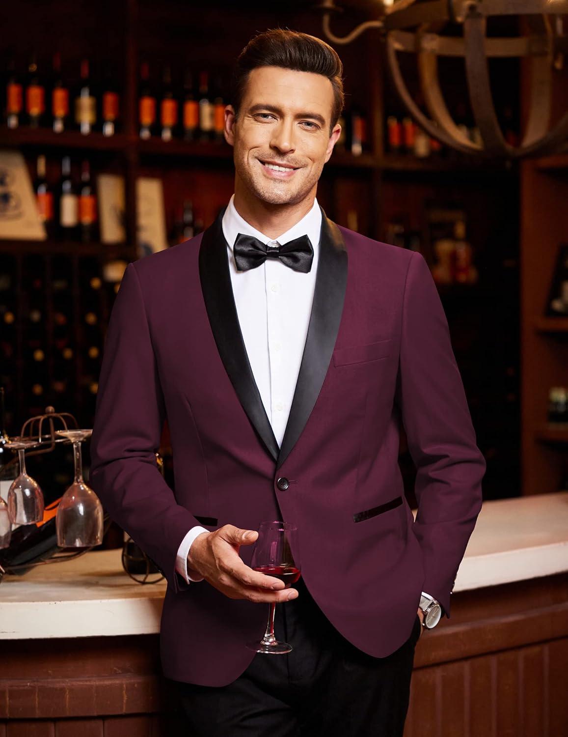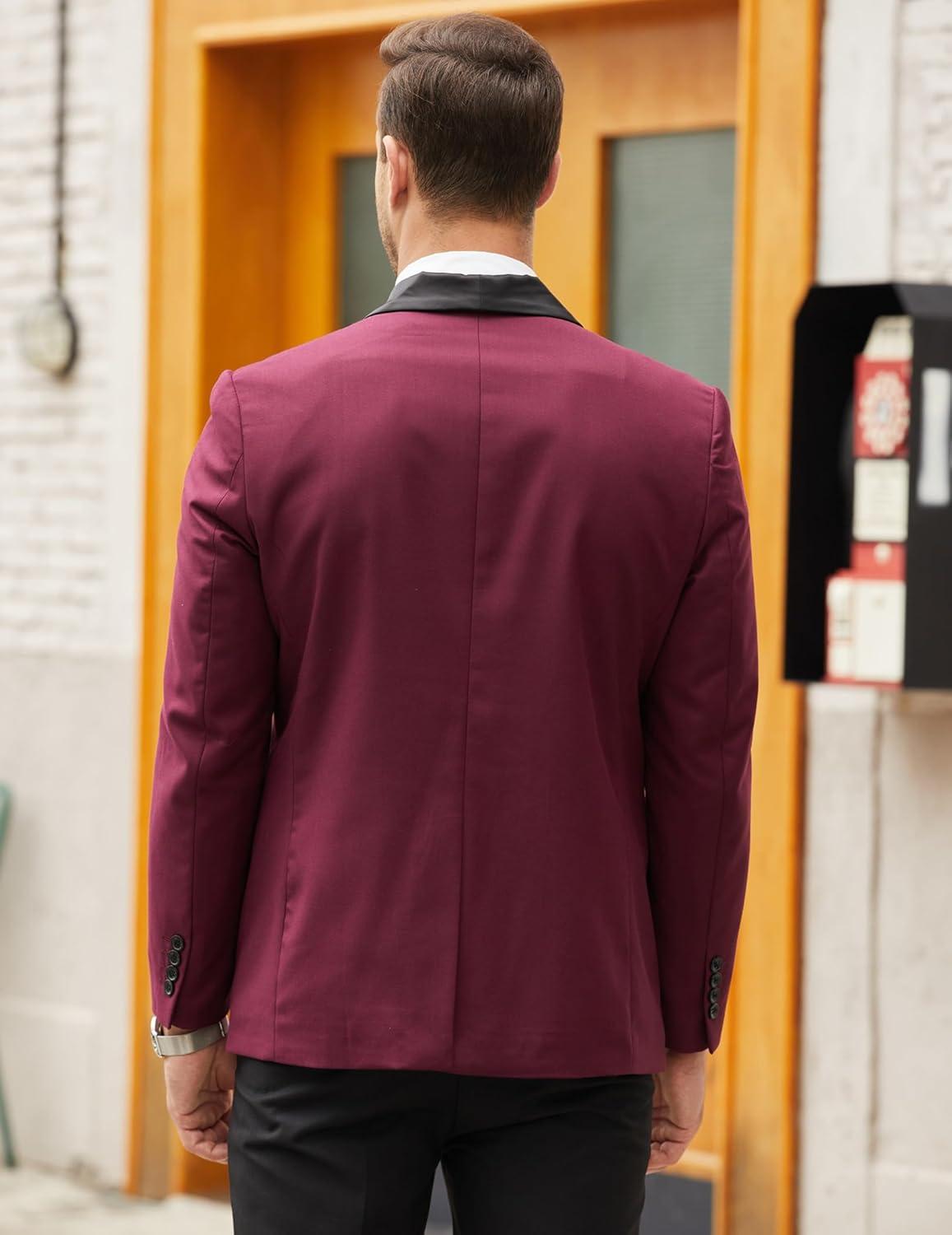 COOFANDY Men's Tuxedo Jacket One Button Dress Suit Blazer Jacket for Wedding Dinner Prom Party(Wine Red)