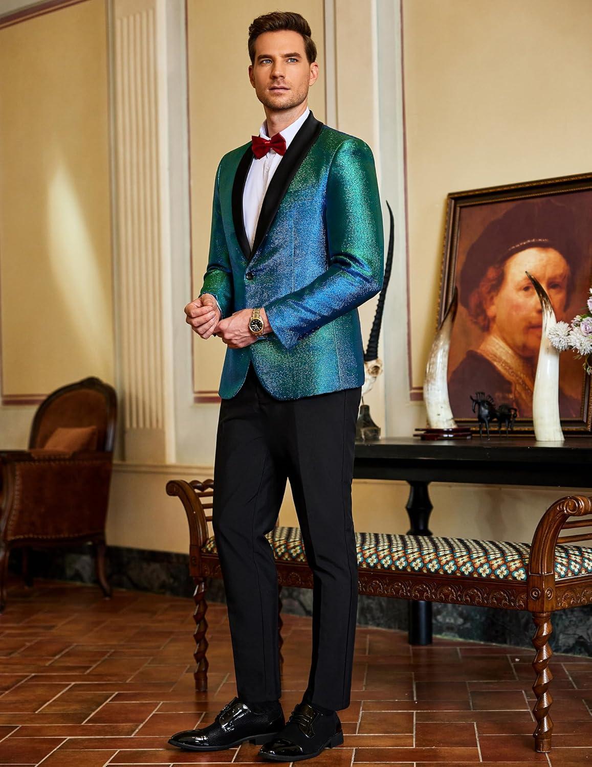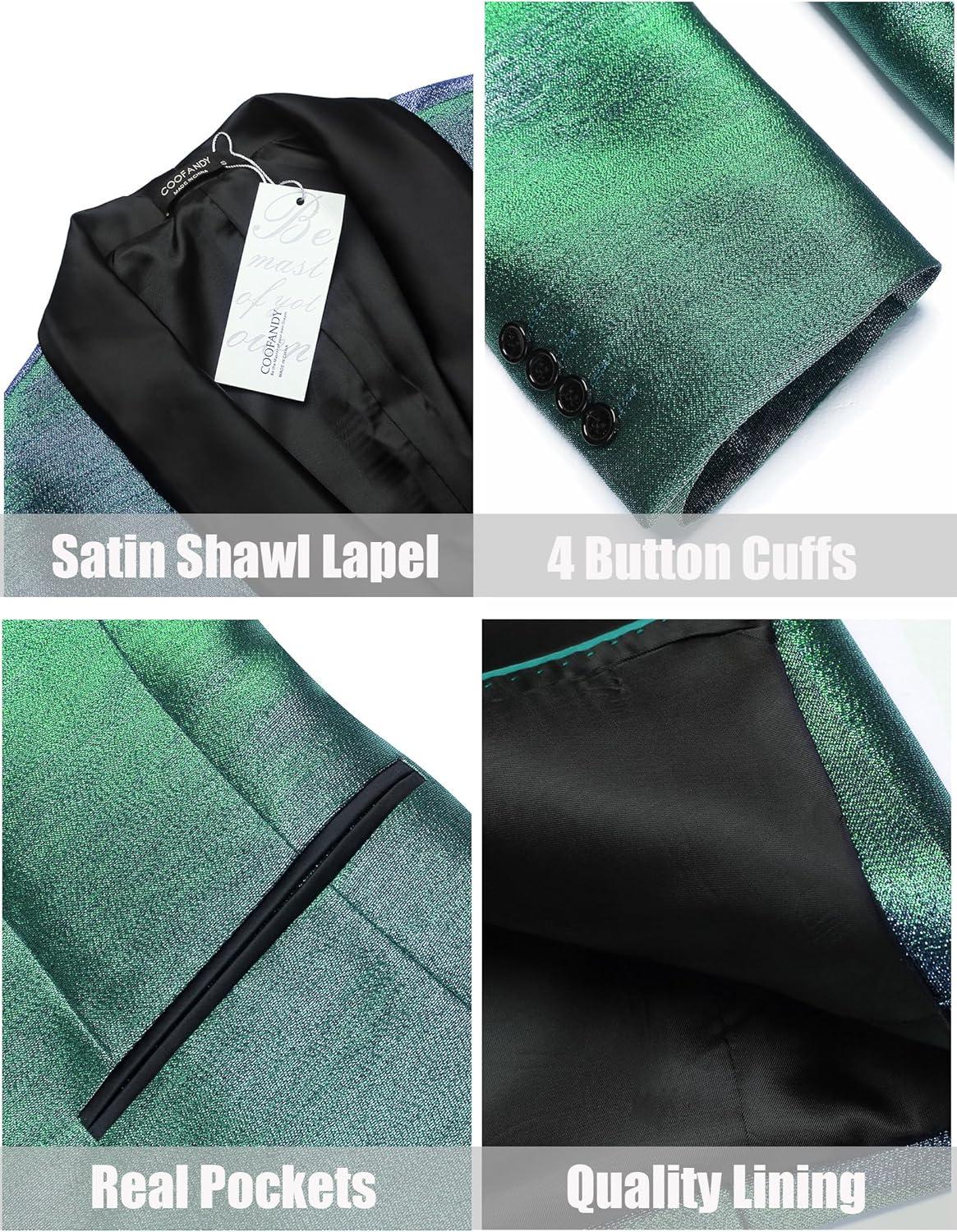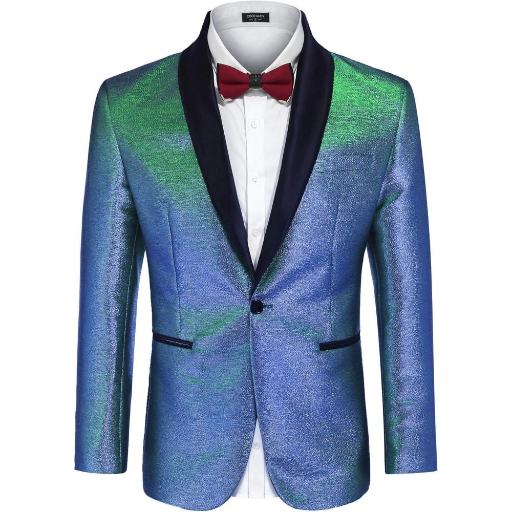 COOFANDY Men's Tuxedo Jacket Slim Fit Shawl Lapel Blazer One Button Suit Jackets for Party Prom Wedding Dinner(Shiny Blue)