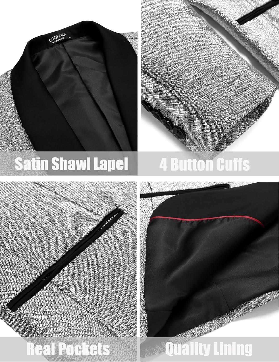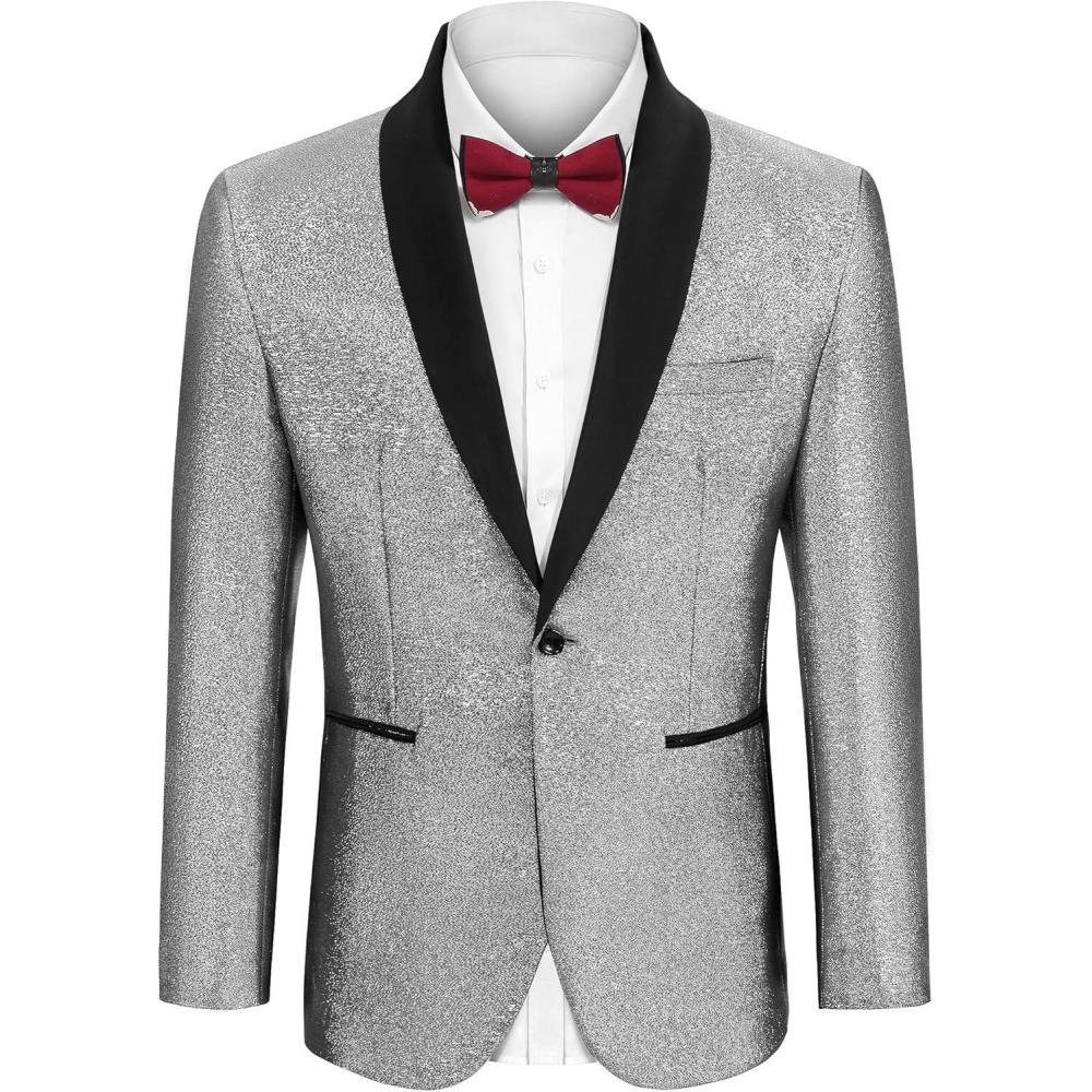 COOFANDY Men’s Tuxedo Jacket Slim Fit Shawl Lapel Blazer One Button Suit Jackets for Party Prom Wedding Dinner(Shiny Silver)