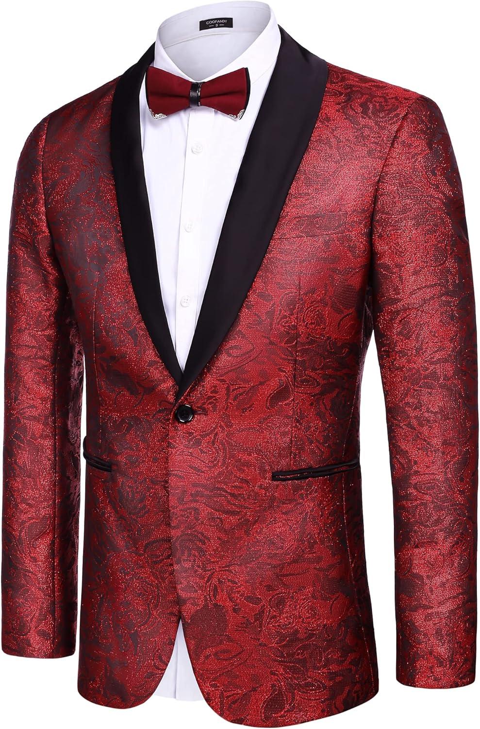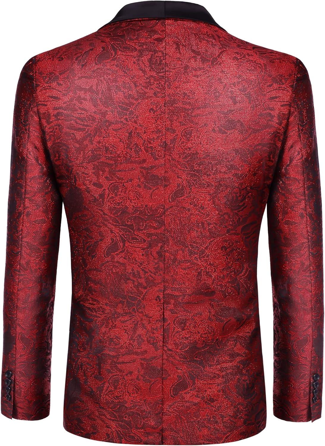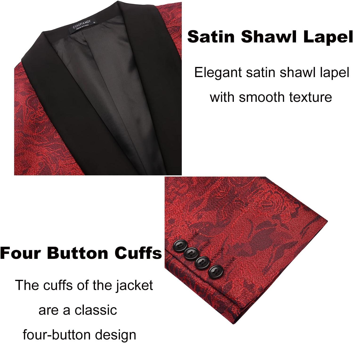 COOFANDY Men's Tuxedo Jacket Slim Fit Shawl Lapel Blazer One Button Suit Jackets for Party Prom Wedding Dinner(Wine Red)