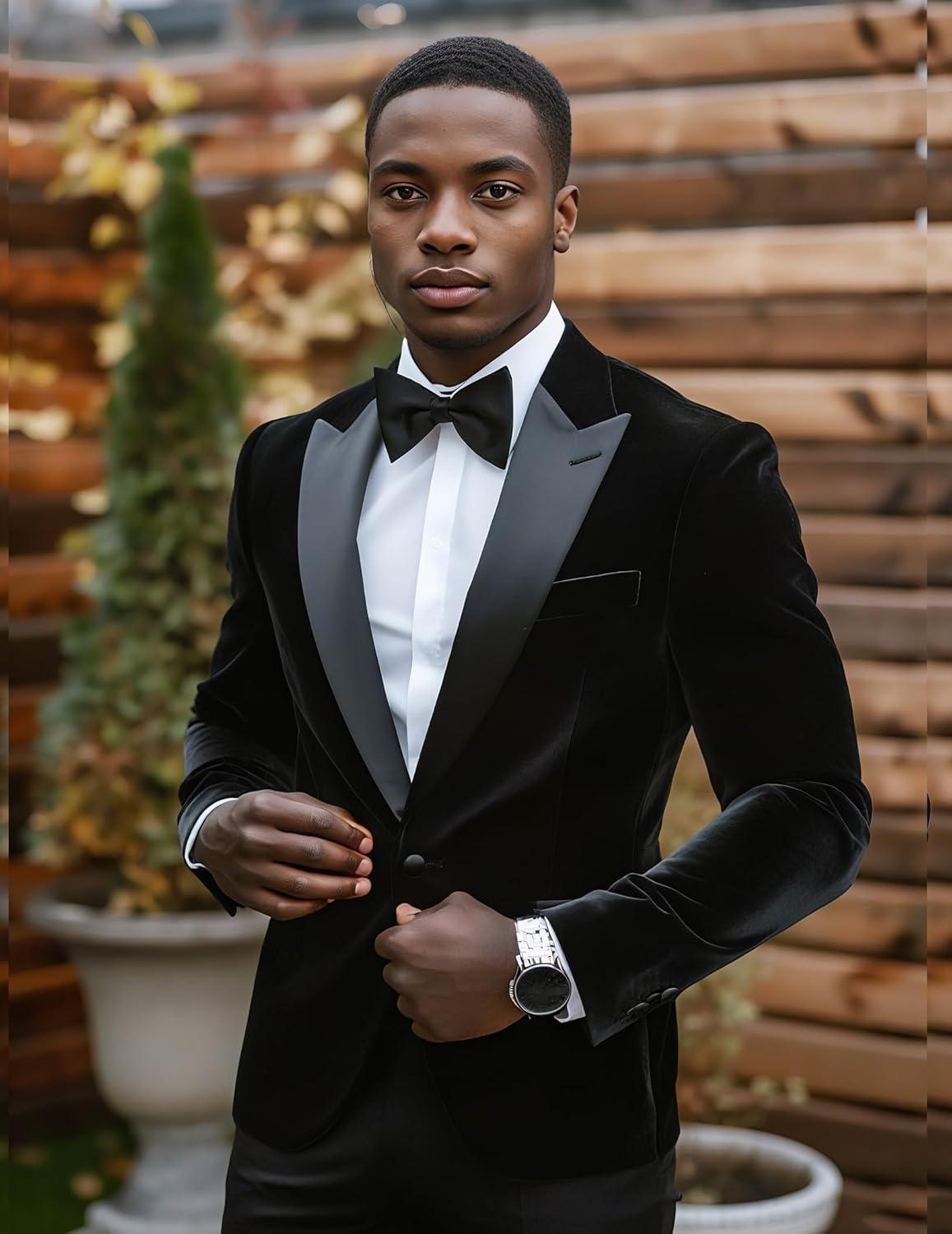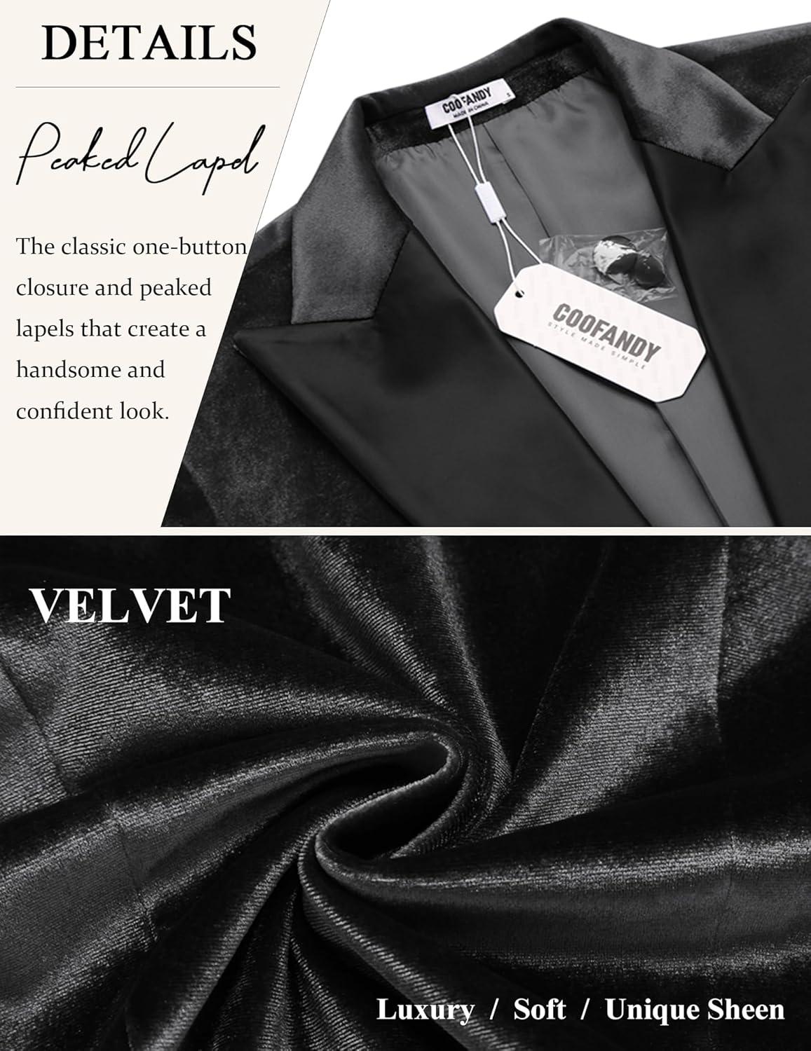 COOFANDY Mens Tuxedo Jacket Slim Fit Velvet Blazer One Button Suit Jacket for Wedding Prom Party(Black)