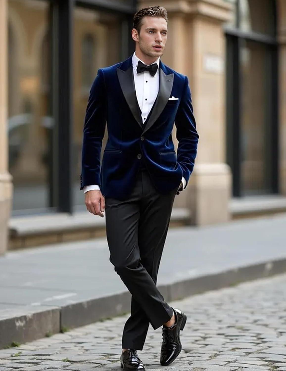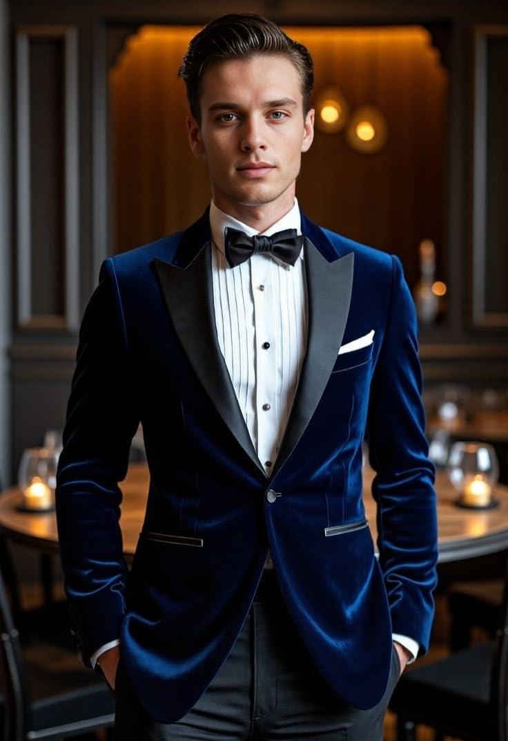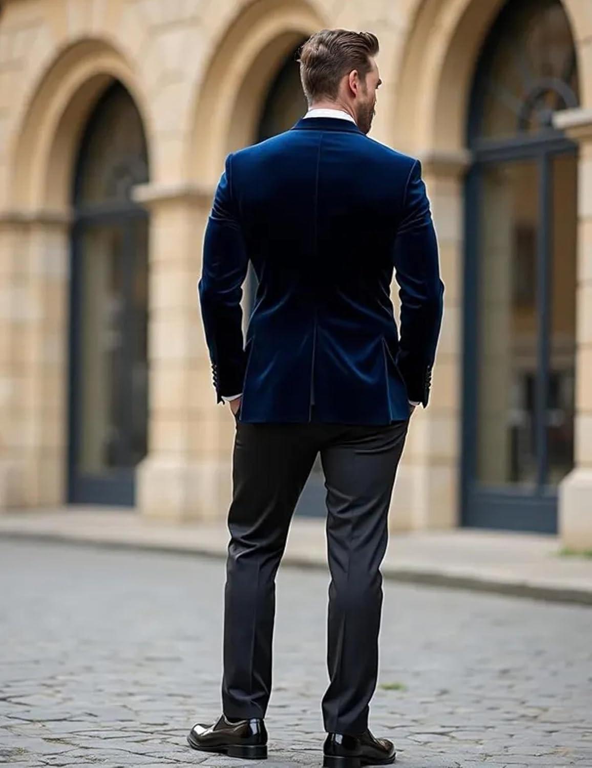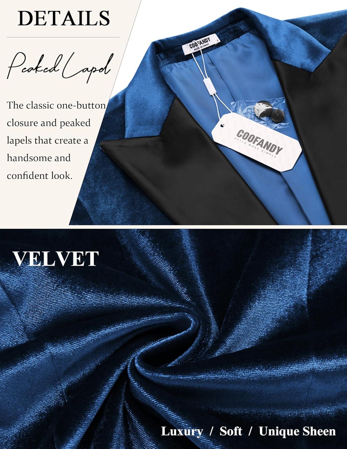 COOFANDY Mens Tuxedo Jacket Slim Fit Velvet Blazer One Button Suit Jacket for Wedding Prom Party(Navy Blue)