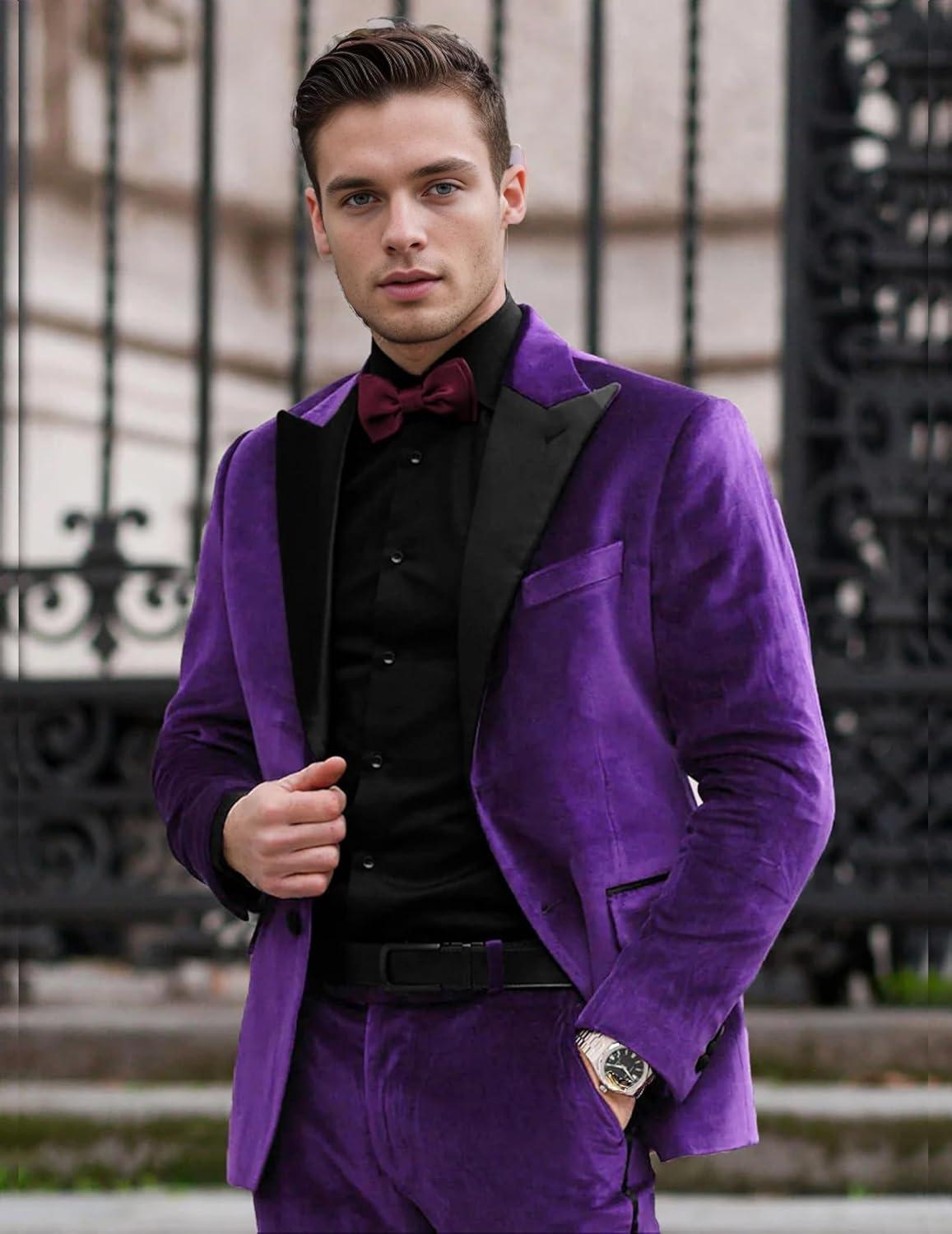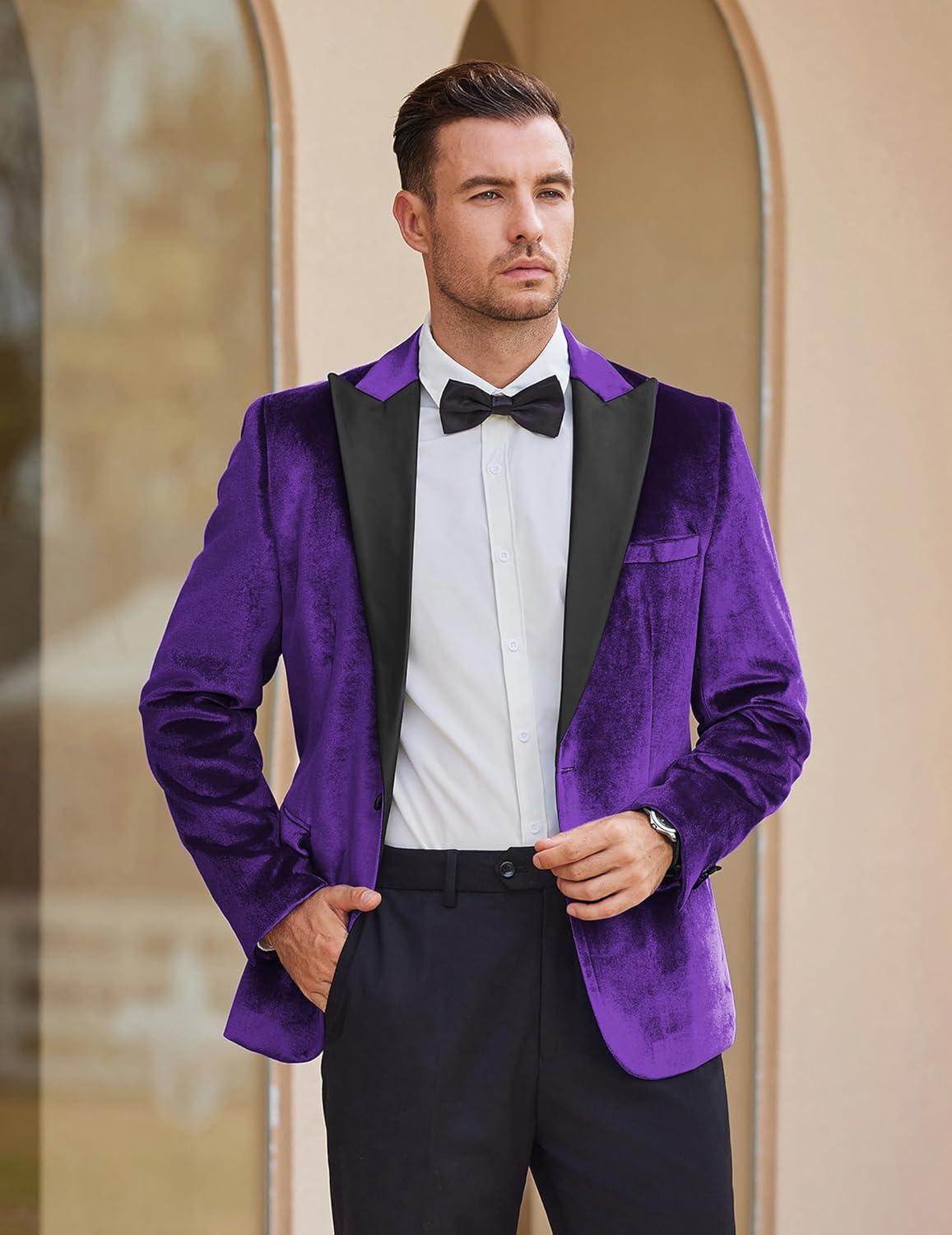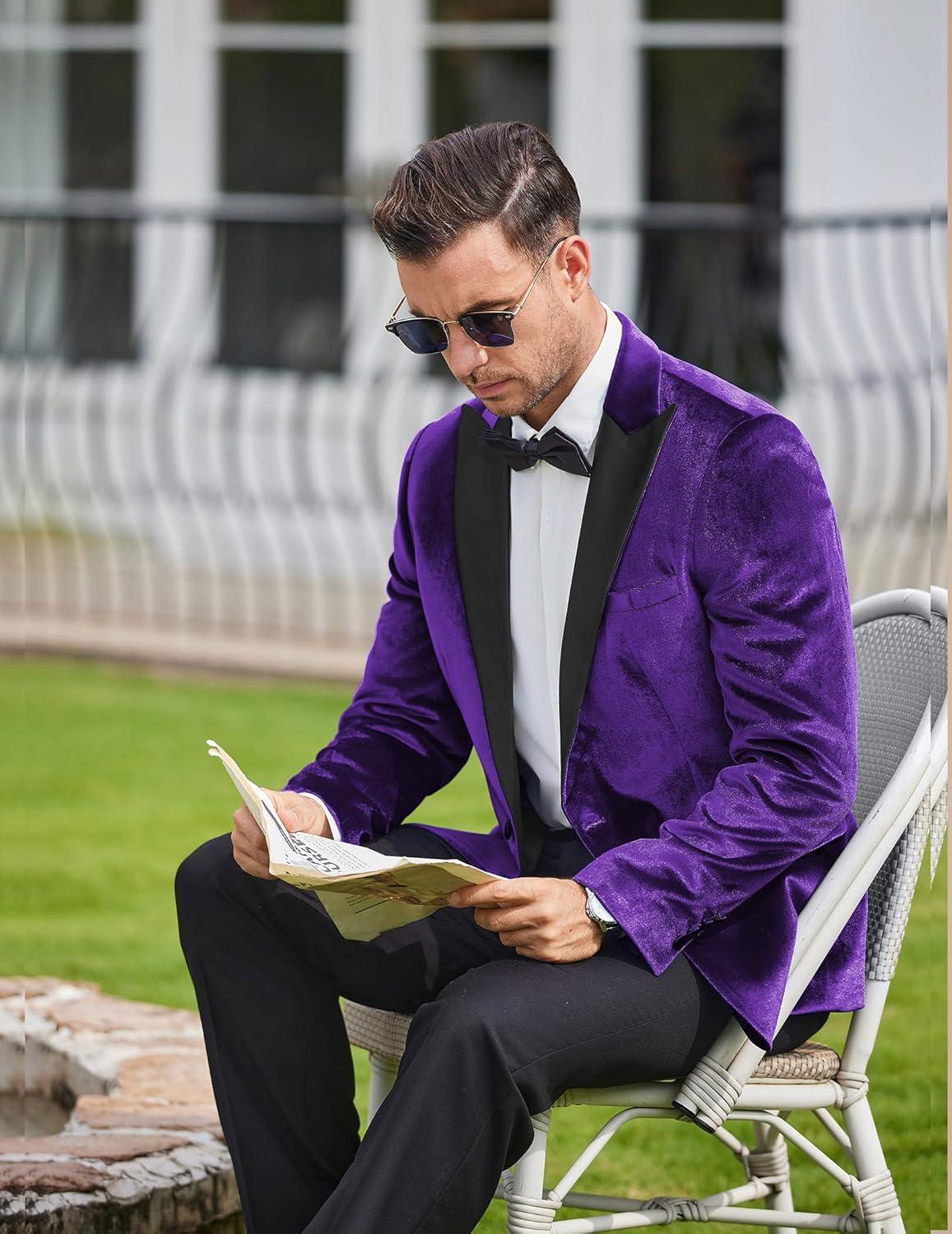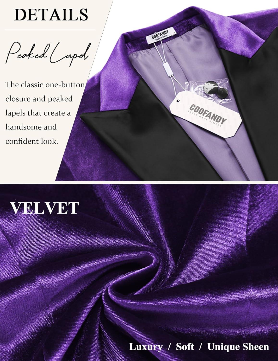 COOFANDY Mens Tuxedo Jacket Slim Fit Velvet Blazer One Button Suit Jacket for Wedding Prom Party(Purple)